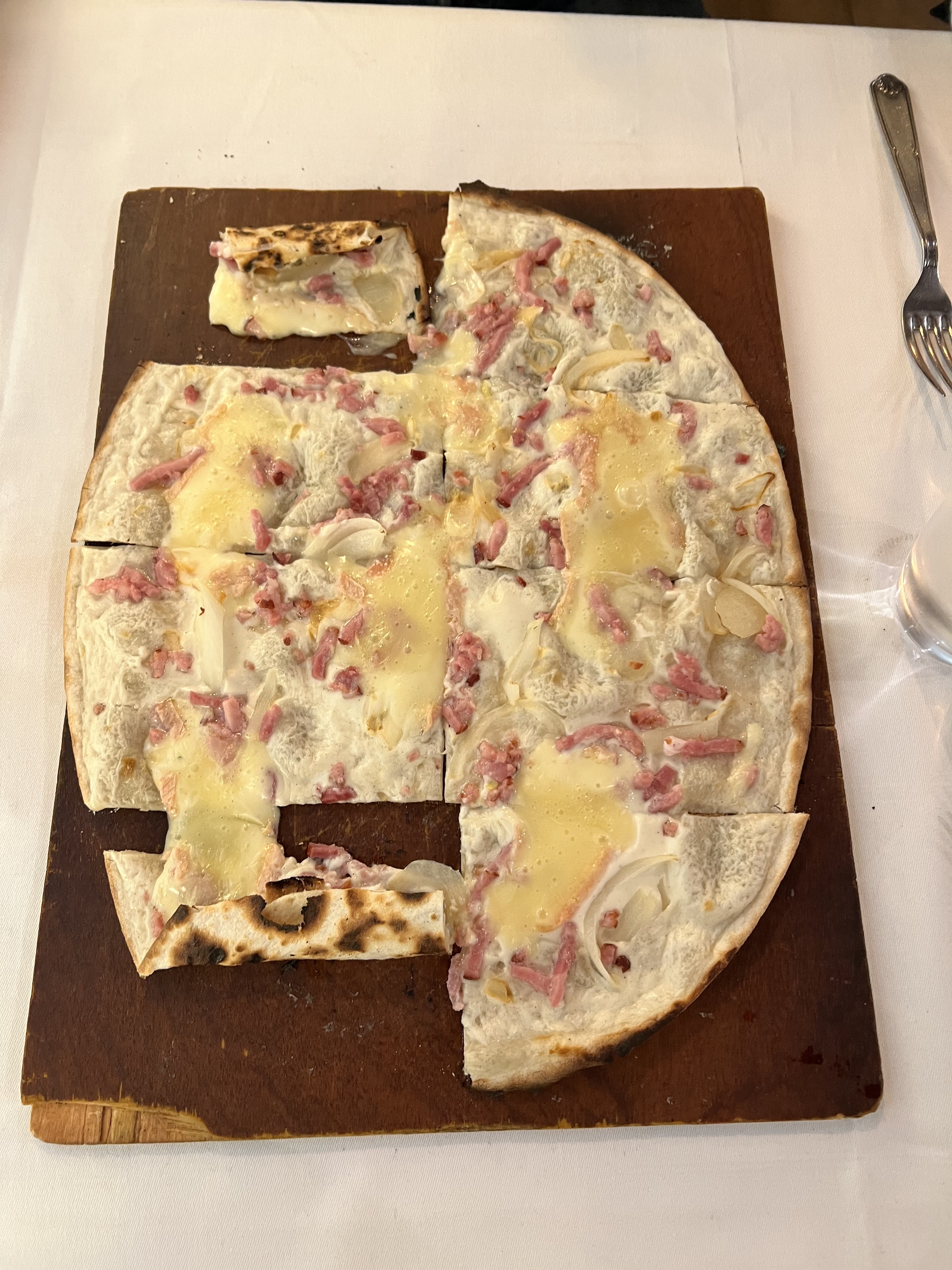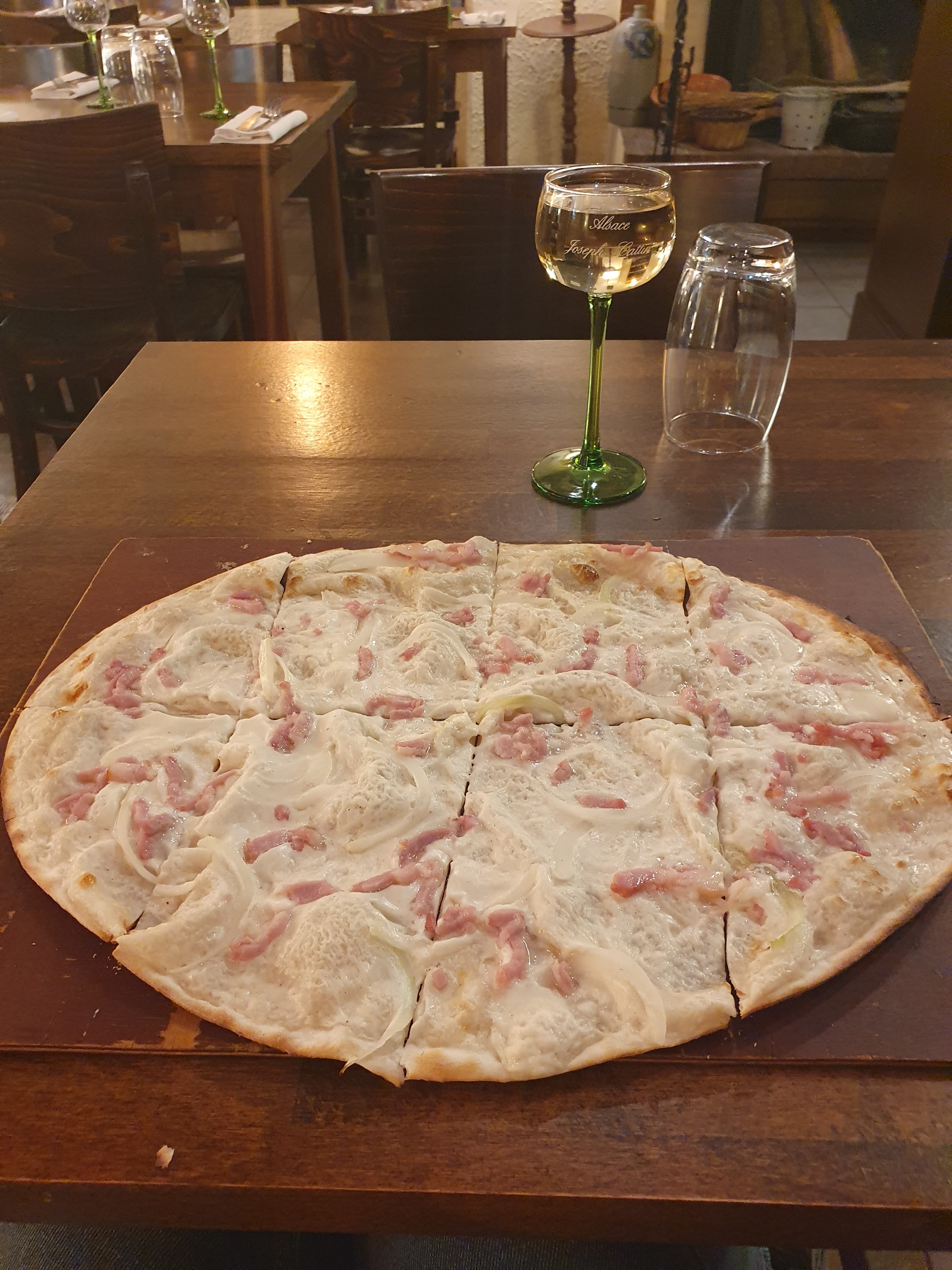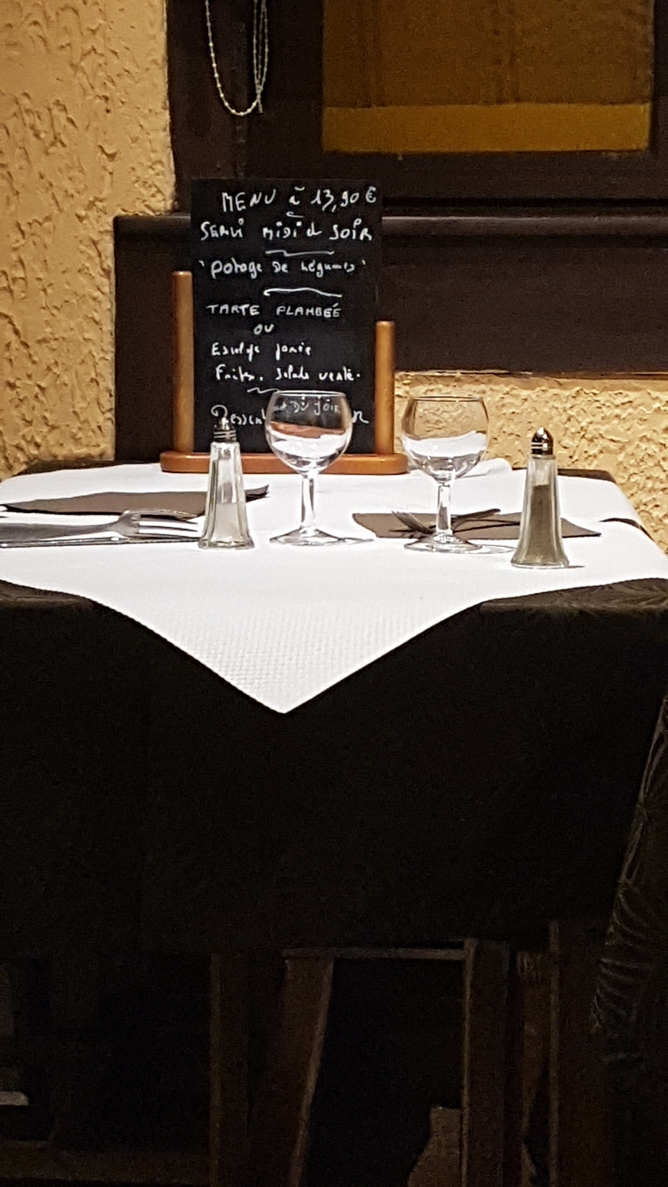 J'étais de passage un mardi soir à Strasbourg quand je me suis arrêté devant ce restaurant. L'ambiance était sympa, la serveuse très agréable. J'avais une vue sur la cuisine donc j'ai pu constater que les plats étaient vraiment cuisinés ! La flammekueche (forestière) était bonne et les profiteroles excellentes (quoi qu'un chouille trop sucré peut être). Très bonne expérience :)
