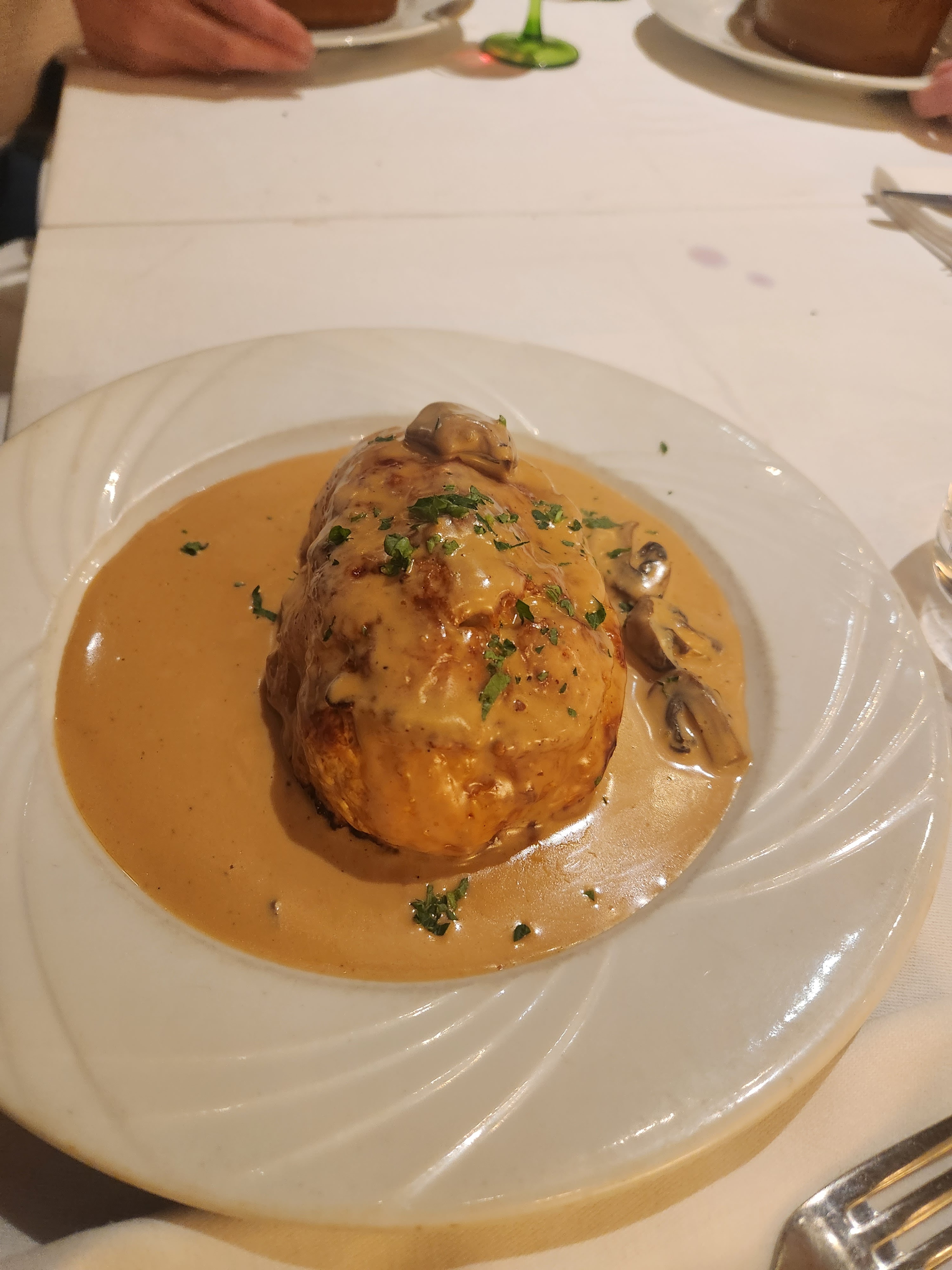 Accueil un peu expéditif mais un peu normal on était en retard de 10 minutes. Nous avons prit deux cordons bleu vosgiens. C'était plutôt bon et copieux ! On reviendra je pense mais cette fois ci on prendra un peu d'avance pour trouver une place de parking.