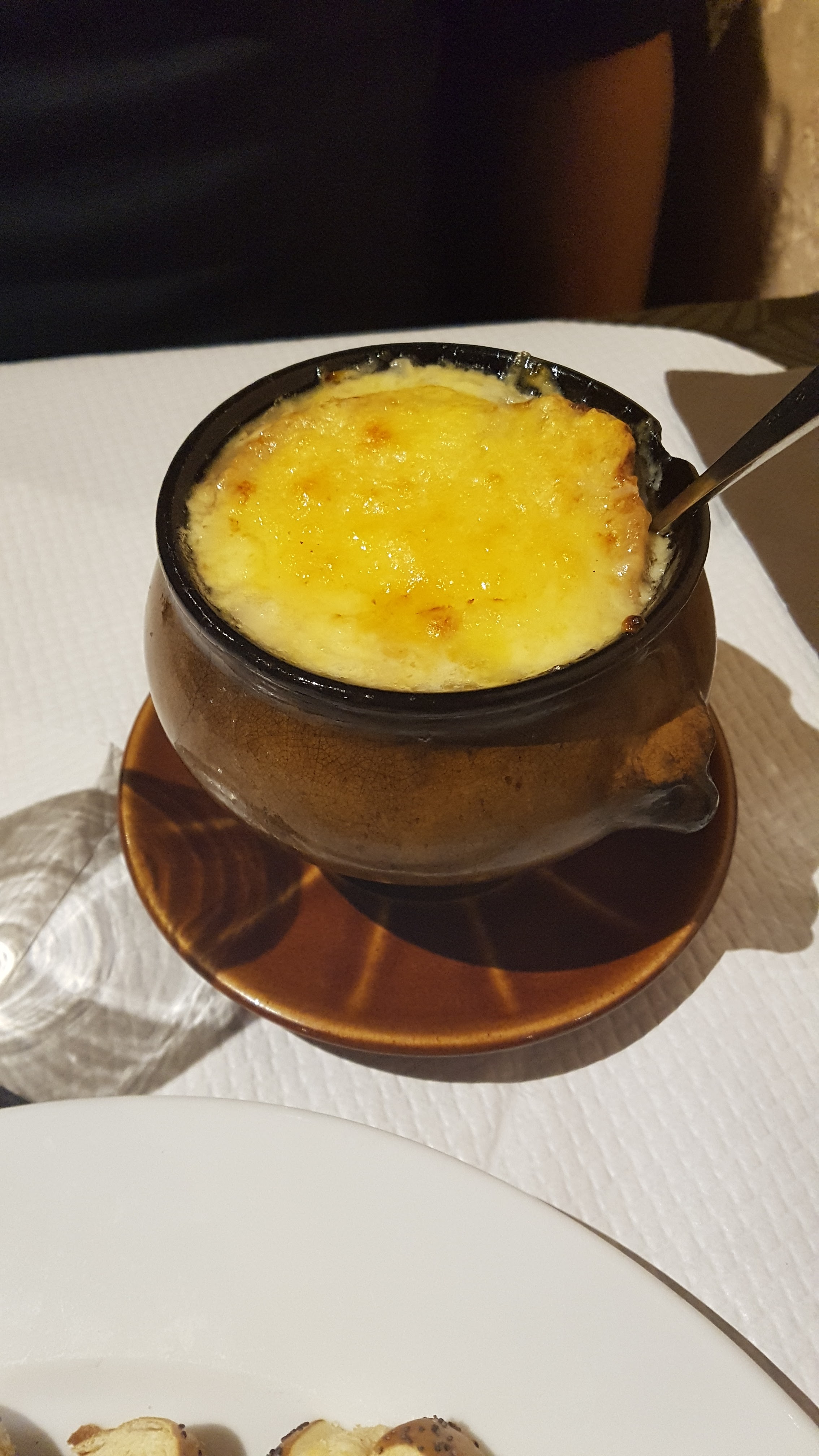 J'ai pris le menu du jour: potage aux légumes, filet mignon de porc au curry, baba au rhum. Le repas est correct, le prix aussi. Il manque cependant un petit brin de folie(présentation des plats trop simple et décoration trop basic).