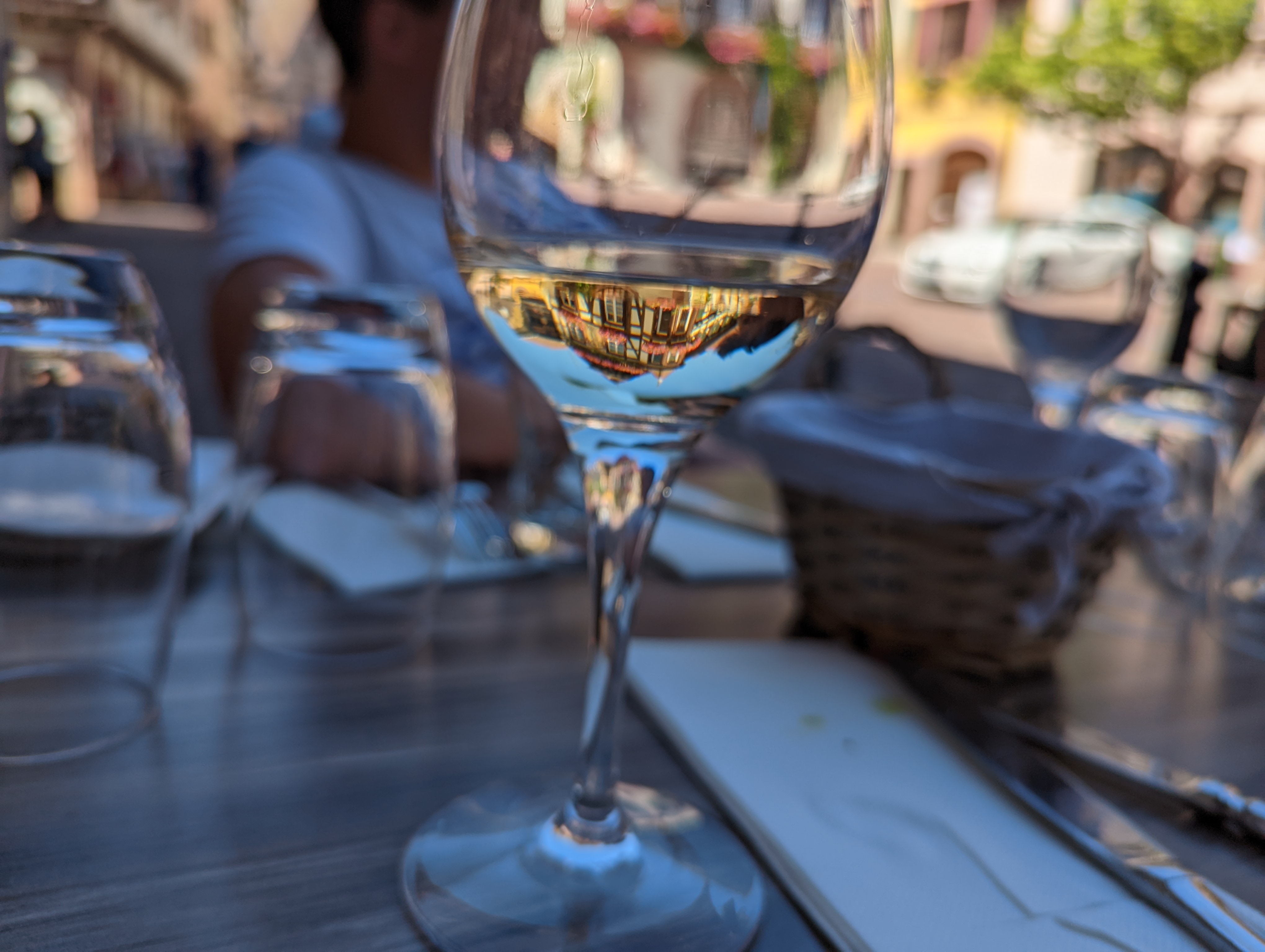 Vivement le confinement, avec 10 pèlerins dans la rue, le restaurant refuse du monde à 12h45, avec une salle trois quarts vide. La terrasse était quand même pleine, faut relancer l'économie mais pas de trop quand même.