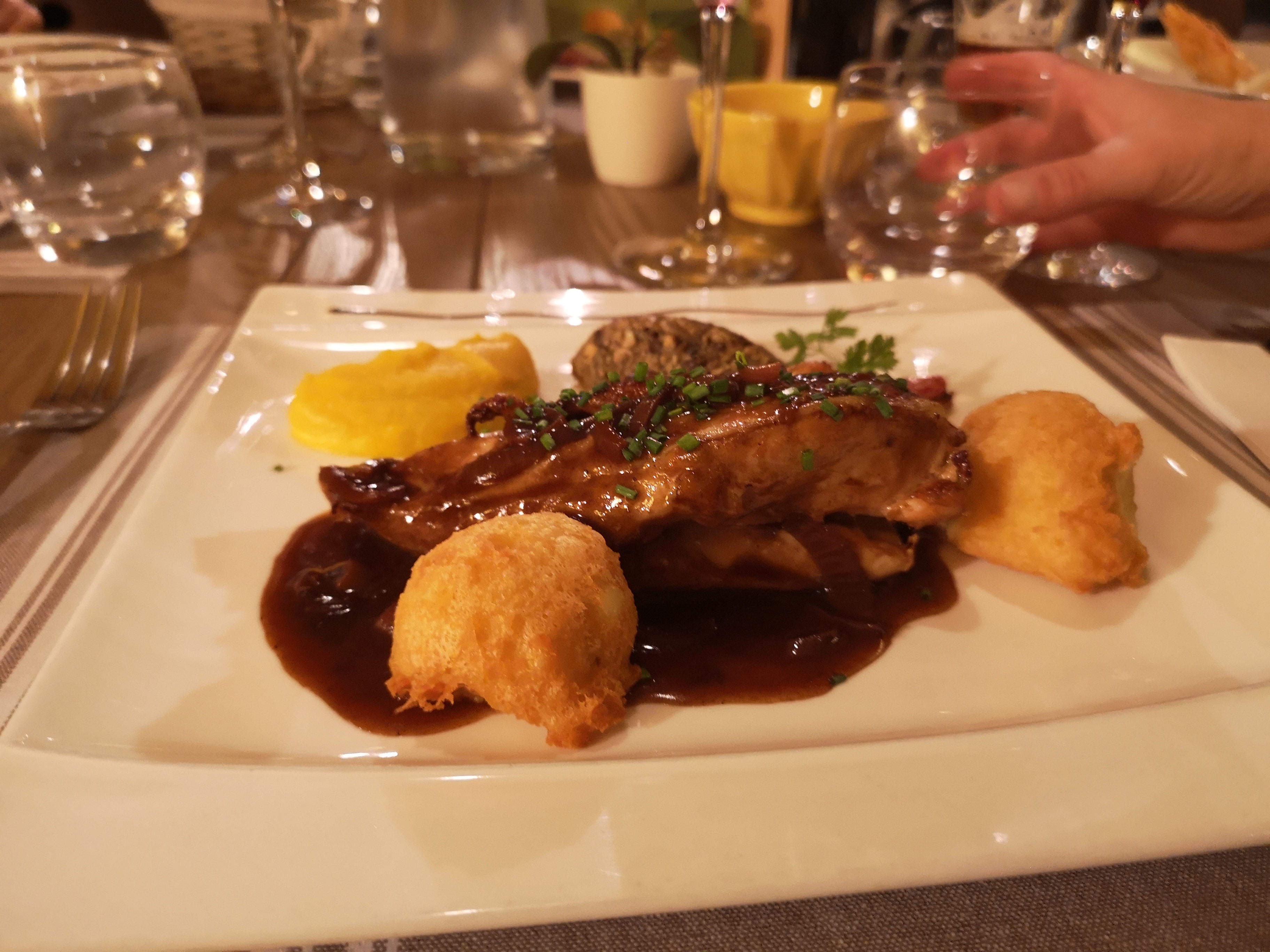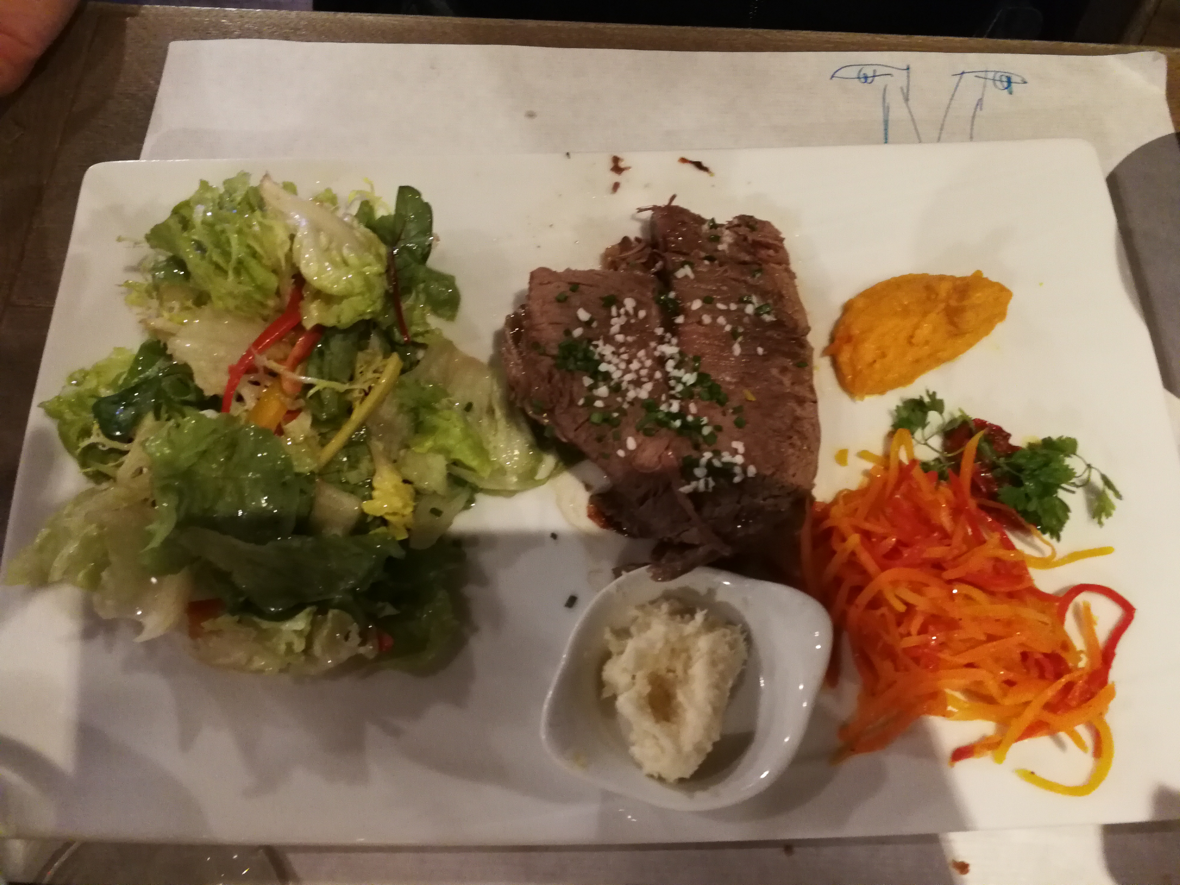 Très bon repas, j'ai eu de la chance avec le morceau de boeuf que j'ai eu il n'avait pas de gras ! Les spatzele étaient très bonne mais pas assez en quantité ! Le restaurant dispose d'un beau cadre à l'intérieur