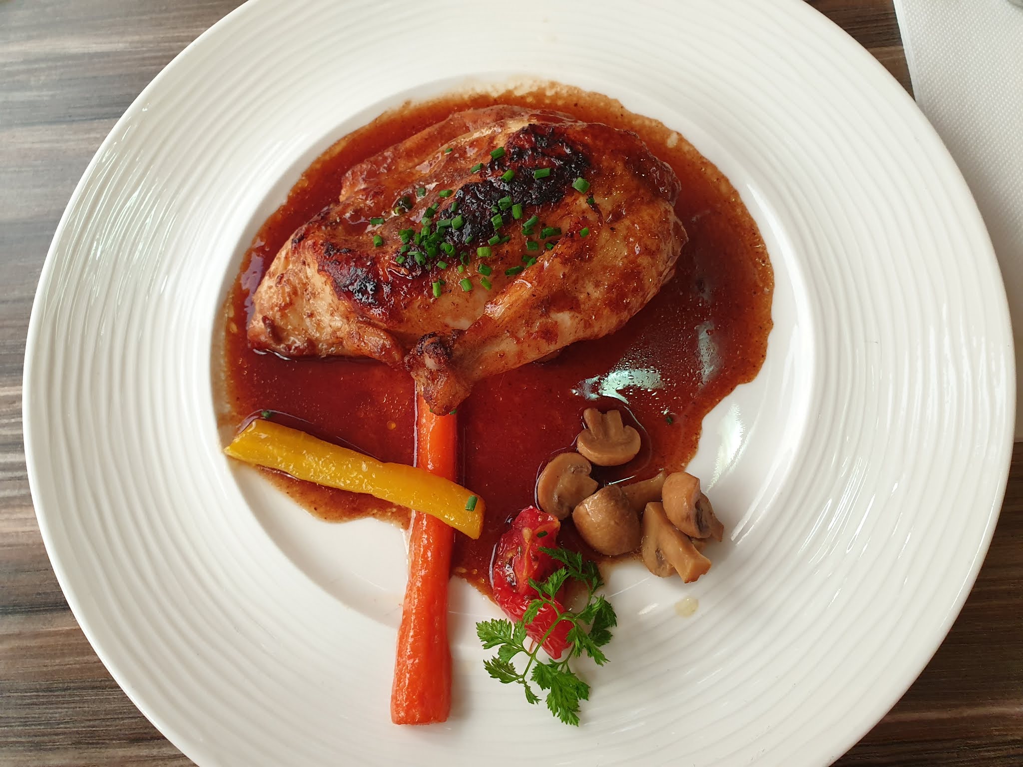 Déjeuner ce dimanche 8/08/21. On est arrivé assez tôt, 12h05, le restaurant est encore désert, malgré cela, si l'entrée arrive assez rapidement, nous sommes arrivés depuis plus d'1h30 quand le plat principal nous est servi. Les serveurs semblent débordés et passent plusieurs fois à côté d'assiettes et de verres vides rassemblés par les clients, sans même les remarquer. Espérant que l'attente en valait la peine aux vues de la note Google, notre déception est grande à la dégustation. Mon suprême de poulet était ultra caoutchouteux et les knoepfles qui accompagnaient le boeuf gros sel de mon conjoint sans saveur. Notre dessert, une crème brûlée, semblait être industriel ou du moins en avait la fadeur caractéristique. Déçus de notre déjeuner, je ne comprends pas la notation qui a été faite pour ce restaurant.