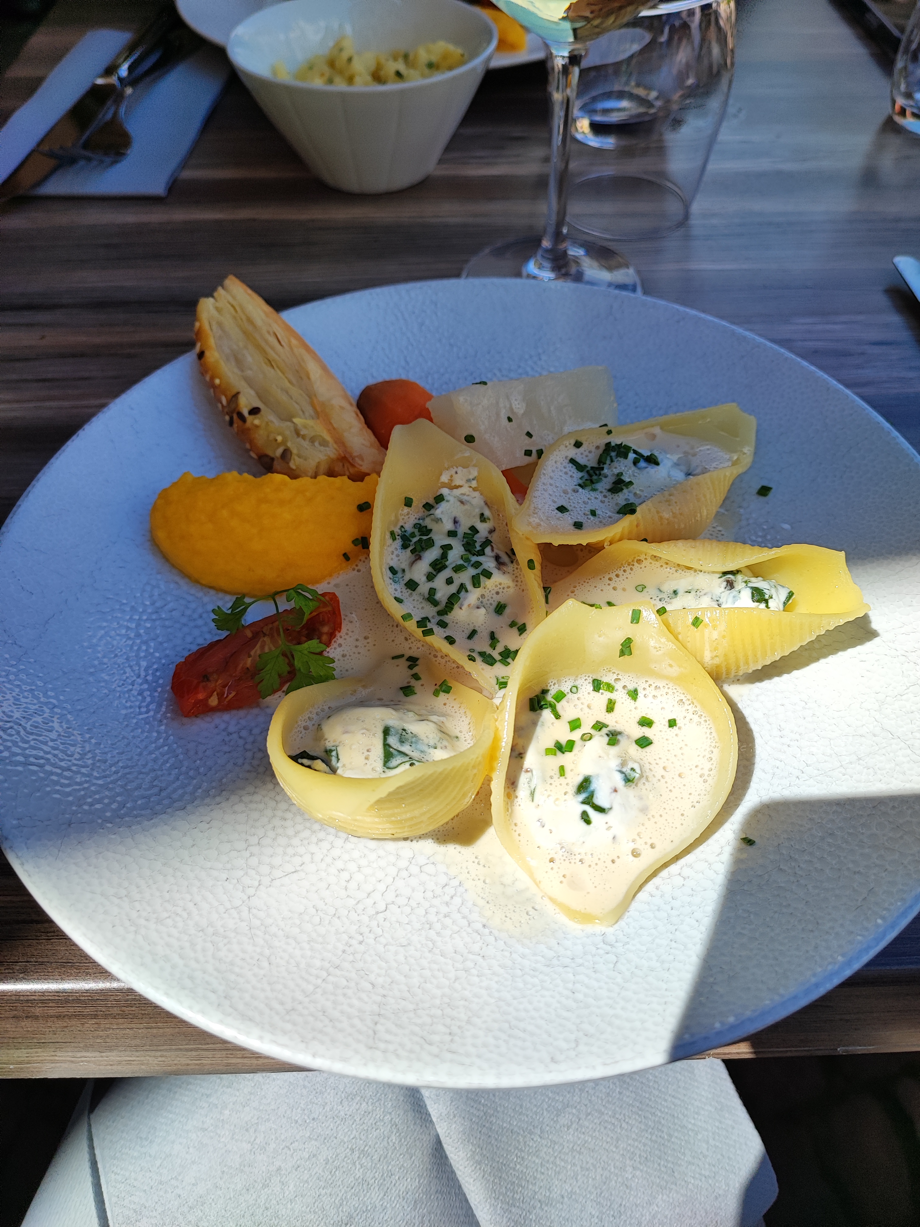 Après s’etre Fait refoulés de la table des pâtissiers quelques mètres plus loin, nous nous sommes attablés dans ce restaurant. résumé en quelques points: - service top, beaucoup d’attention envers le client. -assiettes claires, bien présentées et plats savoureux -addition raisonnable pour le cadre le service et qualité des plats - jouets pour les enfants + tables à langer pour les bambins. Bref un bon moment en famille, heureusement que le précédent resto nous a envoyé Petre nous serions passés à côté de ce petit bijoux.