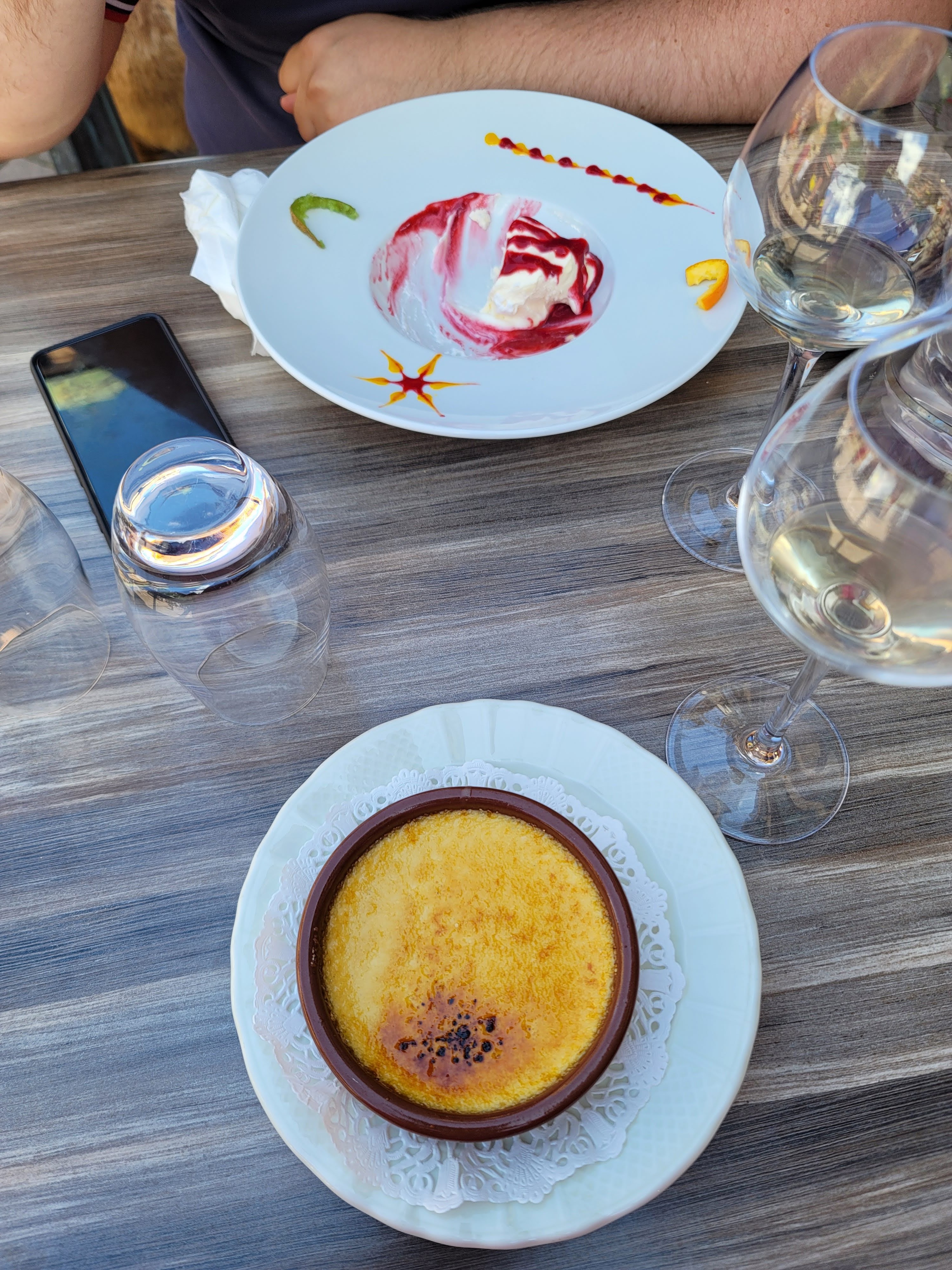 Nous avons pris le menu du terroir et le menu végétarien avec une bouteille de vin local. Tout était délicieux. La terrasse est située dans une rue charmante. Service agréable et souriant.