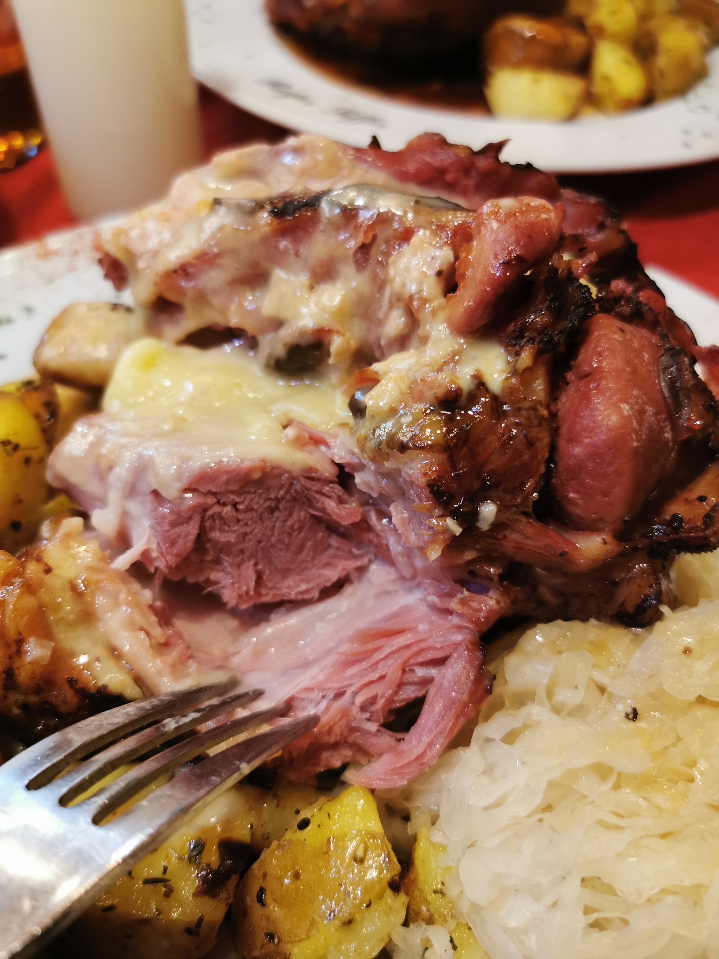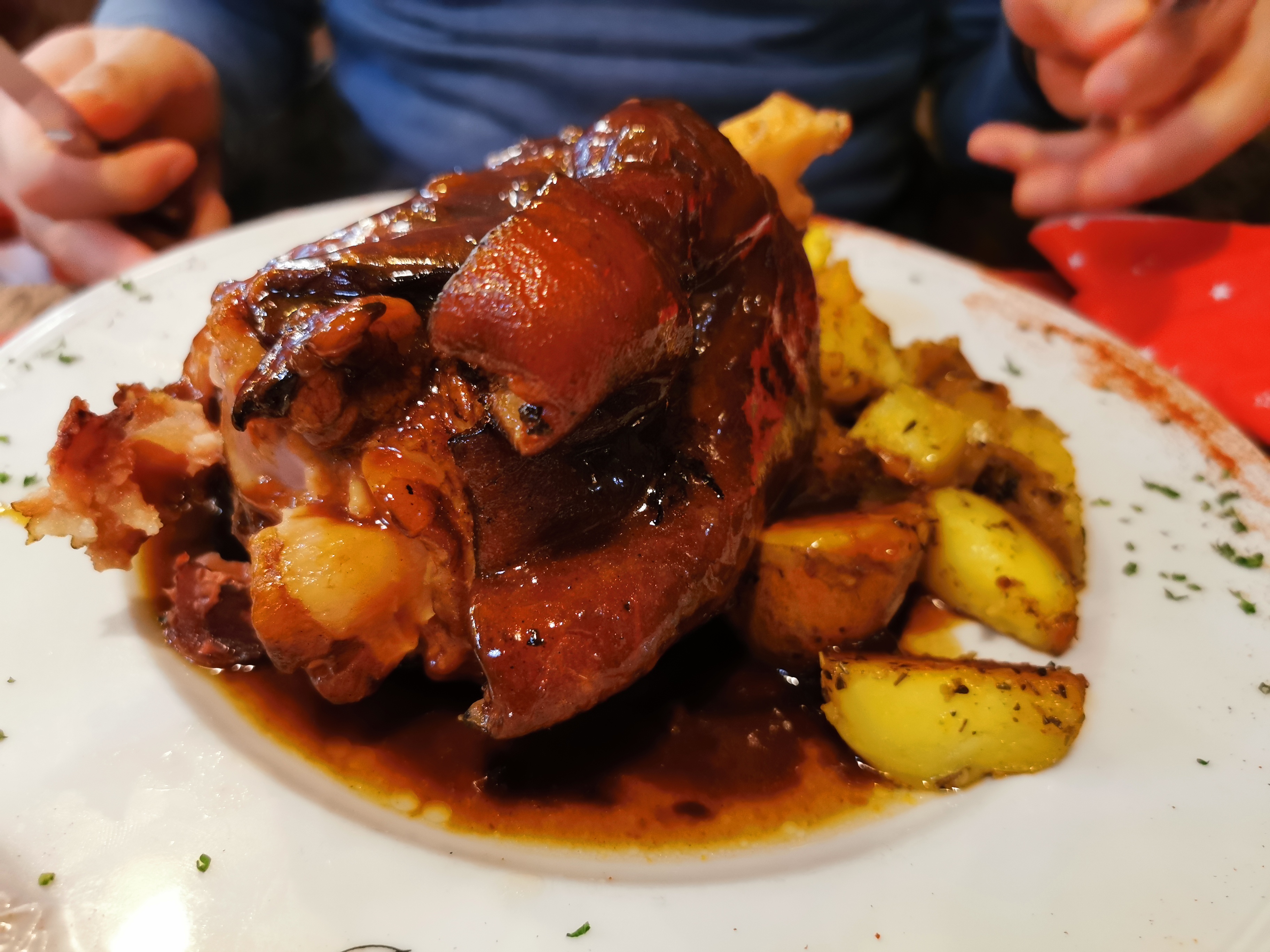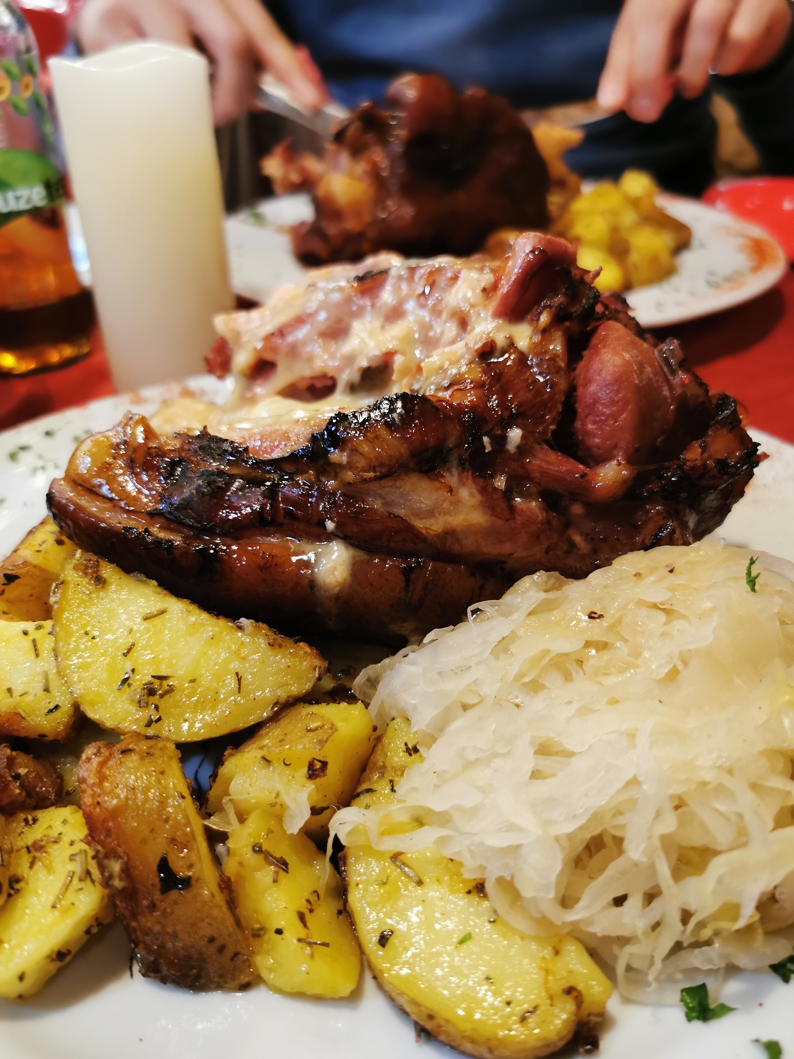 Ambiance chaleureuse lumineuse et un jambonneau à la bière à tomber par terre.