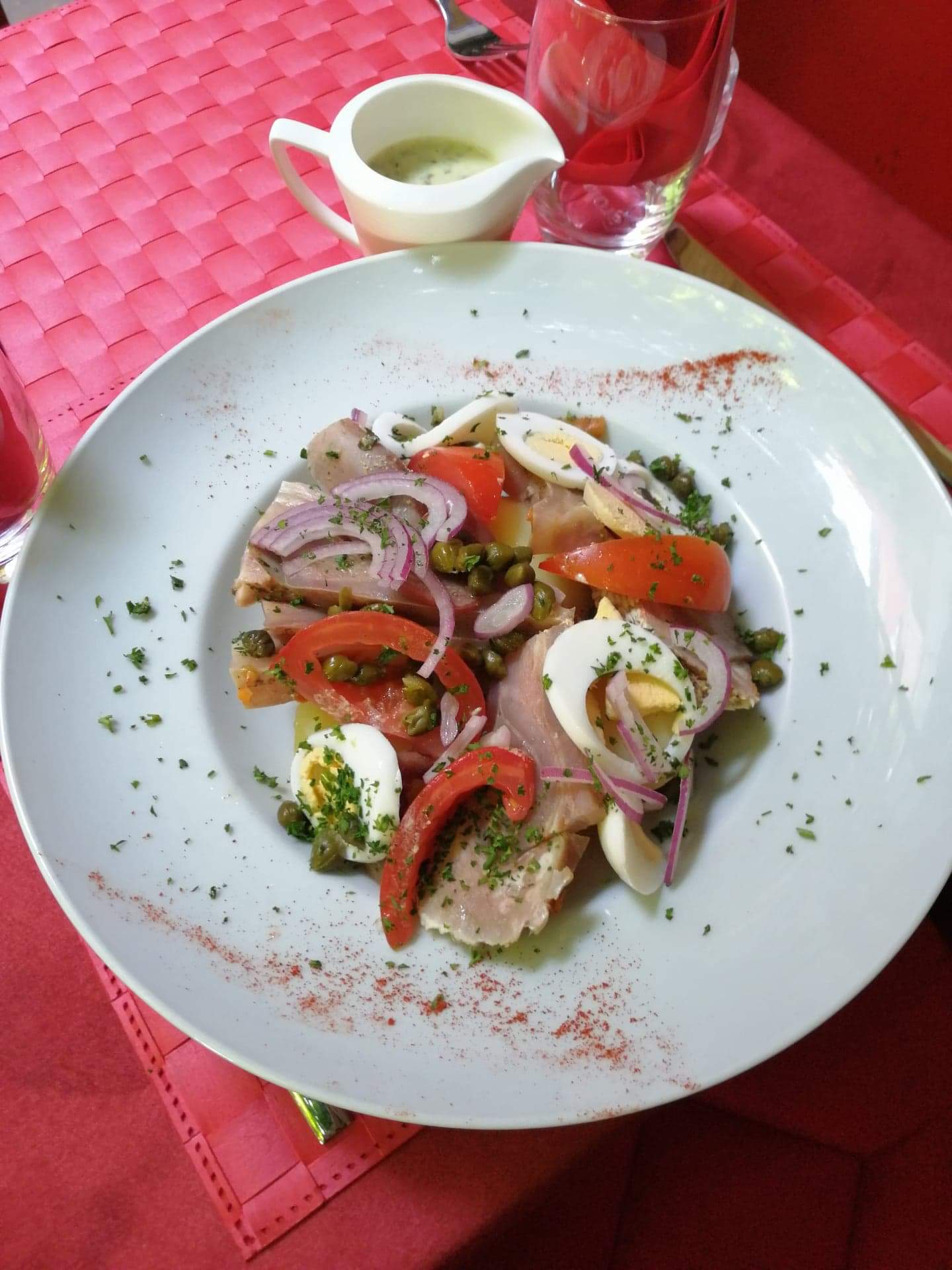 C'était très agréable. Les plats très bon, mais le resto était complètement réservé, alors nous avons attendé un peu pour être servi et pour les plats.