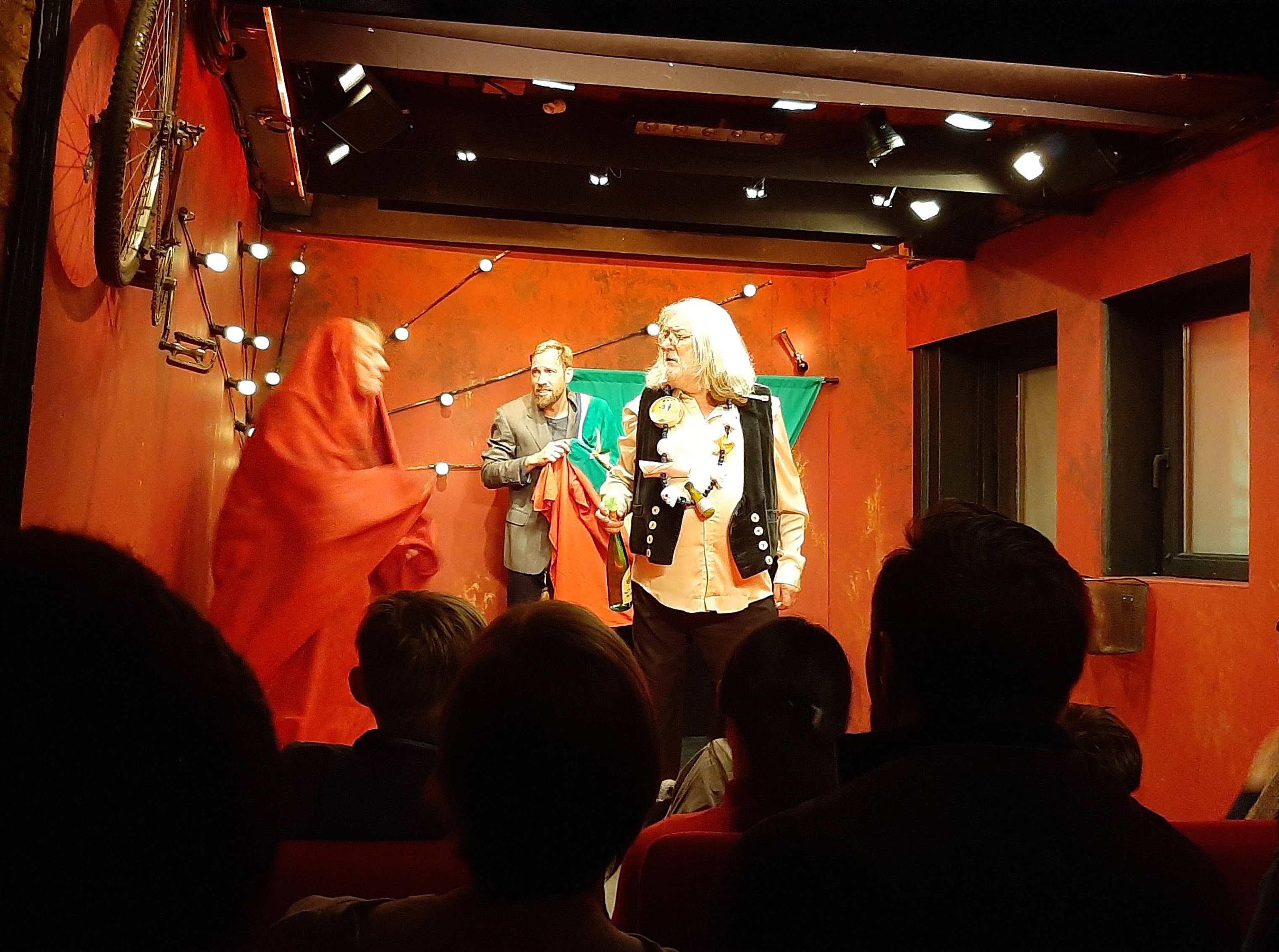 Lorsque on arrive on est déjà un peu dans les coulisses du spectacle. On peut côtoyer les artistes qui sont autour d’un « stamdish »avant la représentation. La cuisine reste traditionnelle et copieuse. Et la carte reste abordable.