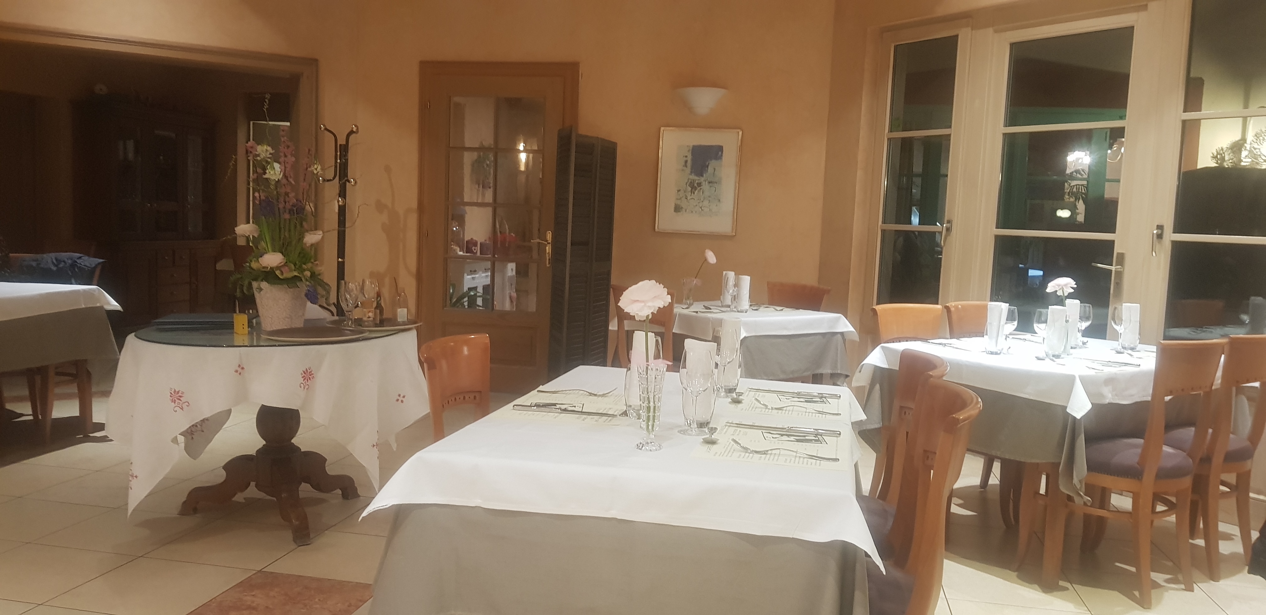 Très bon accueil, Nous avions une petite salle privative pour notre groupe de 18, beau décor, un beau feu dans la cheminée, Les suggestions de menus ont été appréciés par tout le monde, tout à bien été coordonné. Seul bémol, pas de parking à proximité immédiate. Il faut parcourir 500m (sous la pluie) Pas facile pour les personnes âgées. Dans l'ensemble, un sans faute, je recommande cet établissement.