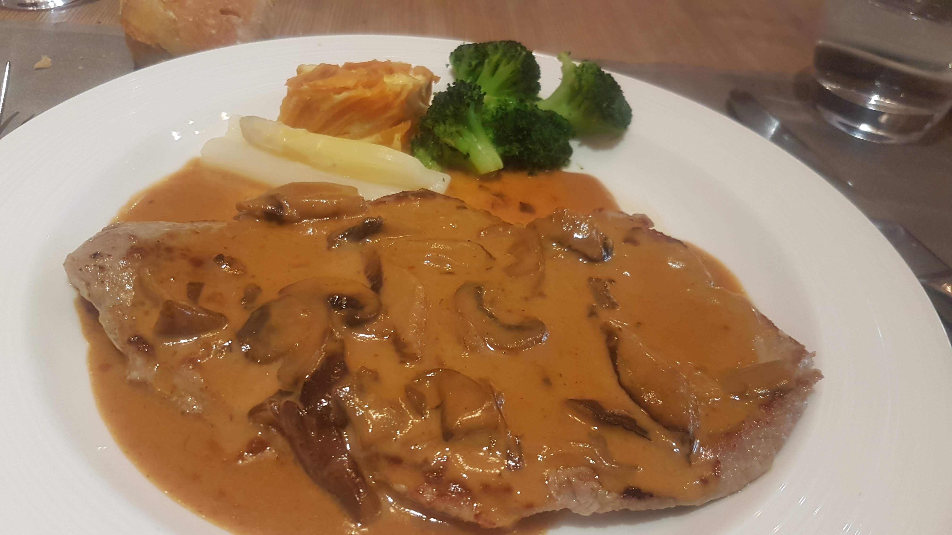 Très bien, le service était bien et la nourriture était bonne. La formule avec le buffet est intéressante, et les plats à la carte sont bons aussi. J'aime bien la décoration à l'intérieur aussi, c'est lumineux et l'escalier en forme de touches de piano, c'est amusant.