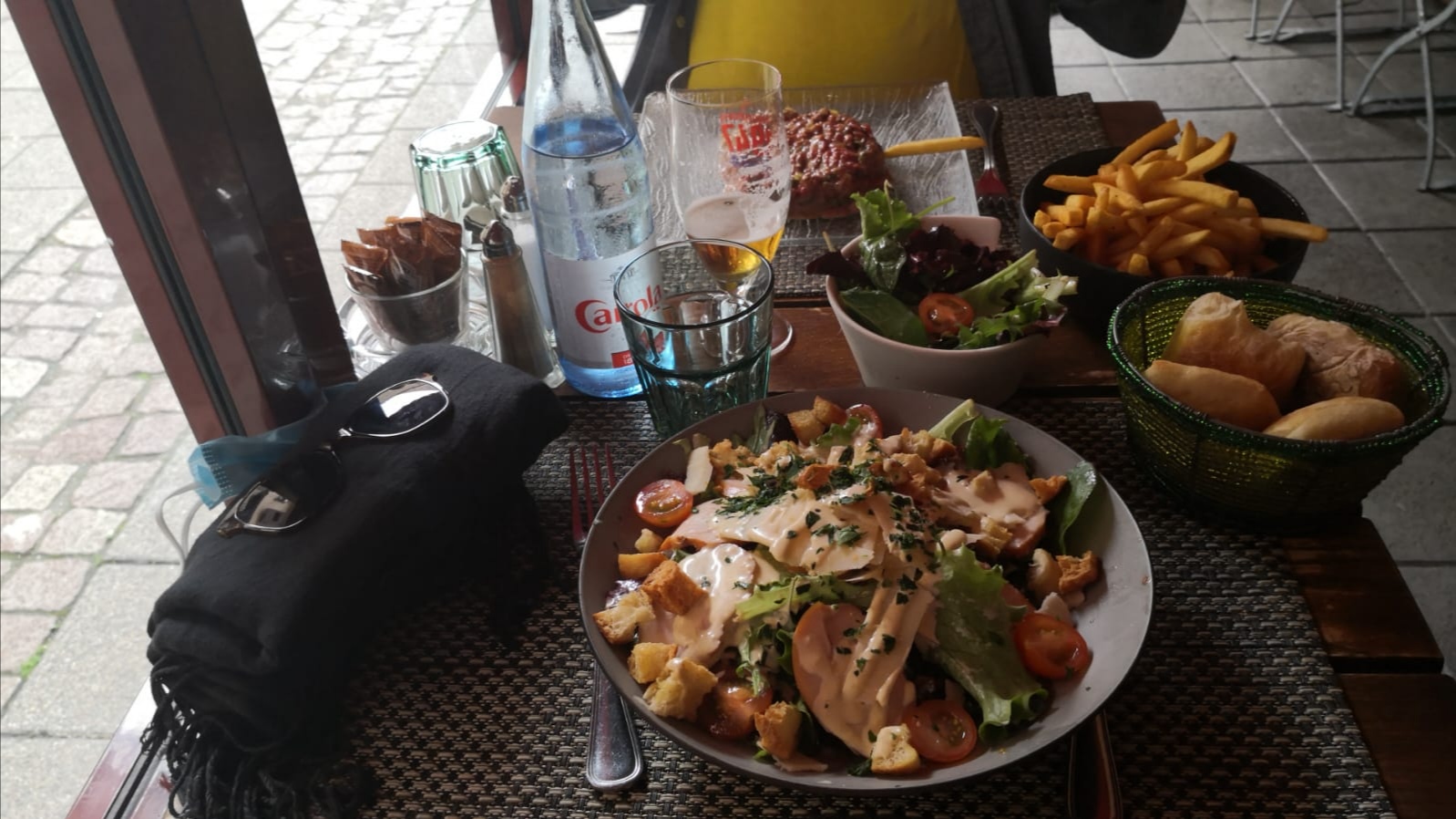 Juste excellent! Les quantités sont impressionnantes et tout est délicieux. Je conseille fortement la tarte aux oignons : un régal! Steak tartare en suggestion de la semaine : coupé au couteau ! Le summum du tartare. Le week-end a été gâché par la pluie mais rattrapé par le restaurant.. juste merci ! Les serveurs sont à la hauteurs des attentes, bonne humeur et sourires à gogo!