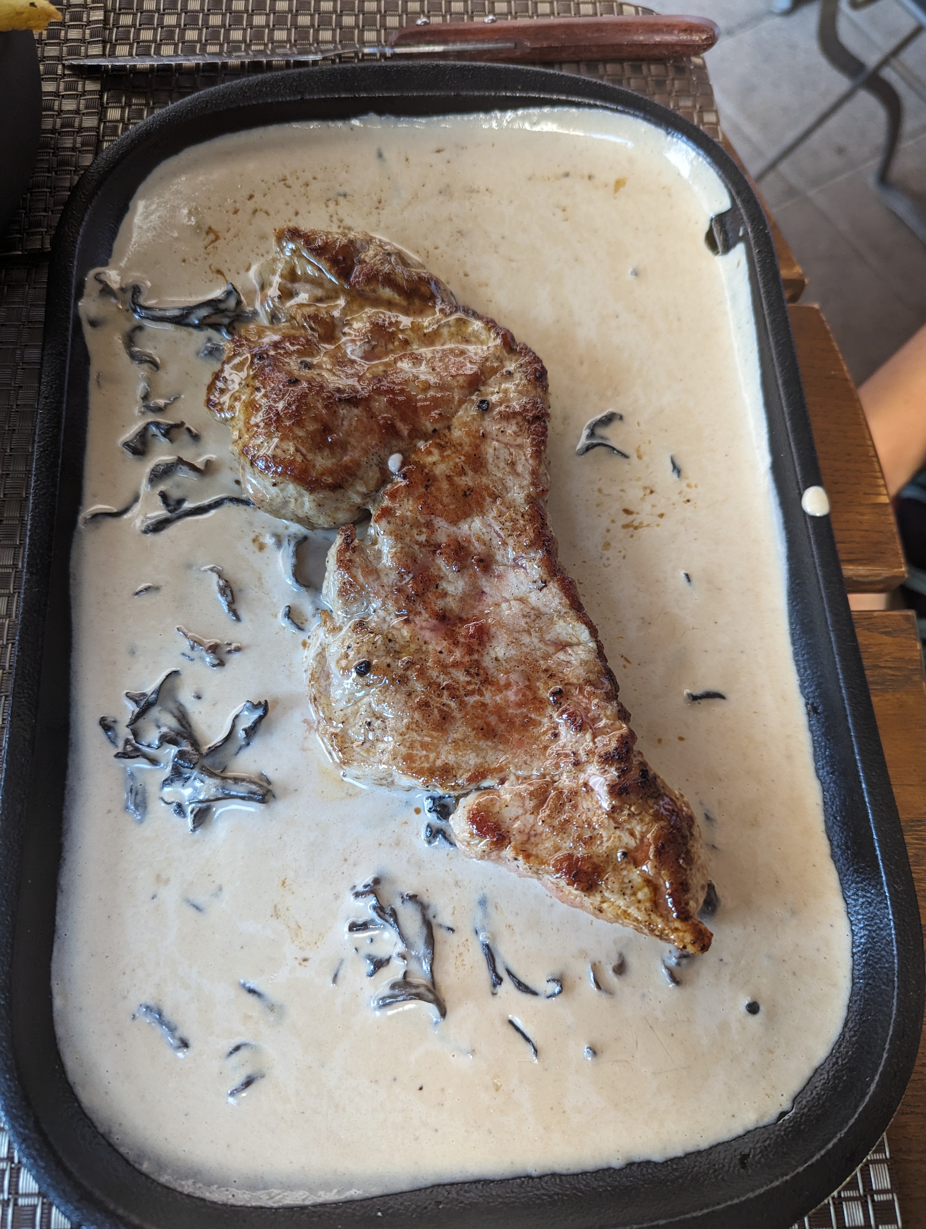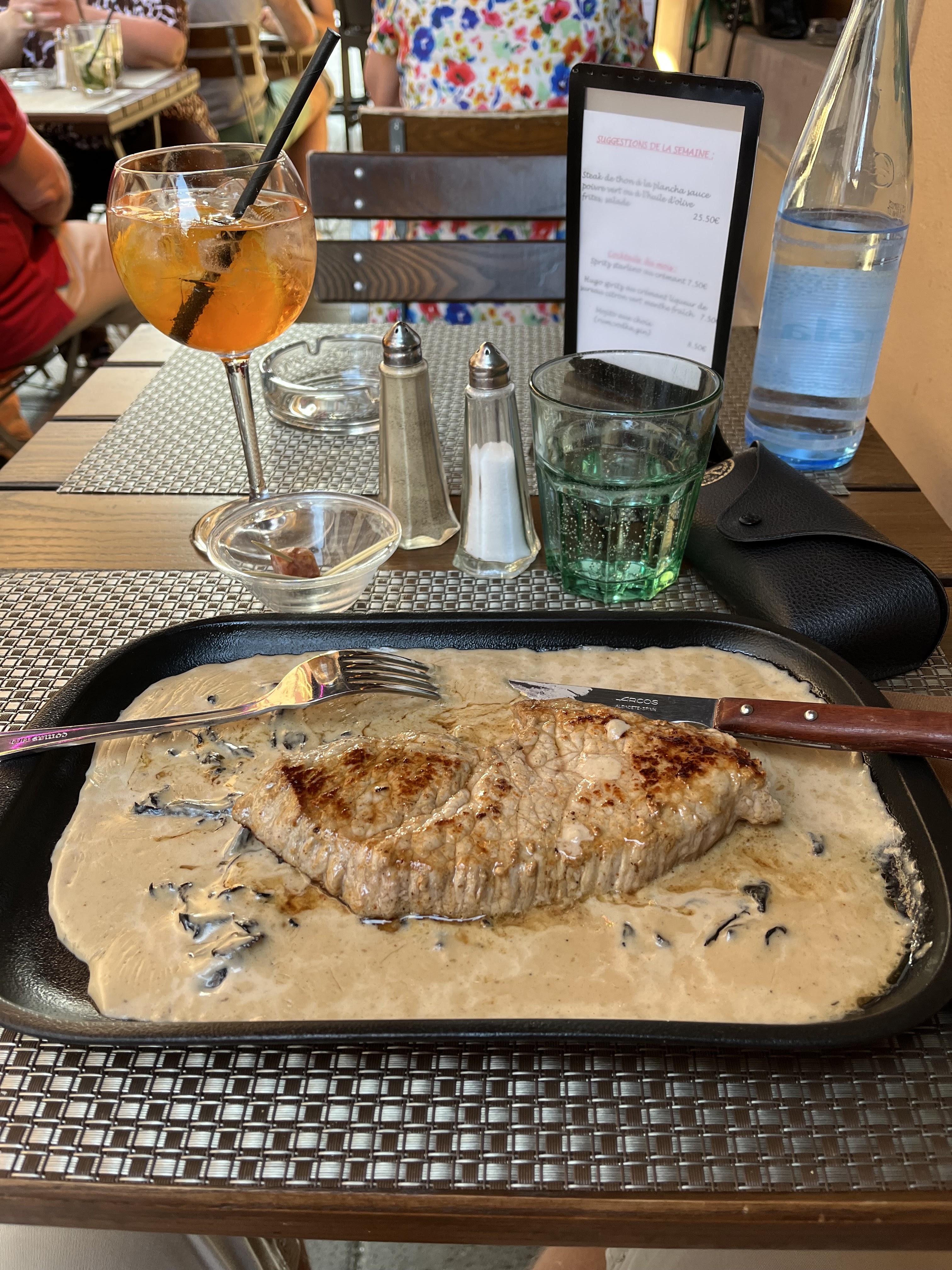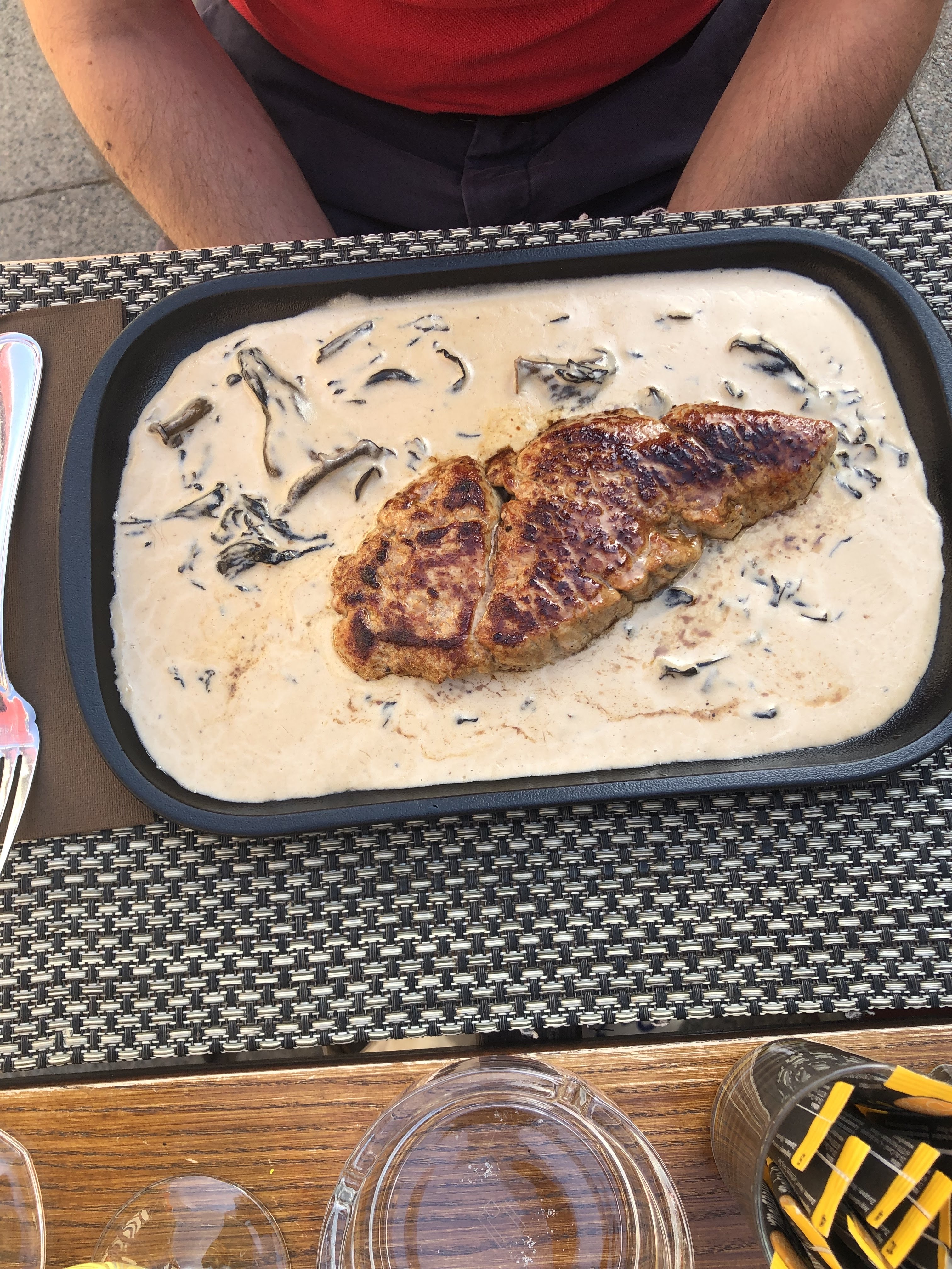 Escalope à la crème. Très déçu un plat froid viande sèche et pas de sauce. Une honte de facturer 17,90 pour une assiette pareil. Serveuse dépassée mais sympa.
