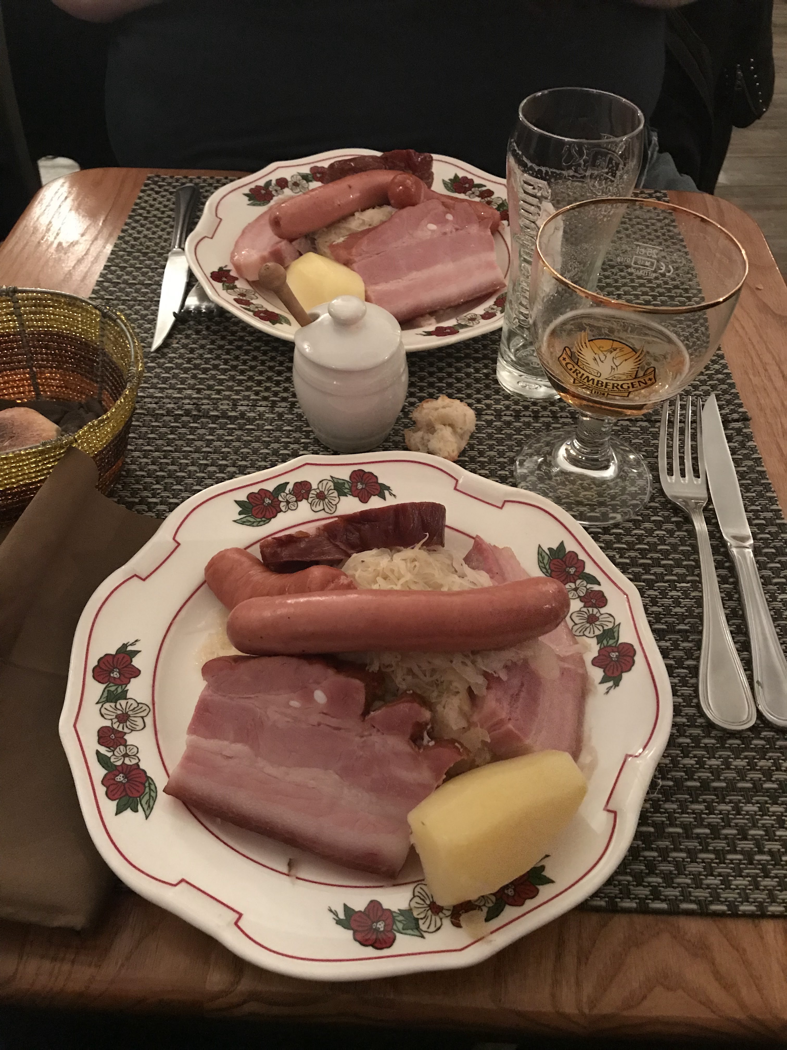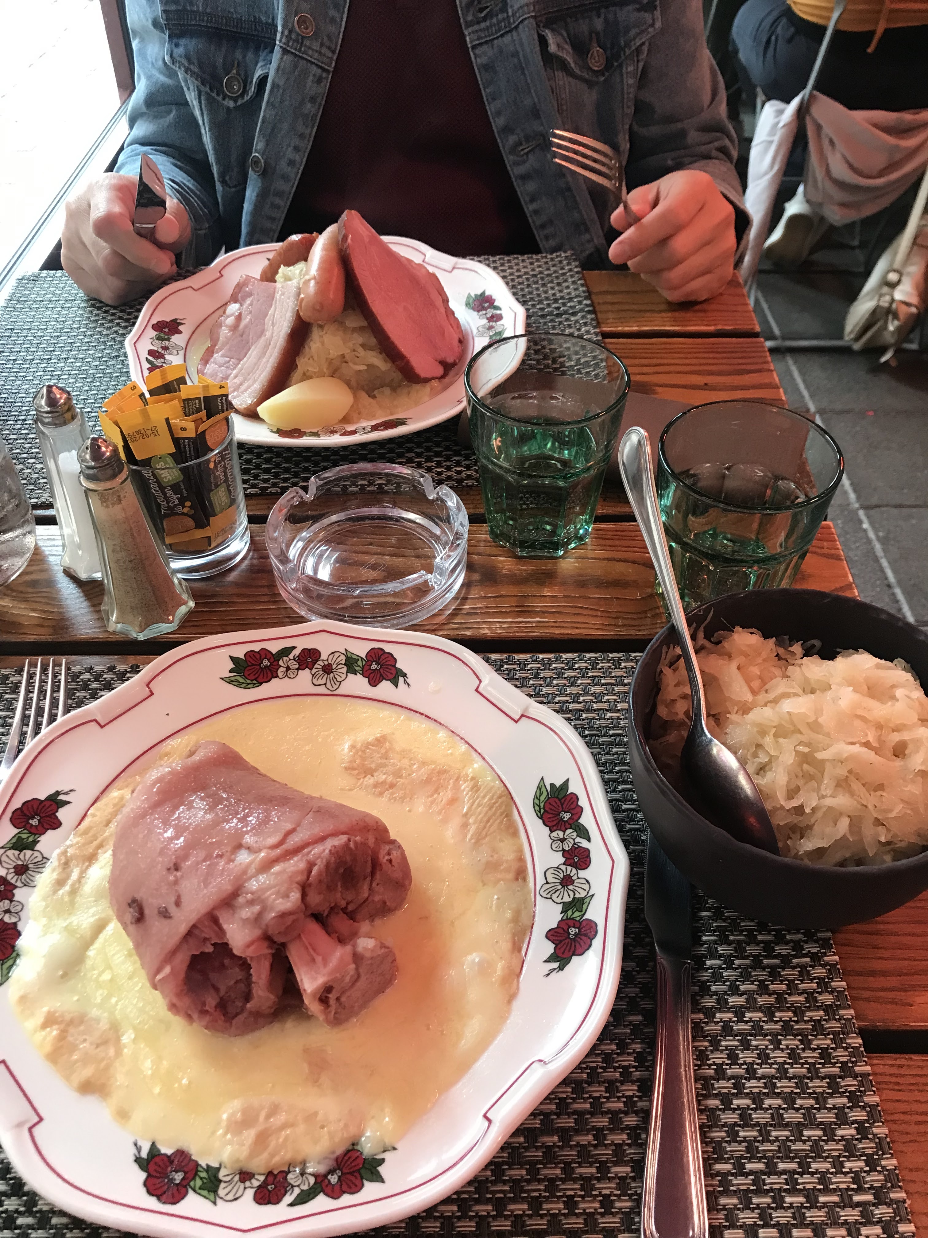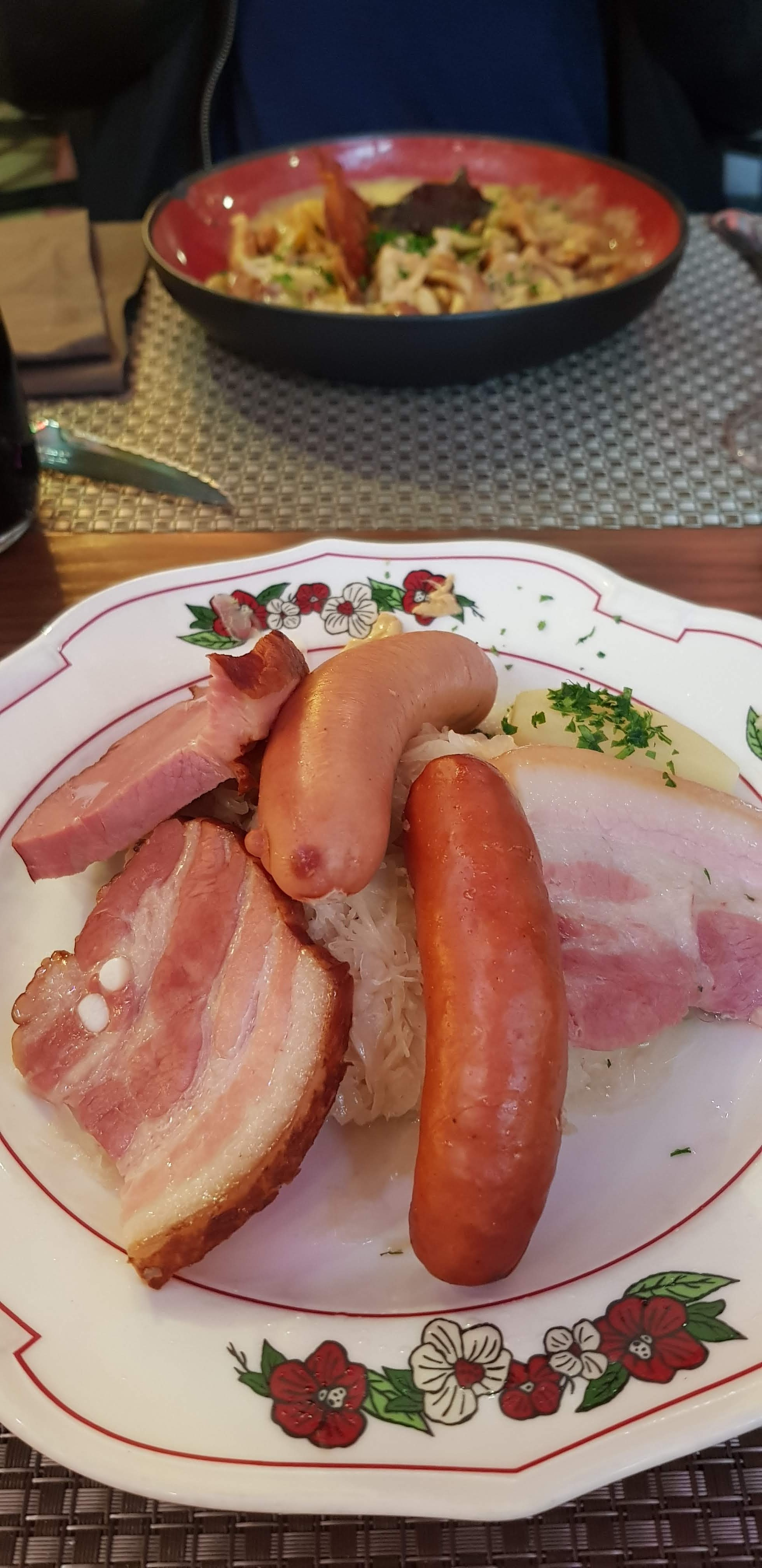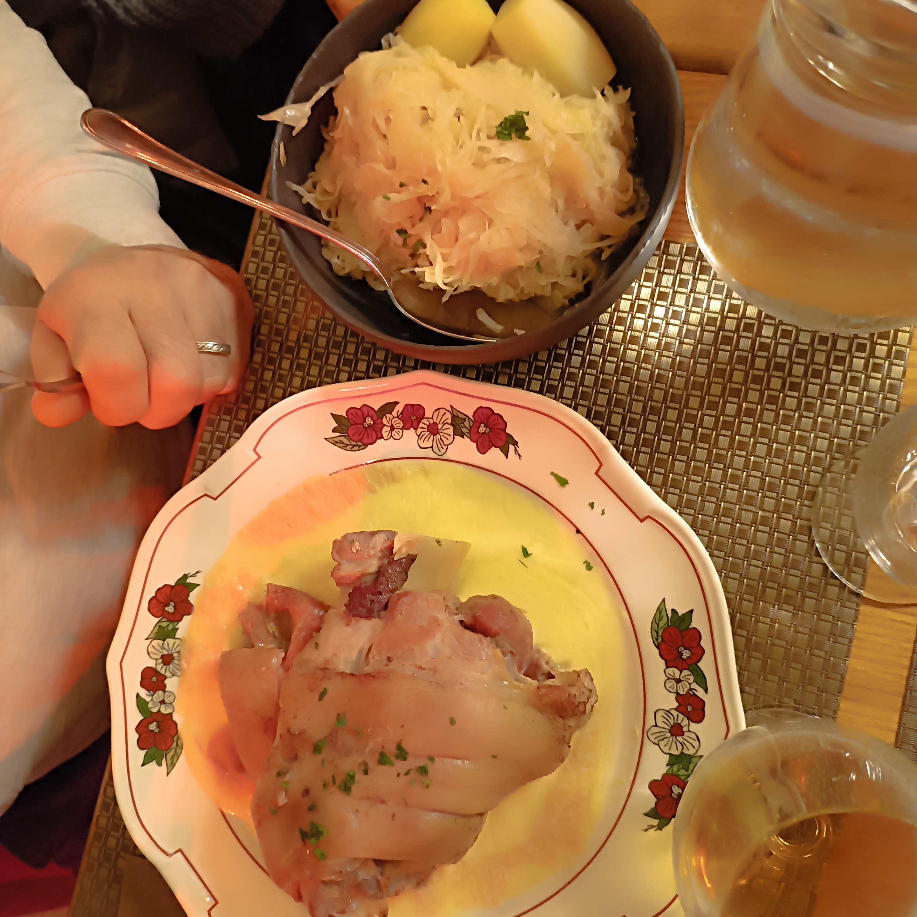 Un régal. Un peu bruyant. Le jarret au Munster super bon.