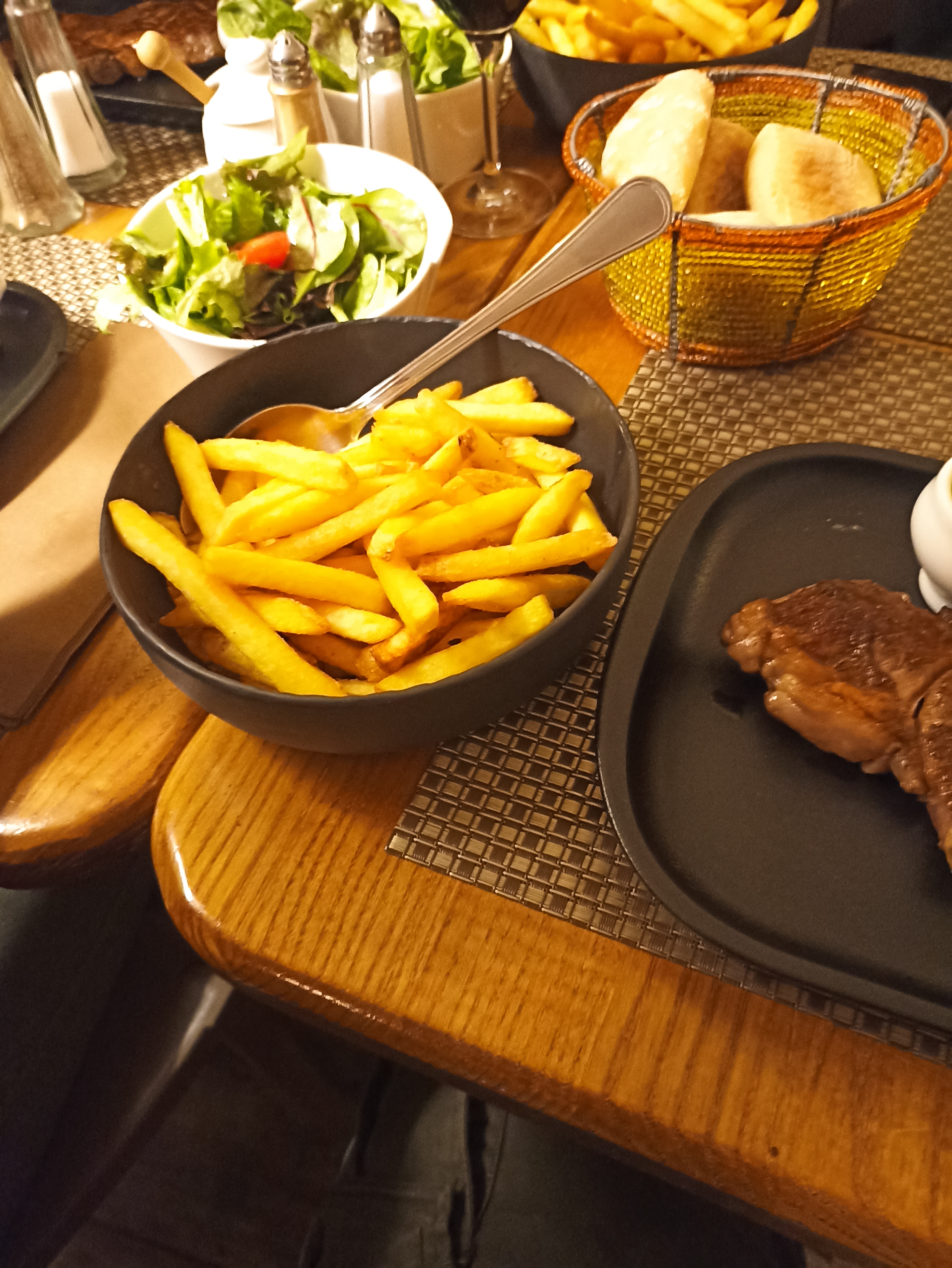 La viande excellent le reste du repas également, déception sur les frites surgelées, au vu du prix du menu je l attendais à des pdt fraiches. Si non, nous avons été très bien reçu je recommande malgré tout.