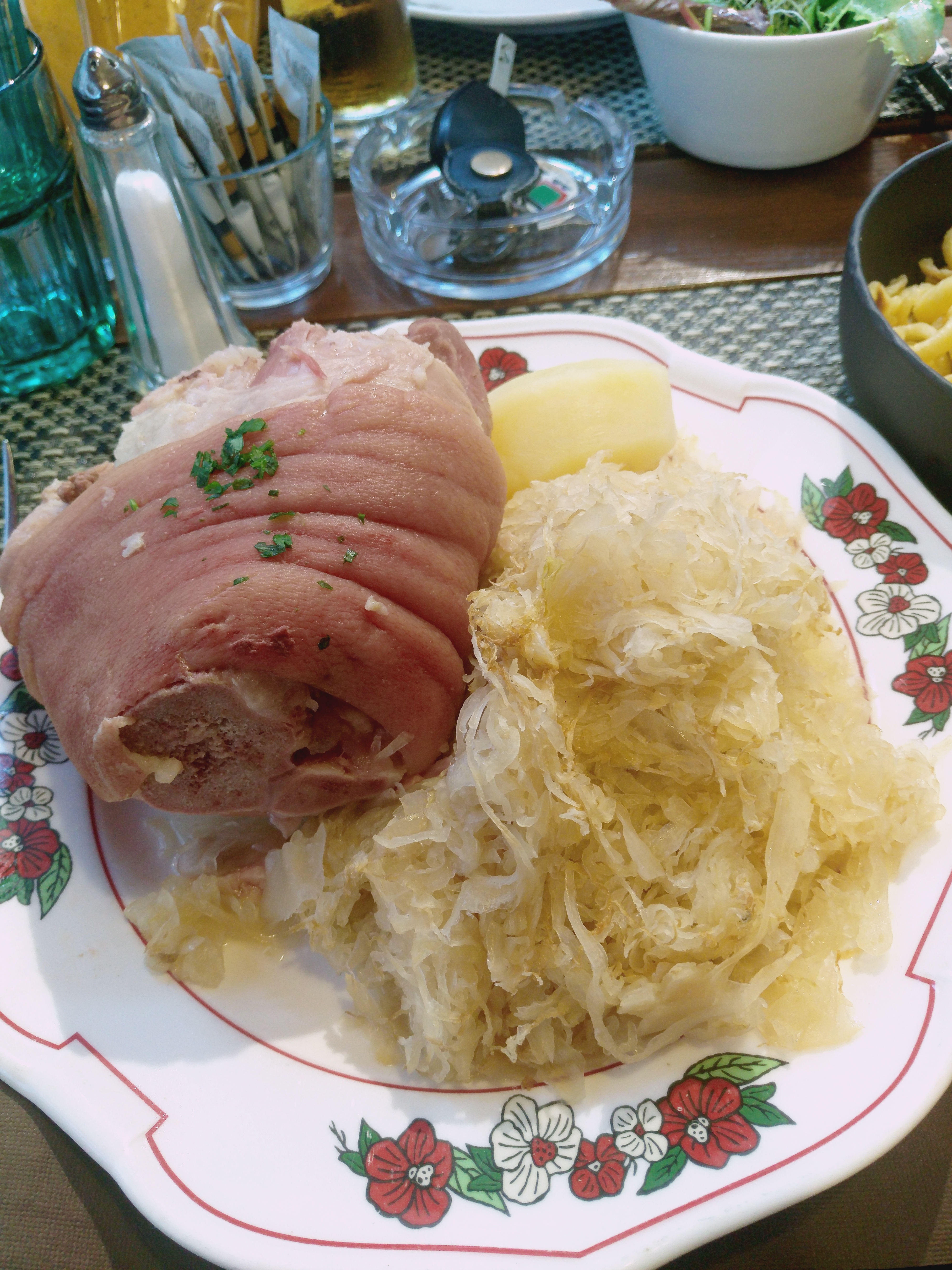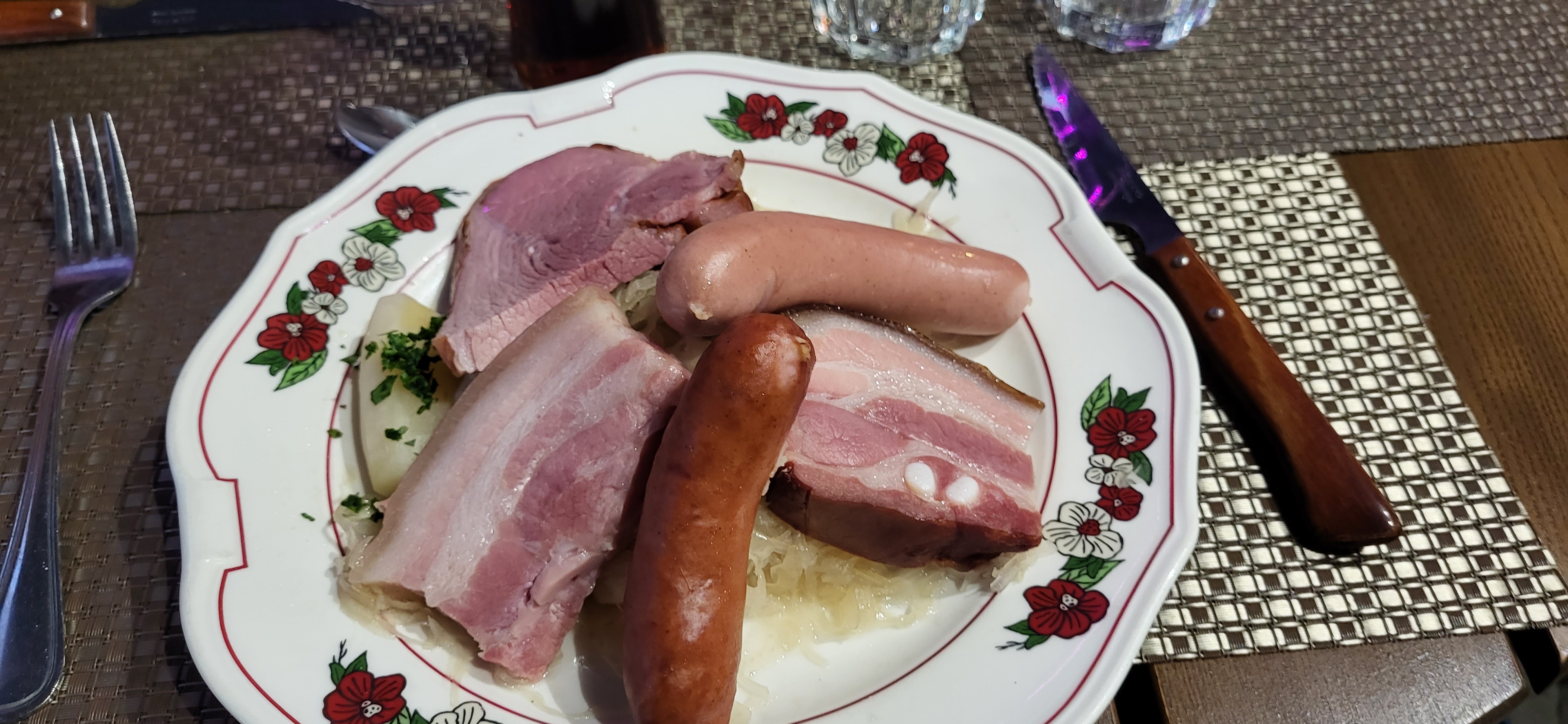 le jambonneau nature et au munster sont très bons ainsi que le baeckeoffe. j'ai moins été emballé par le salade de fruit frais.
