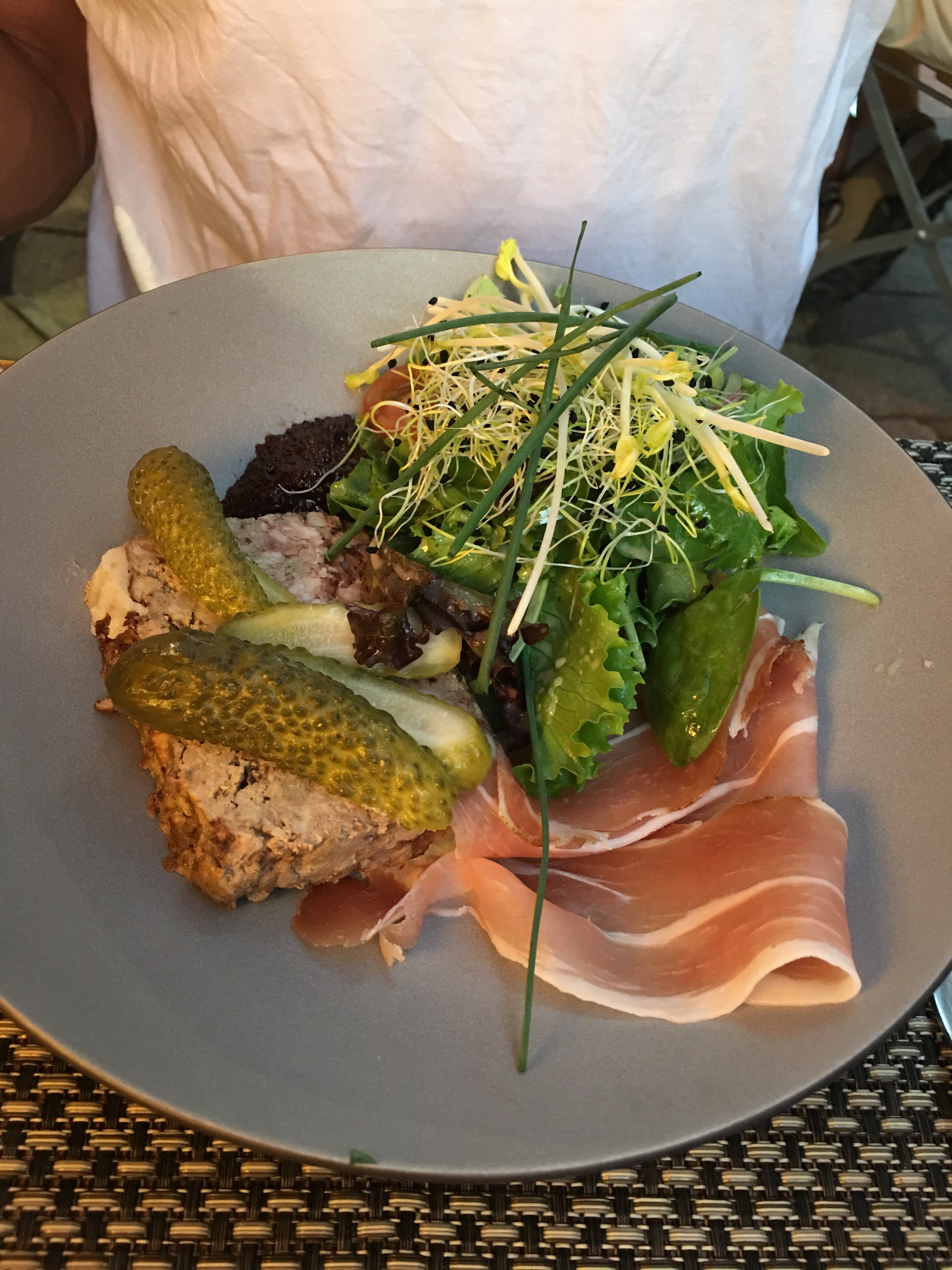 Formule entrée ou dessert et plat du jour a - de 15€ Très correct et très bon . Saumon cuit à la perfection rosé à l intérieur sur un lit d épinards . Jambonneau et pommes rôties excellents Les pommes de terre c est un délice Belle terrasse agréable . Service courtois et bien fait par tous . On reviendra si on est dans le coin