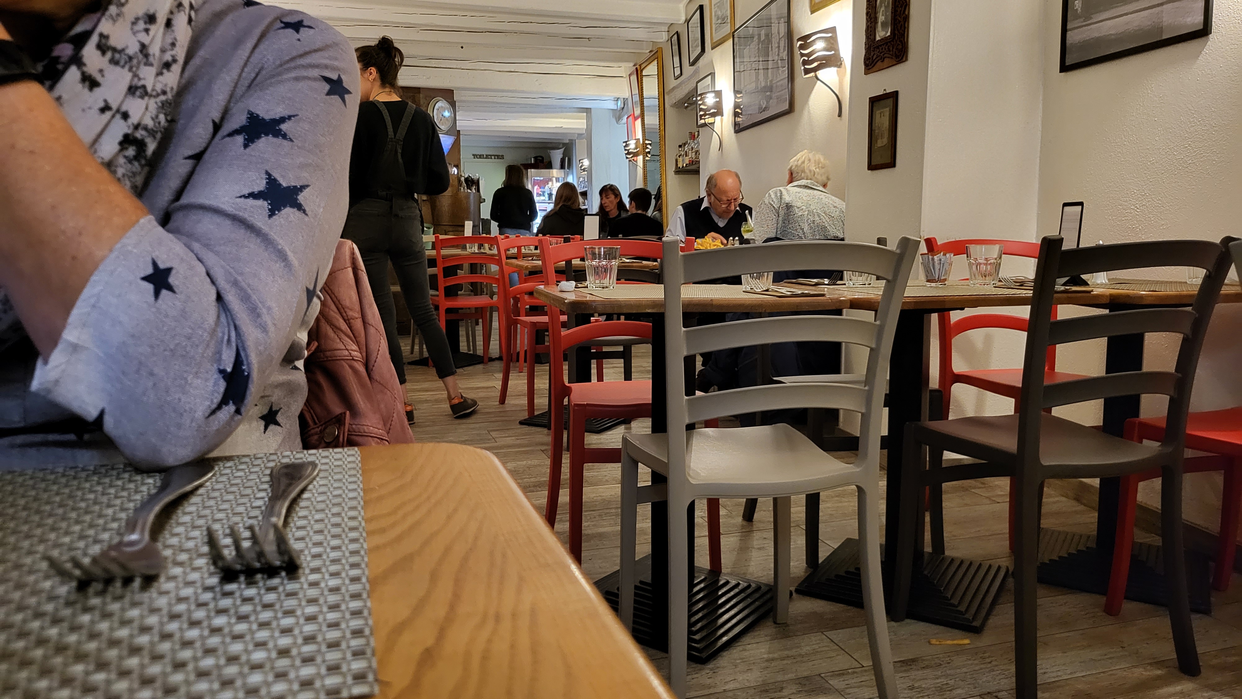 Il y à quelques jours nous étions à une table proche du passage, la serveuse était spécial.. La nourriture est bonne, rien à dire. Mais c’était compliquer de ne pas entendre toutes les insultes, remarques beauf et sexiste du patron dégoûtant qui parle avec un irrespect total, sûrement alcooliser… Son comportement est indiscret, son humour est pas drôle et met mal à l’aise… Ça doit sûrement être quelqu’un de triste au fond de lui pour parler de la sorte.
