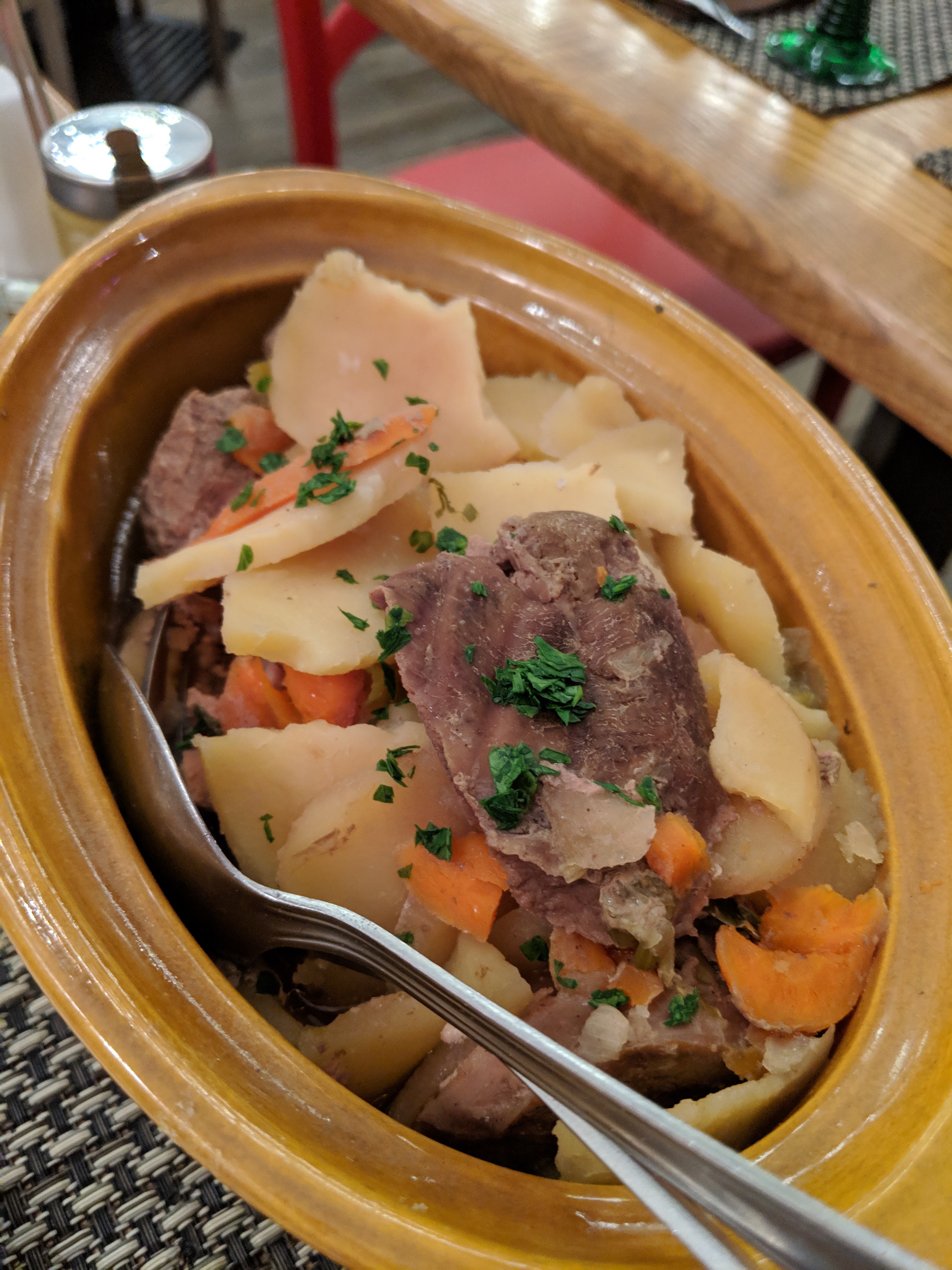 Nous avons pris le menu du jour (jour de bœuf confites et purées de patates douces) Tres surpris par la quantité et la qualité du repas (13.5euros entree + plat) et l'investissement des serveurs. Un très bon moment, nous nous sommes régalés.