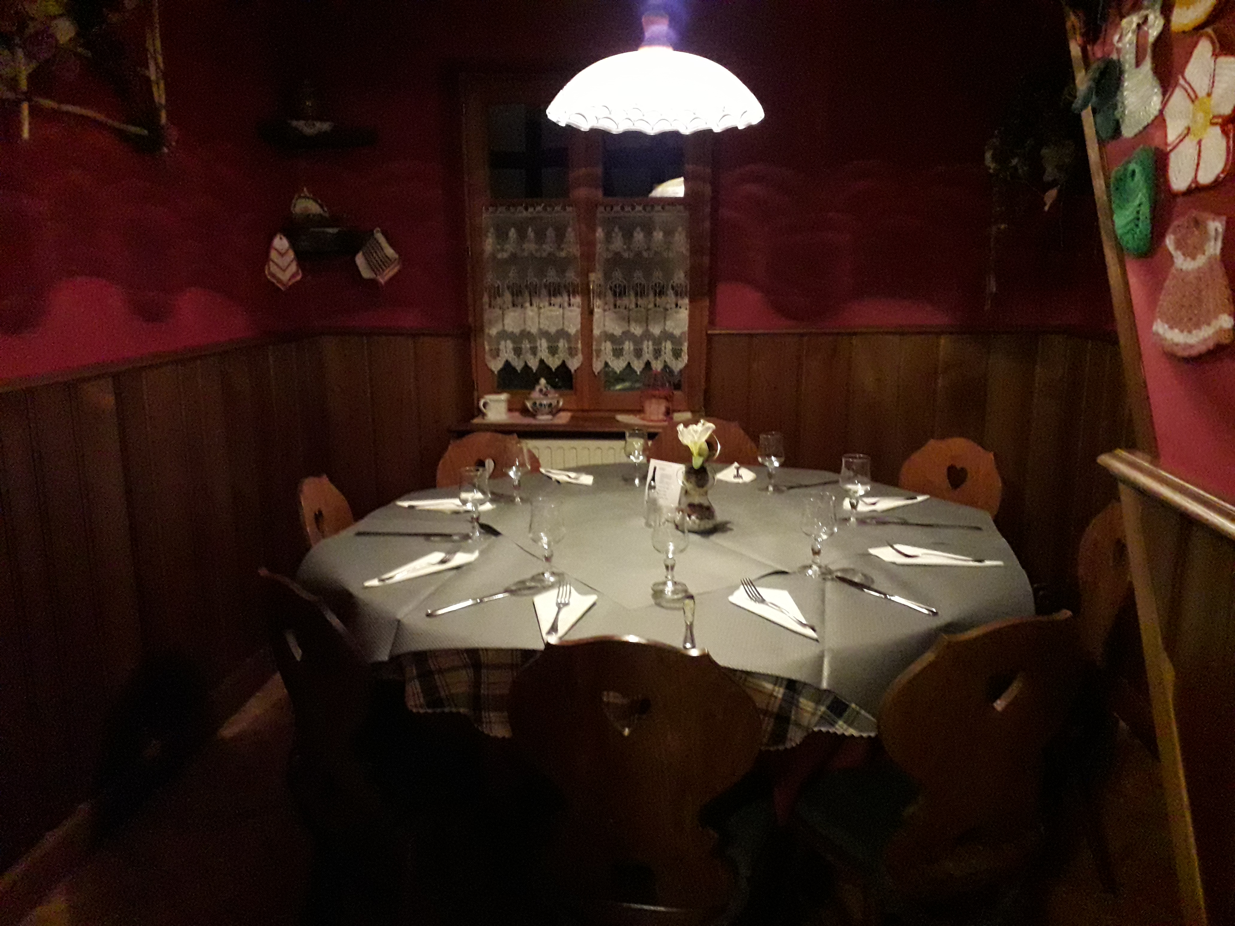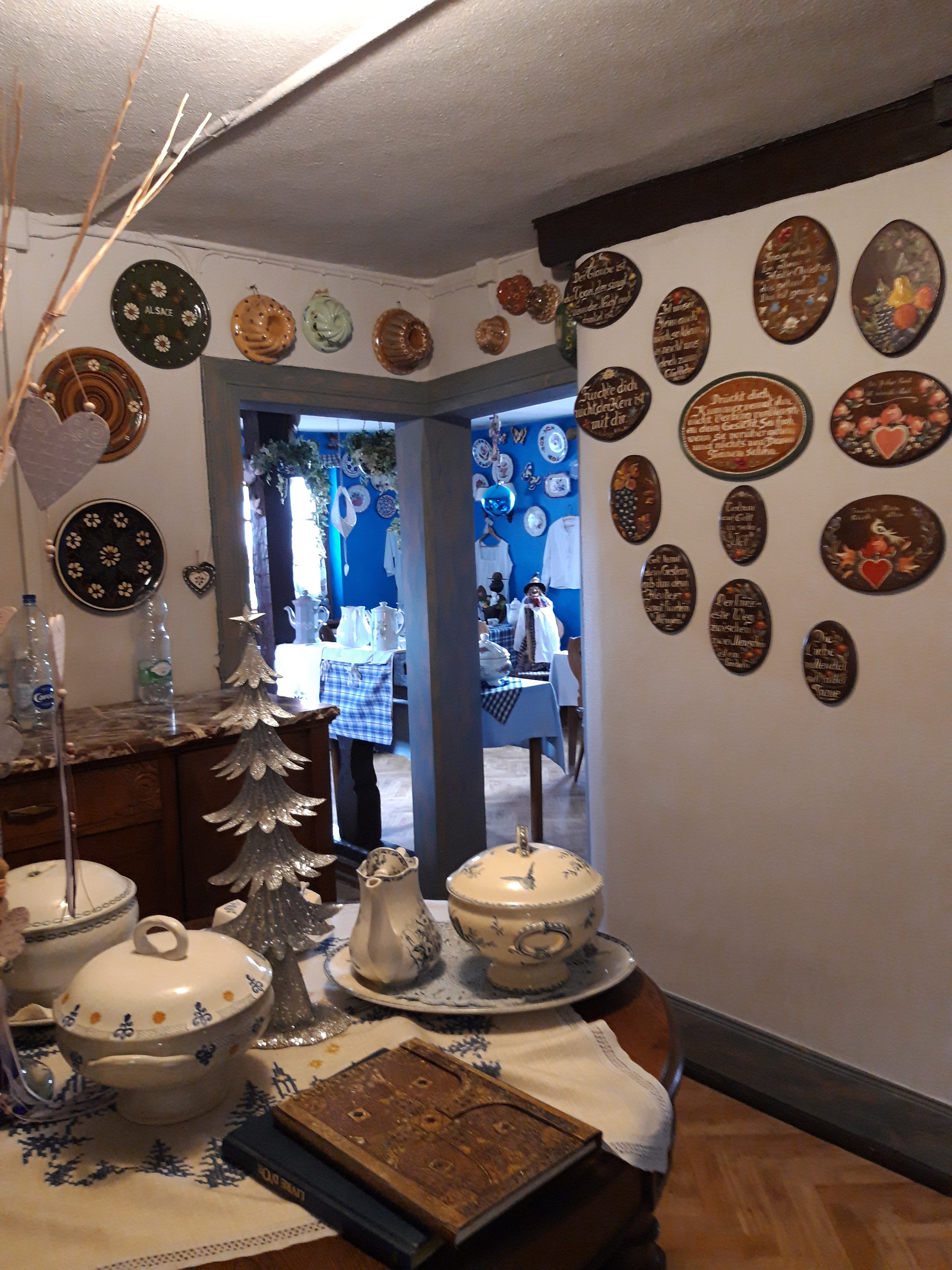Un lieu très typique alsacien, contes et légendes d'Alsace Hansel et Gretel, il ne manque plus que HANS TRAPP hihihi, un accueil très chaleureux des plats incroyables alsaciens comme j'adore une décoration hors norme ! restaurant au pays des sorcières et bien j'espère que ce n'est pas mon dernier repas hihihahahaa , la patronne fort sympathique a décoré avec goût tout son rrestaurant , même les gens du village lui ont offert des objets très personnel des assiettes de mariage ou autre , pour décorer le restaurant incroyable si magique si beau.. Les plats sont servis généreusement d'une qualité absolu, je recommande vivement ce restaurant alsacien, merci à toute l'équipe et à très bientôt on vous embrasse la famille PILLOUD de la région Rhône-Alpes à très bientôt