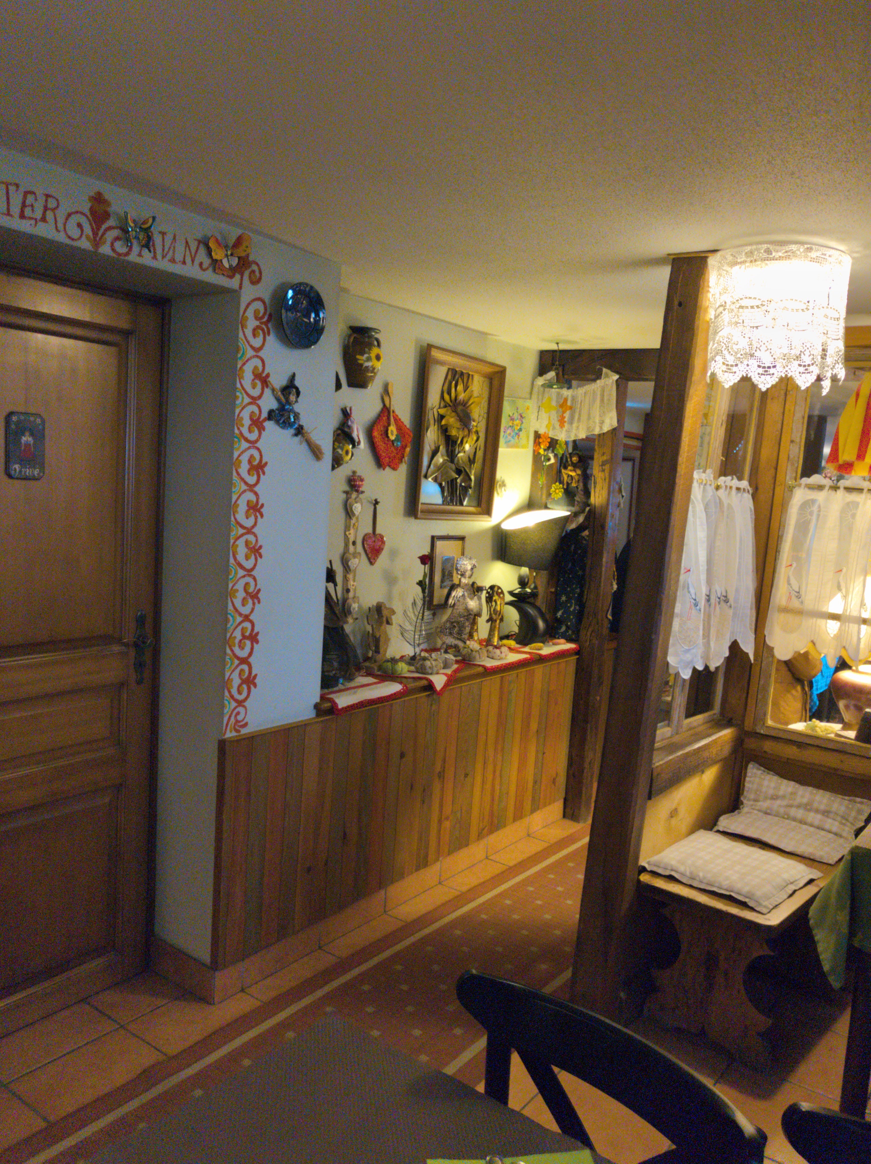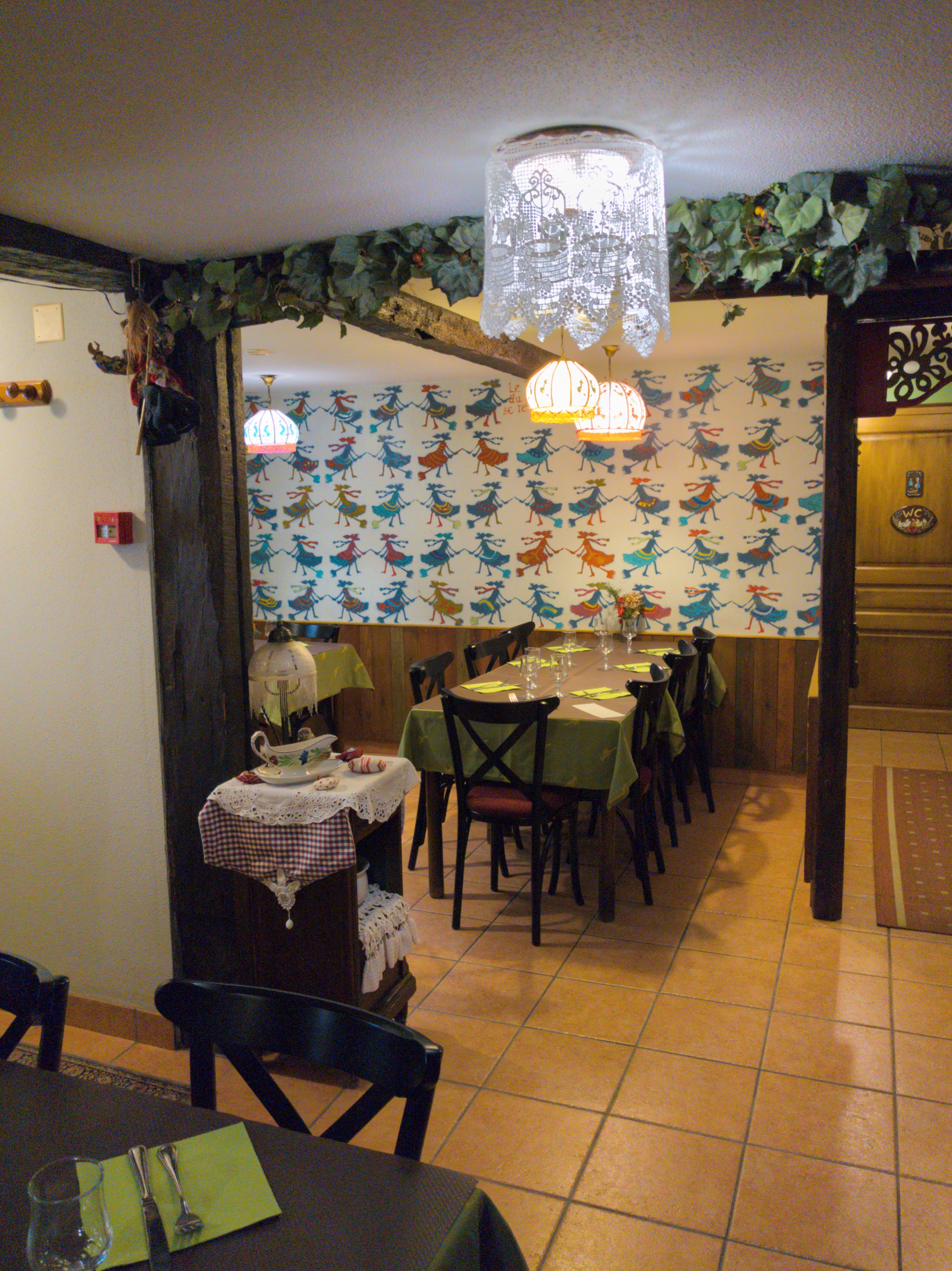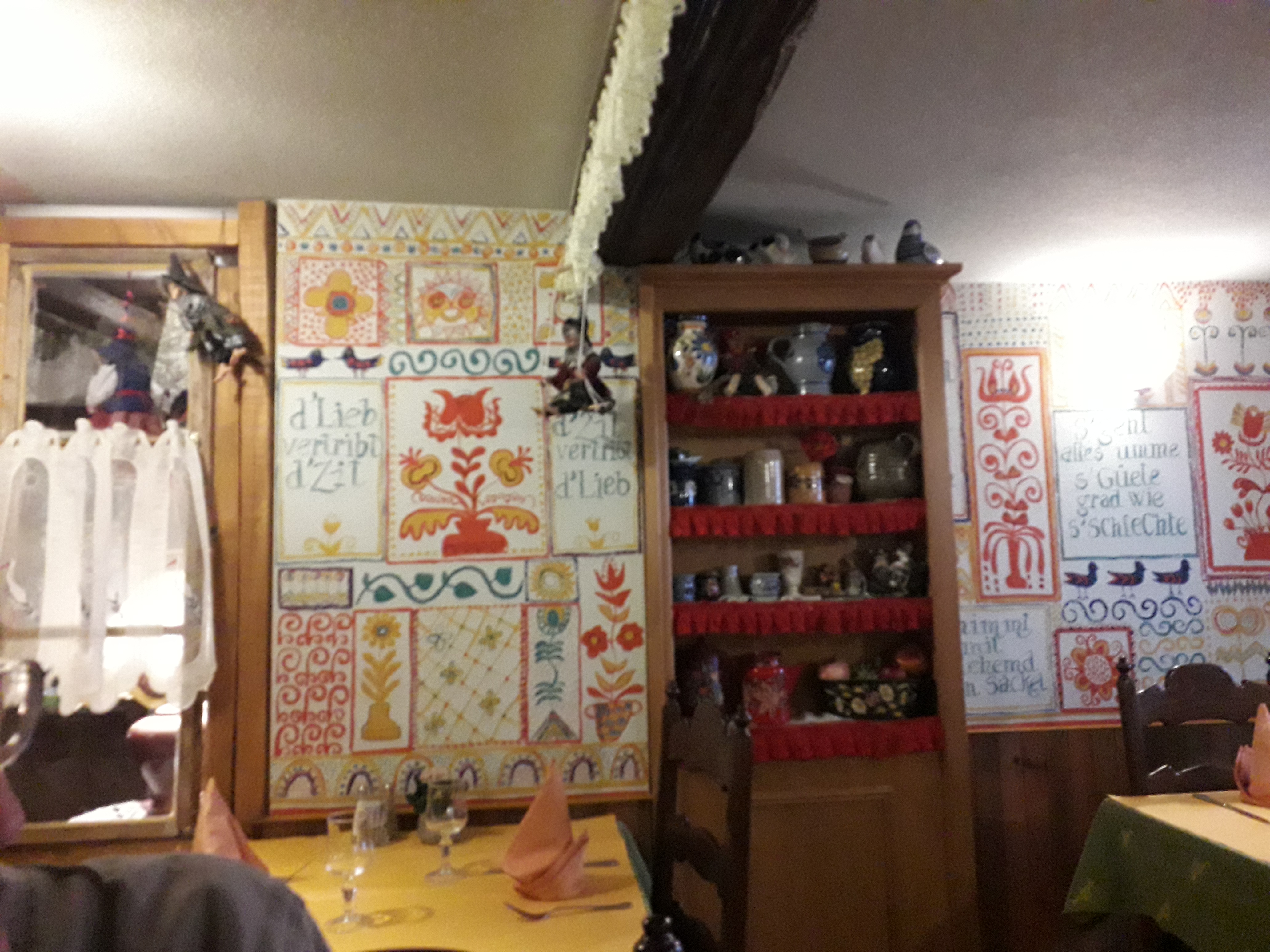 C'était bon mais par contre très bruyant Jolie décoration alsacienne avec entre autres des poteries de Betschdorf et de Soufflenheim, jolis rideaux avec des cigognes