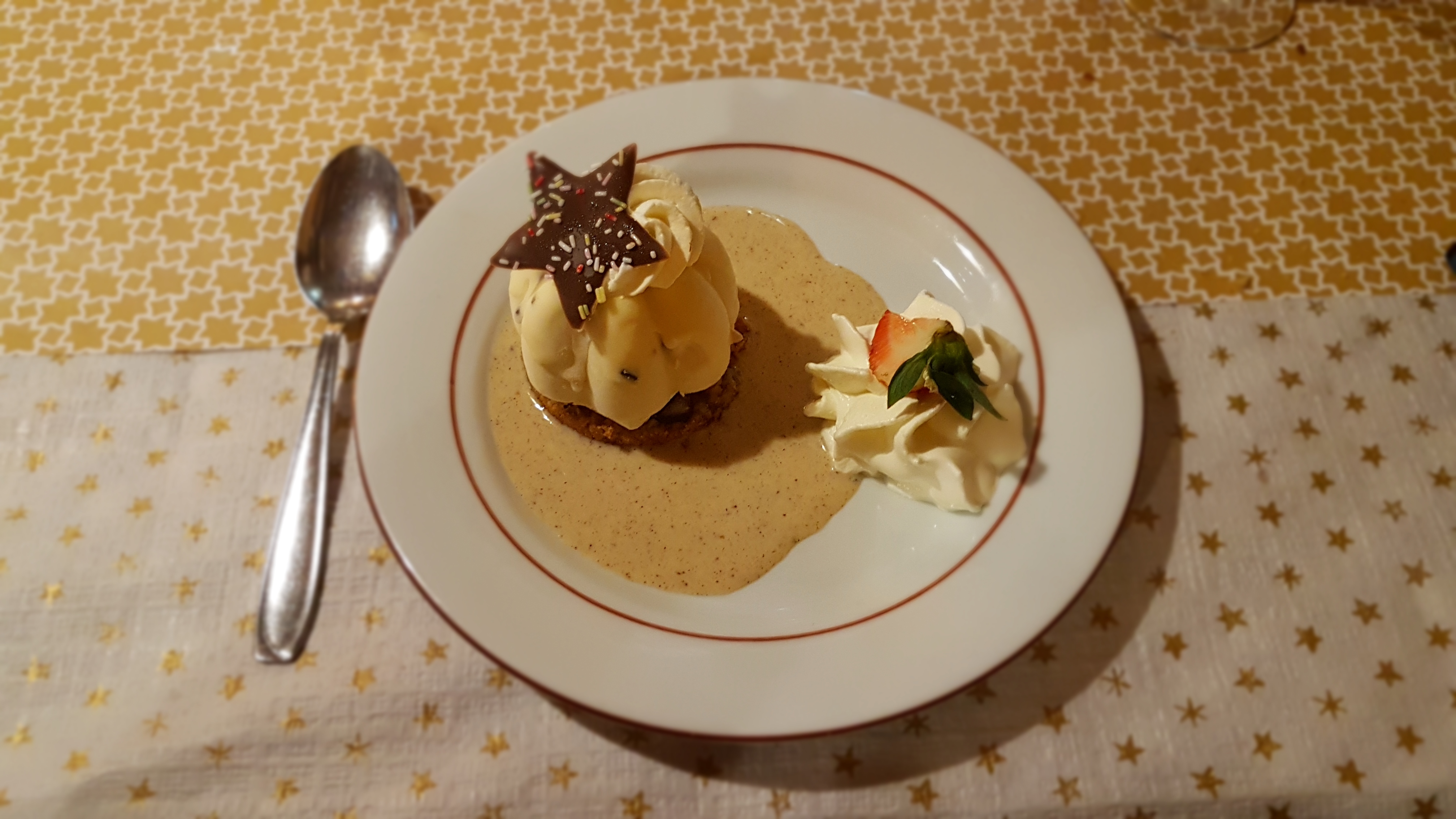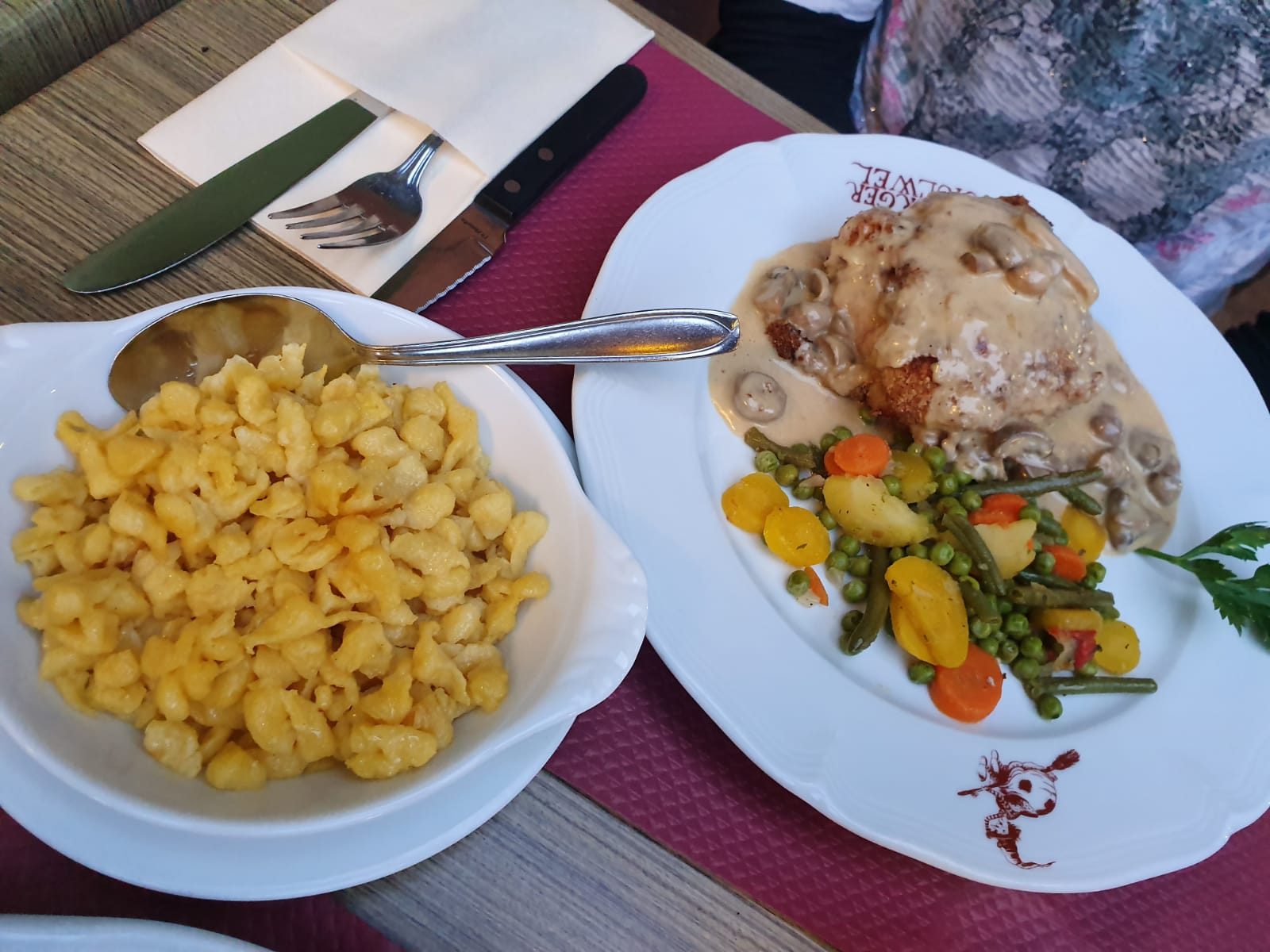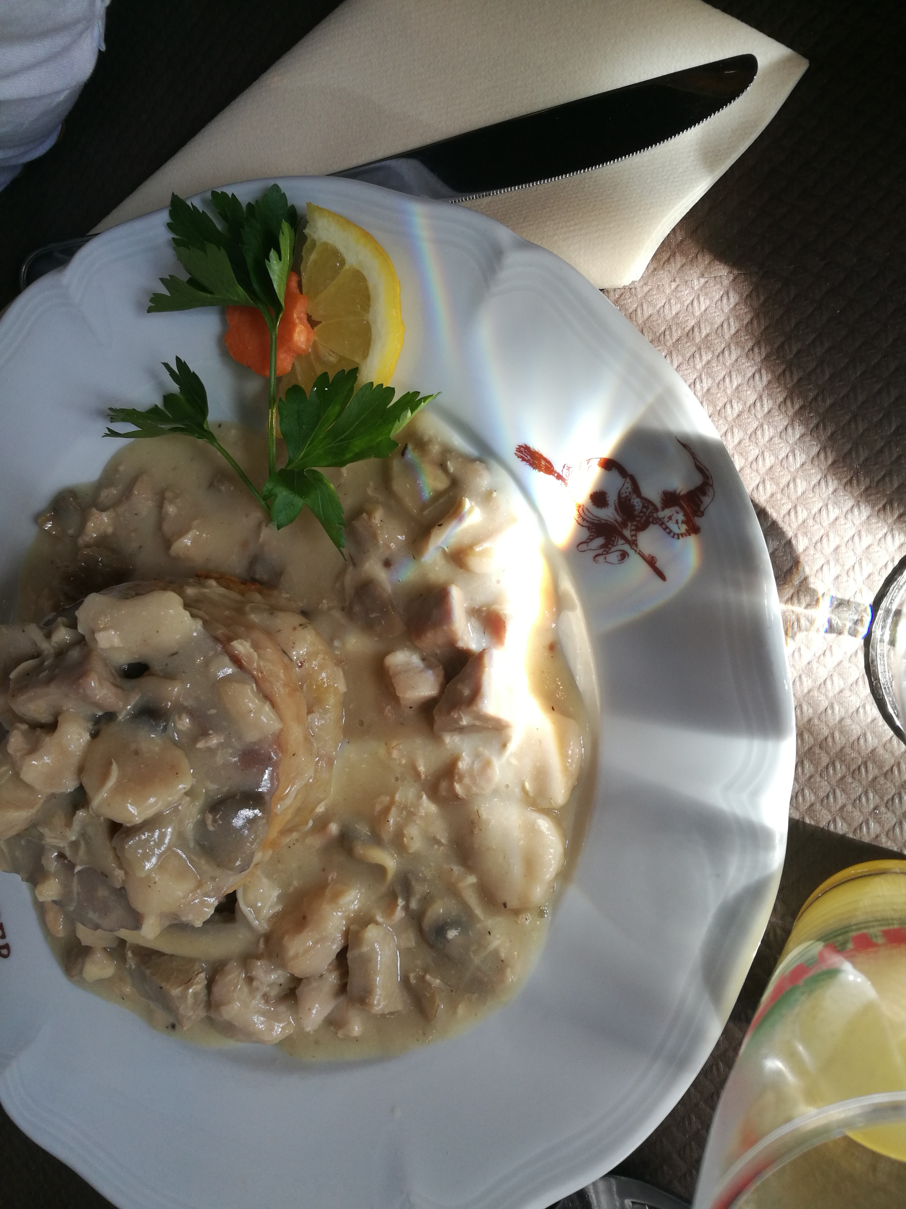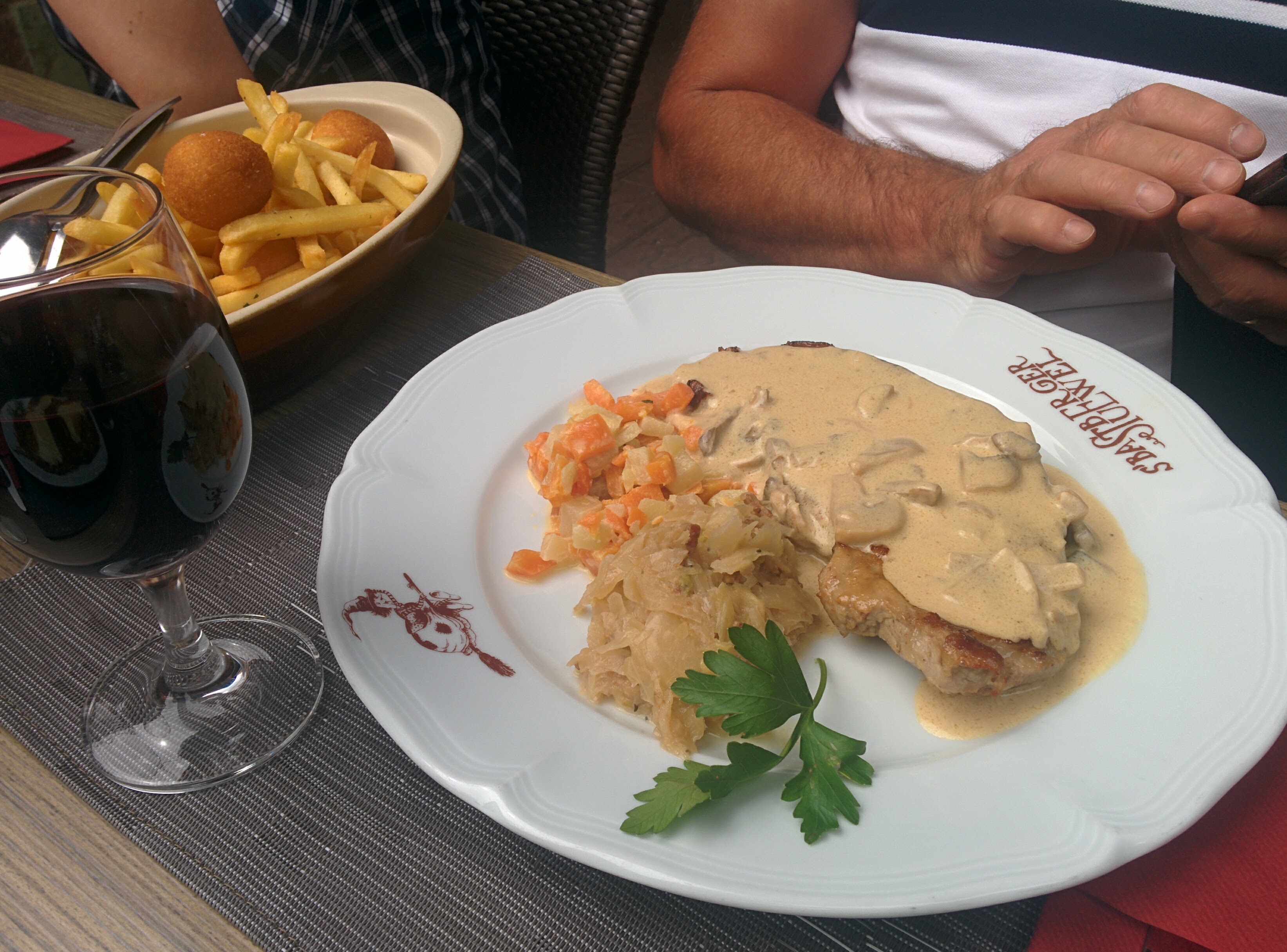 Bonne expérience, le plat principal était bon cordon bleu de veau à la crème et aux champignons, frites faites maison et le dessert petit kouglopf glacé extra ! Il manquait juste que le cordon bleu soit saisi sur les côtés pour arriver à 4 étoiles...