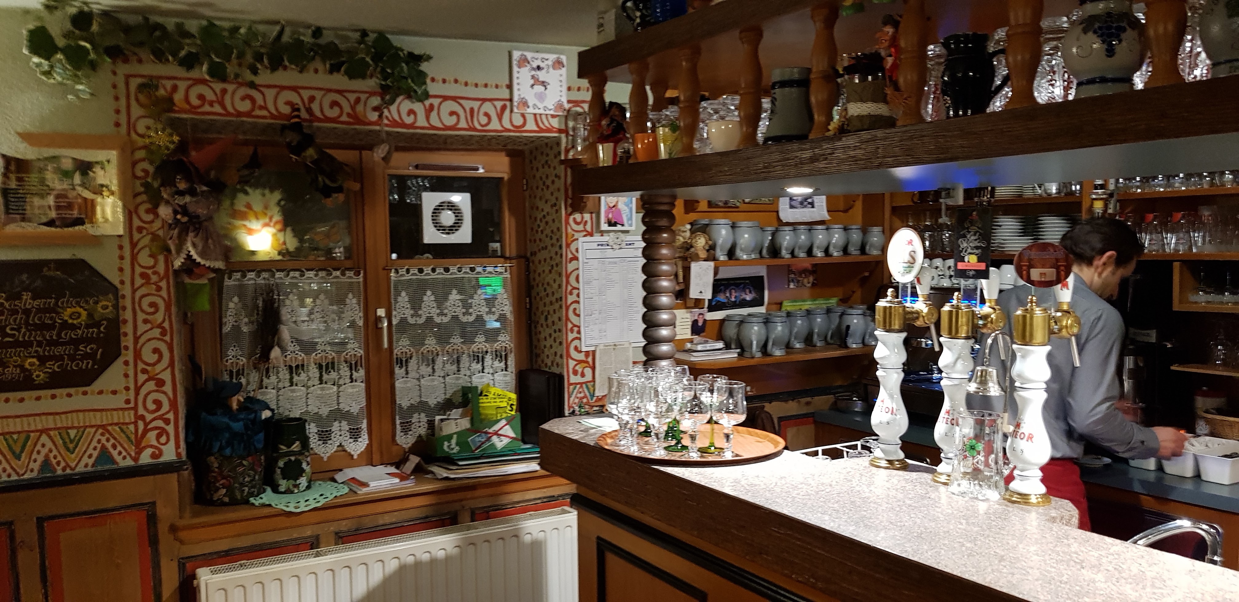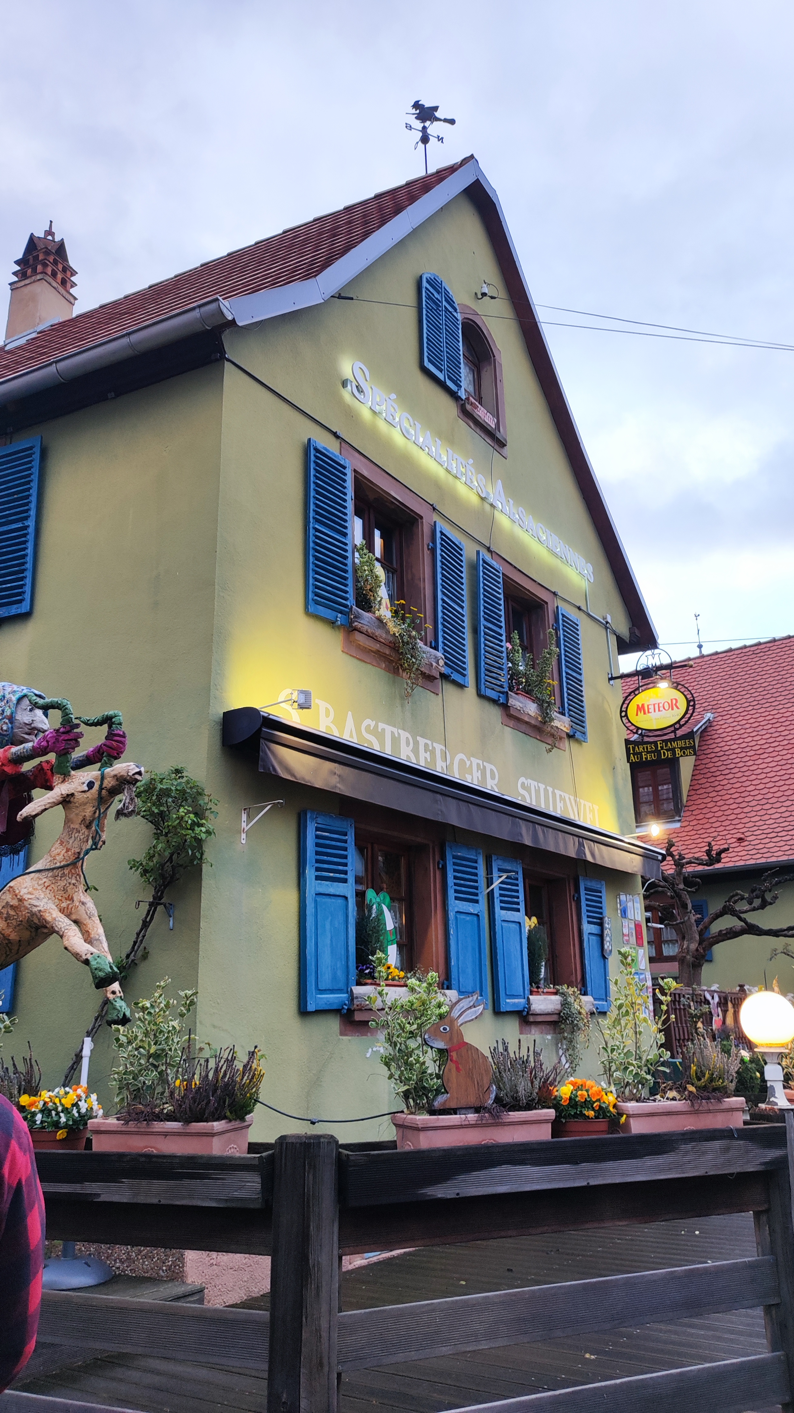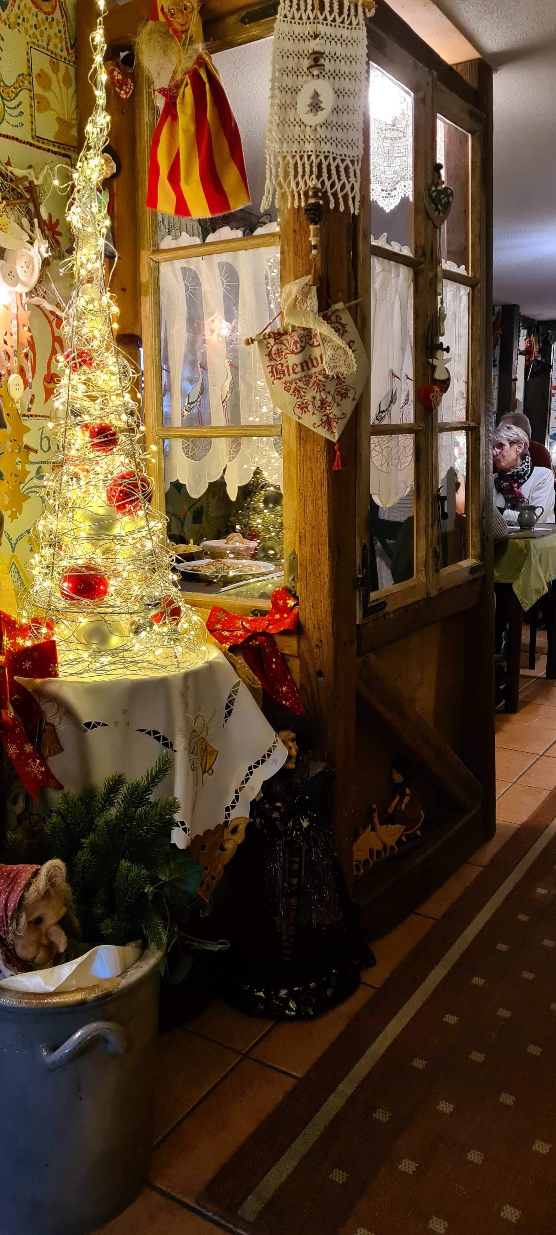 Quelles découvertes !!! Cela fait quelque temps que ce lieu m’attirés malgré les nombreuses sorcières qui sont dans chaque recoin. Nous approchons des fêtes de Noël, de très belles décorations concernant l’époque de nos grand-parents ont y ce sens bien. nous sommes en Alsace au Restaurant S’Bastberger-Stuewel à Imbsheim. Quel accueil par Anny on a l’impression d’être un habitué des lieux ce qui n’est pas notre cas. Je ne peux vous présenter leurs cartes proposant des mets qui donne l’eau à la bouche, nous avons craqué pour un jarret de porc braisé à la bière, servi sur un lit de choucroute, tout y ai passé jusqu’à l’os quel moment !!! Merci à Anny et toute l’équipe qui l’entoure.
