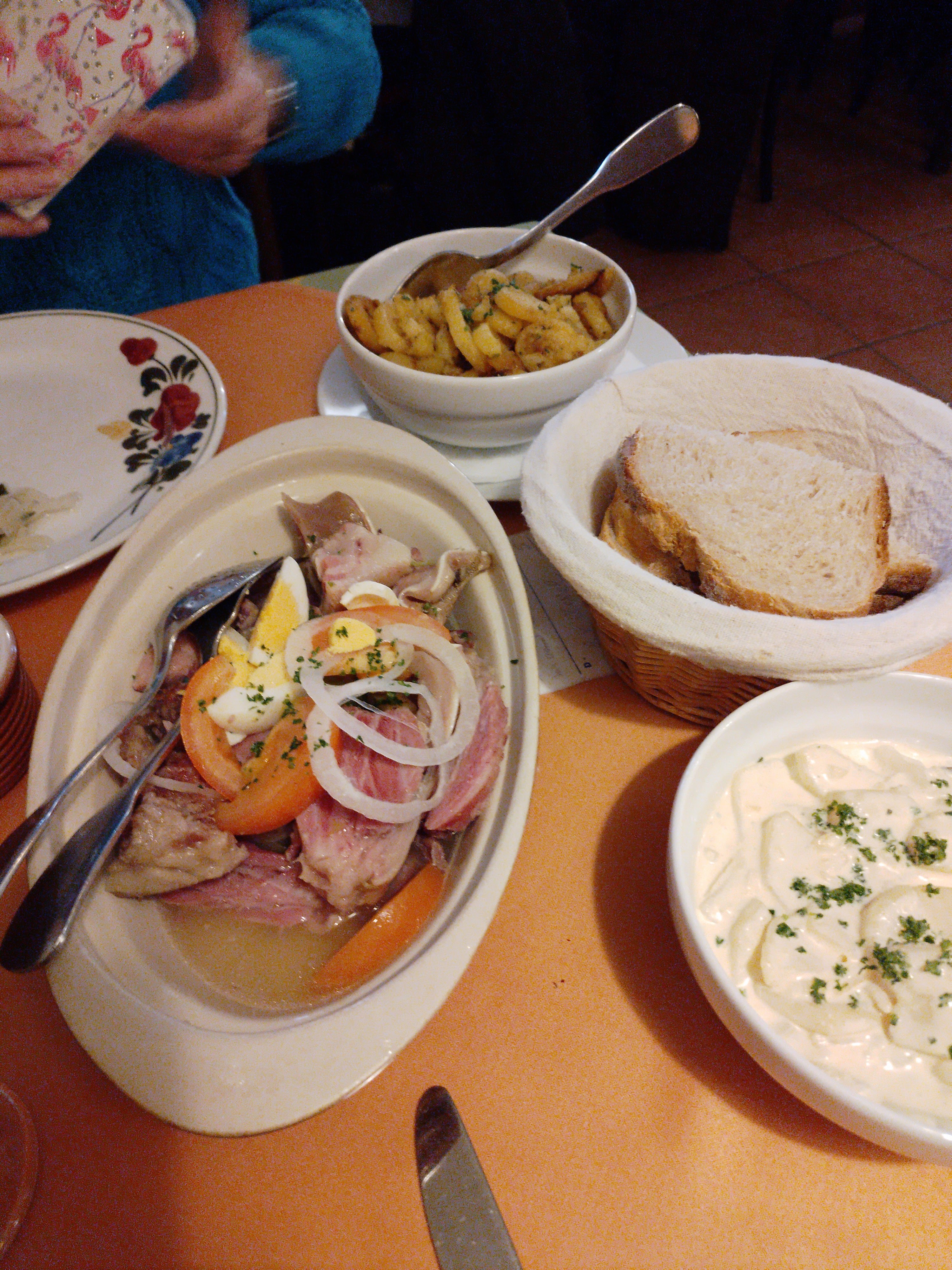 Étions 5 personnes spécialement venus pour le baeckeofe Étions obligés de chercher la viande dans la topf et celle que l'on trouvait n'était pas assez cuite et l'ensemble du plat était tiède Très déçu