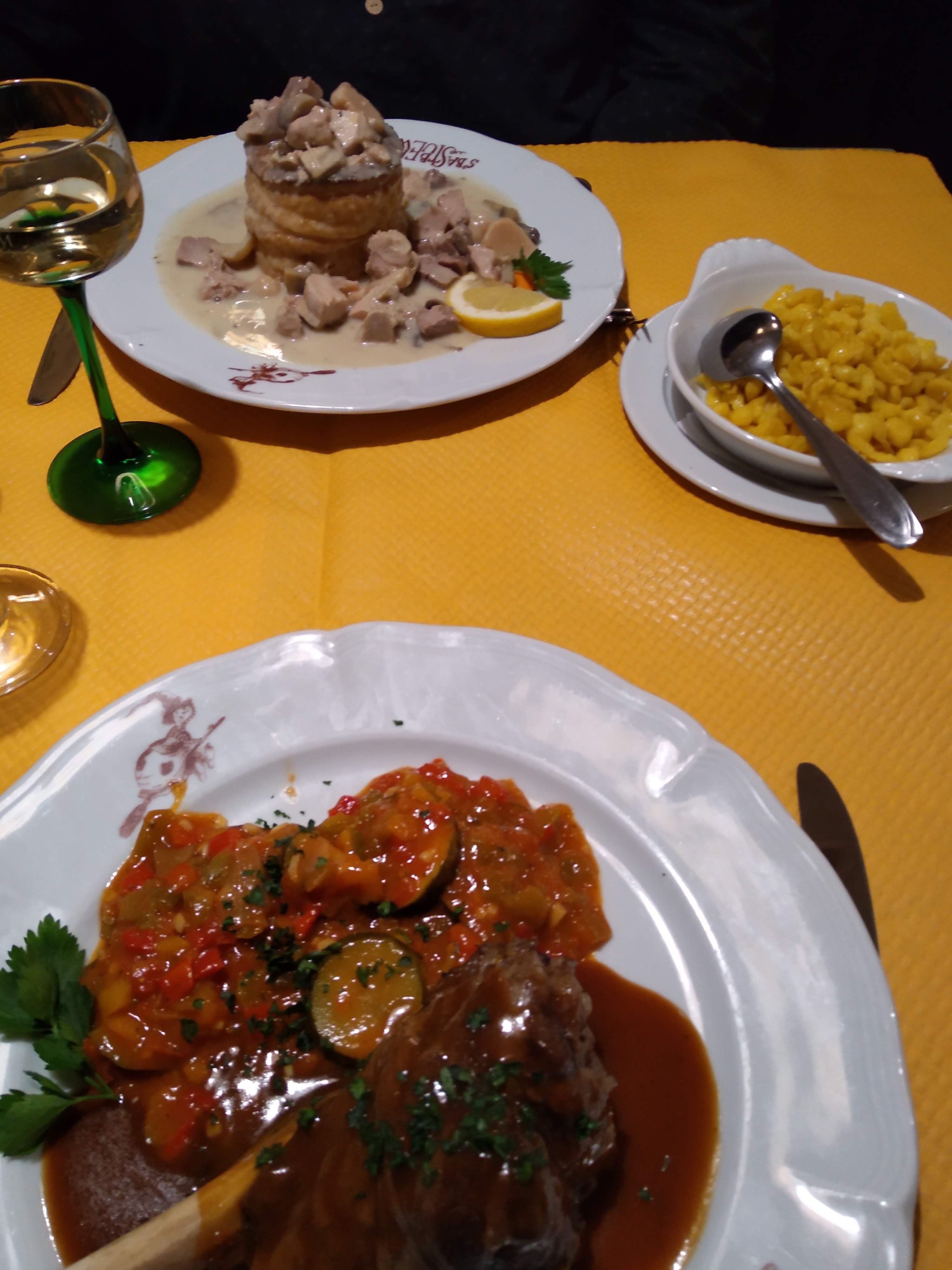 Cuisine typiquement alsacienne excellente. Service et accueil parfait nous recommandons cette établissement à la déco impressionnante .