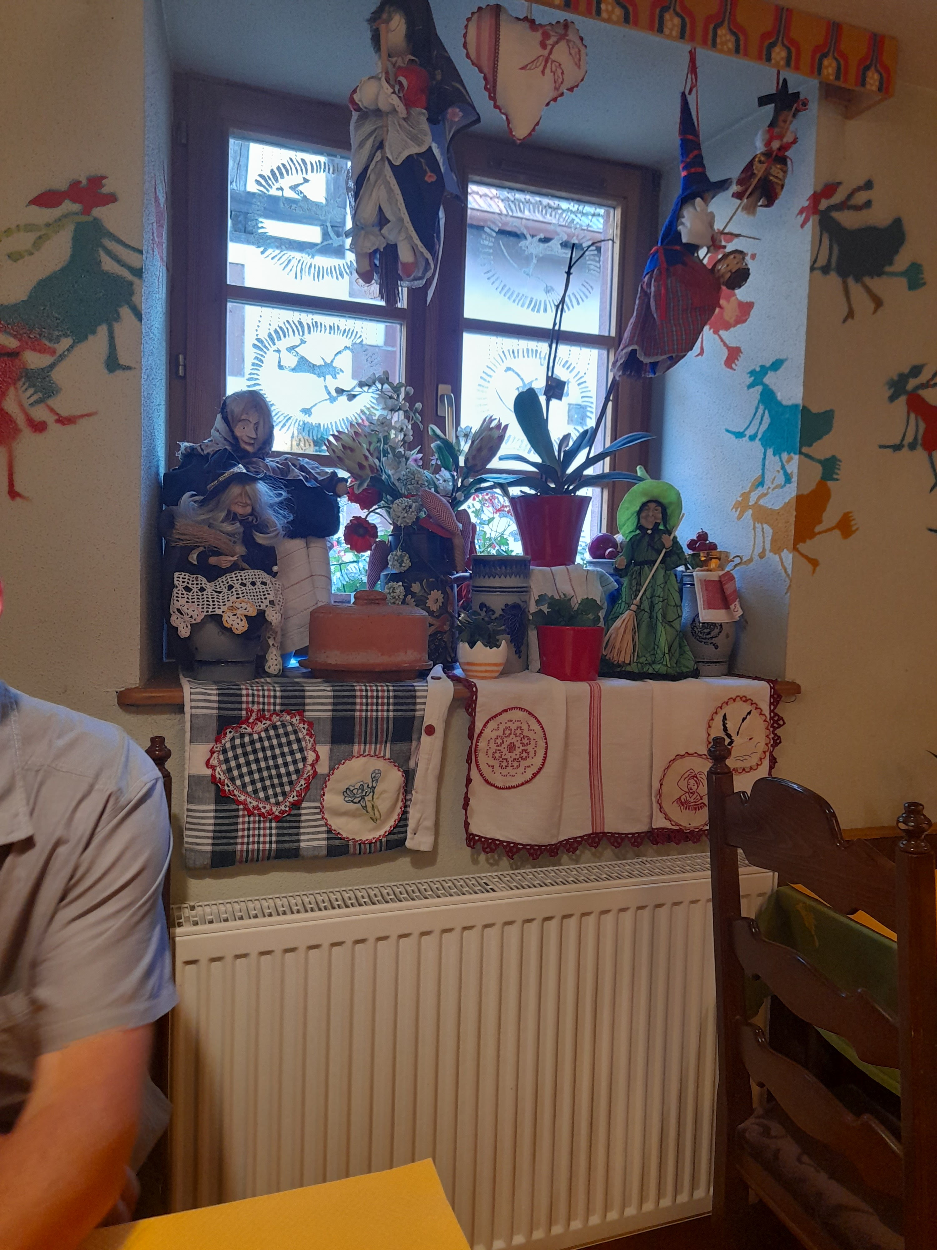Un décor unique rempli de sorcières et d'objets traditionnels alsaciens, presque un musée....et des plats bien copieux et très bons . On s'y régale dans une bonne ambiance . La tarte flambée est excellente et on sent tout de suite l'authenticité des recettes ...bref, courrez y ..mais laissez votre balai devant