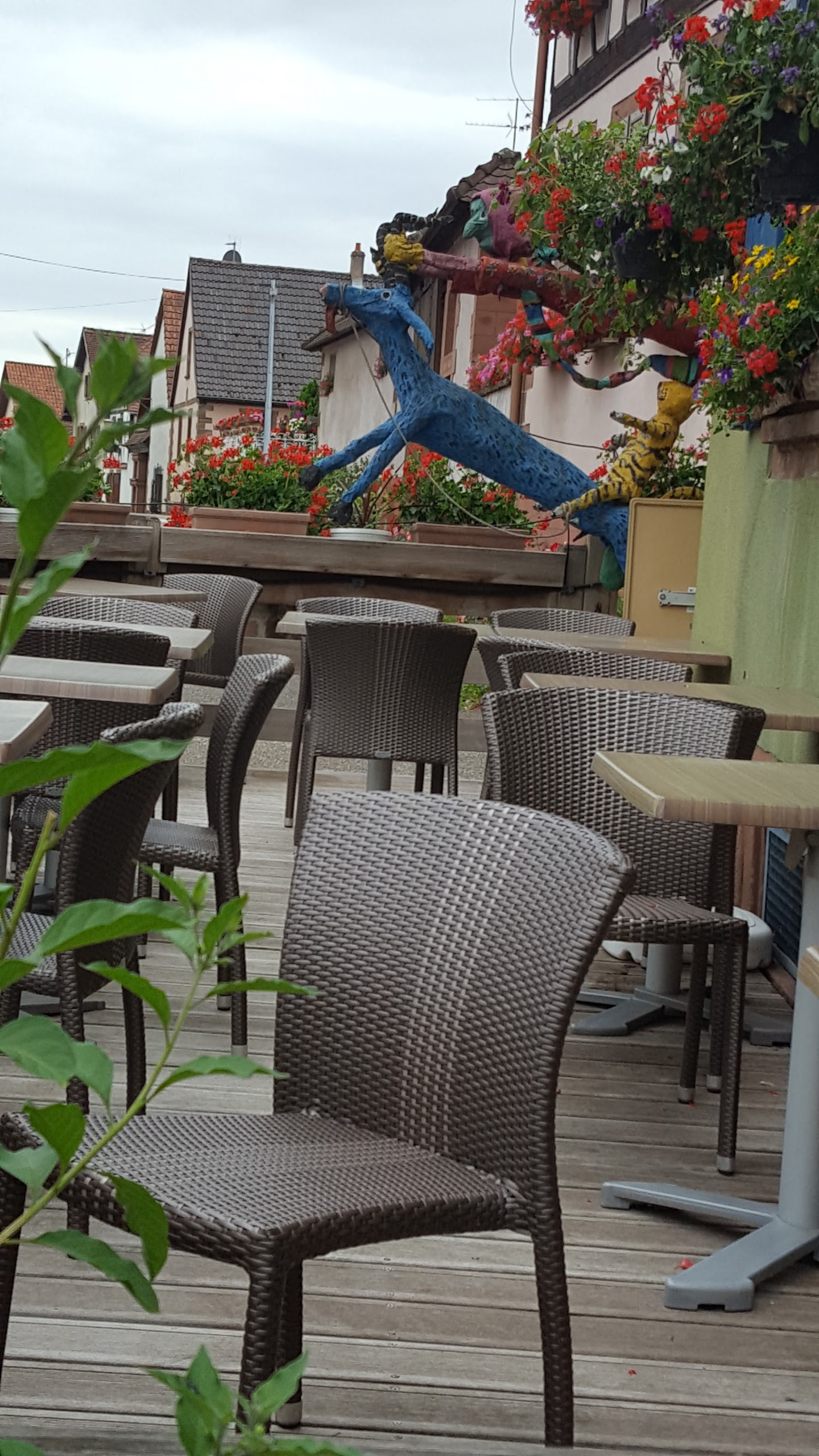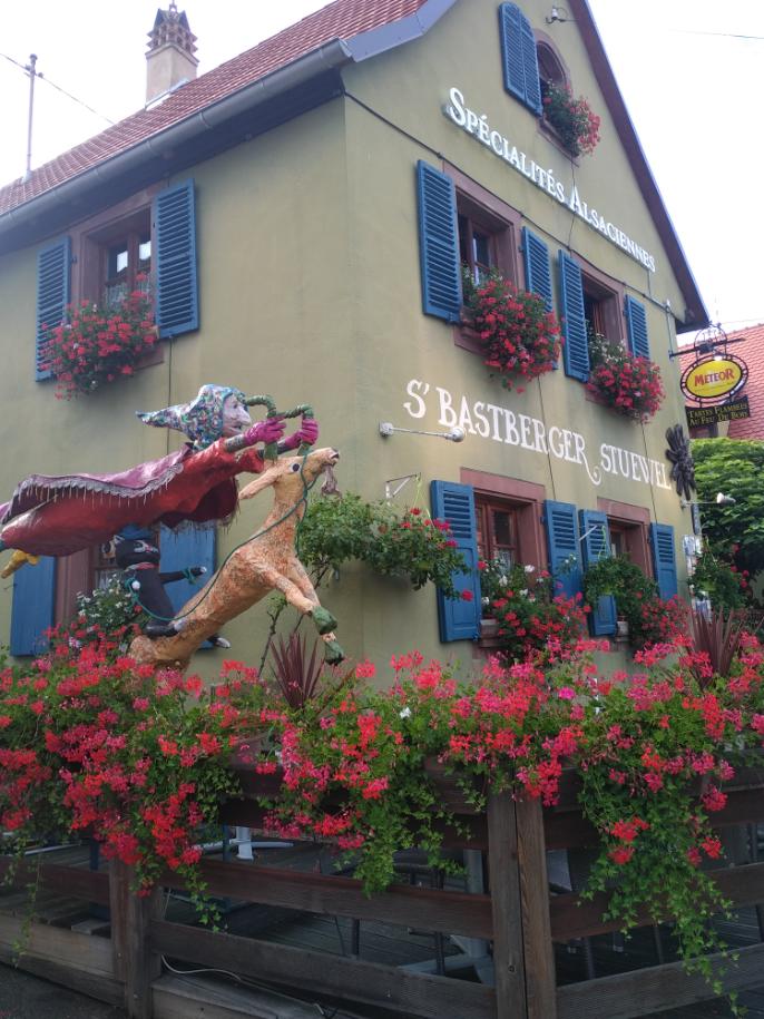 Tout partait pourtant si bien ! Joli cadre alsacien orné d'une myriade de fleurs et d'une jolie terrasse, jolie sorcière en déco (eh oui on est en plein pays des sorcières !), carte appétissante (peut-être un peu trop de plats ?) mais avec des prix dignes du vieux Strasbourg en pleine période touristique... Nous sommes tout de même près de 50 km de notre capitale européenne... Qu'à cela ne tienne, une réservation est prise pour 19h. Nous arrivons, places en terrasse comme demandée et le marathon commence ! Mais d'abord un petit sprint... A peine le temps de s’asseoir, que les les cartes sont posées et qu'on nous demande si nous désirons un apéritif et si nous avons déjà choisi nos plats(je n'avais pas encore posé mon sac ...). Bah, il faut de tout pour faire des restos et nous prenons le temps de notre apéritif pour choisir et ... 40 minutes passent entre la commande et l'arrivée de nos plats (Plats traditionnels mais au demeurant bons. Notons que le Gewurtz de l'apéro ainsi que la bière blanche étaient goûteux à souhait). Nous dégustons nos plats, reprenons une boisson et commandons nos desserts (tout aussi appréciables que nos premiers mets). Nous terminons avec un café puis demandons la note... Et là... C'est le drame !!! Nous réglons en chèques restaurant ainsi qu'en espèce. Le serveur arrive, et en prenant l'assiette avec le règlement, nous assène un je vous rends la monnaie ? Euh, oui très cher...svp... Qu'à cela ne tienne, il repart avec la dite note et son règlement, et revient en nous la rendant : la patronne n'a pris qu'une partie du règlement en chèque restaurant... Il faut parfois un mois de remboursement pour eux alors le dimanche soir, elle n'accepte que la moitié des factures en CR... Ahahaha Pour une première, en voilà une jolie ! Nous sommes venus, avons vu, avons été presque convaincus mais partirons déçus sans espoir de retour... (Ils ont suffisamment de monde pour que cet avis ne les impacte sans doute pas ...).