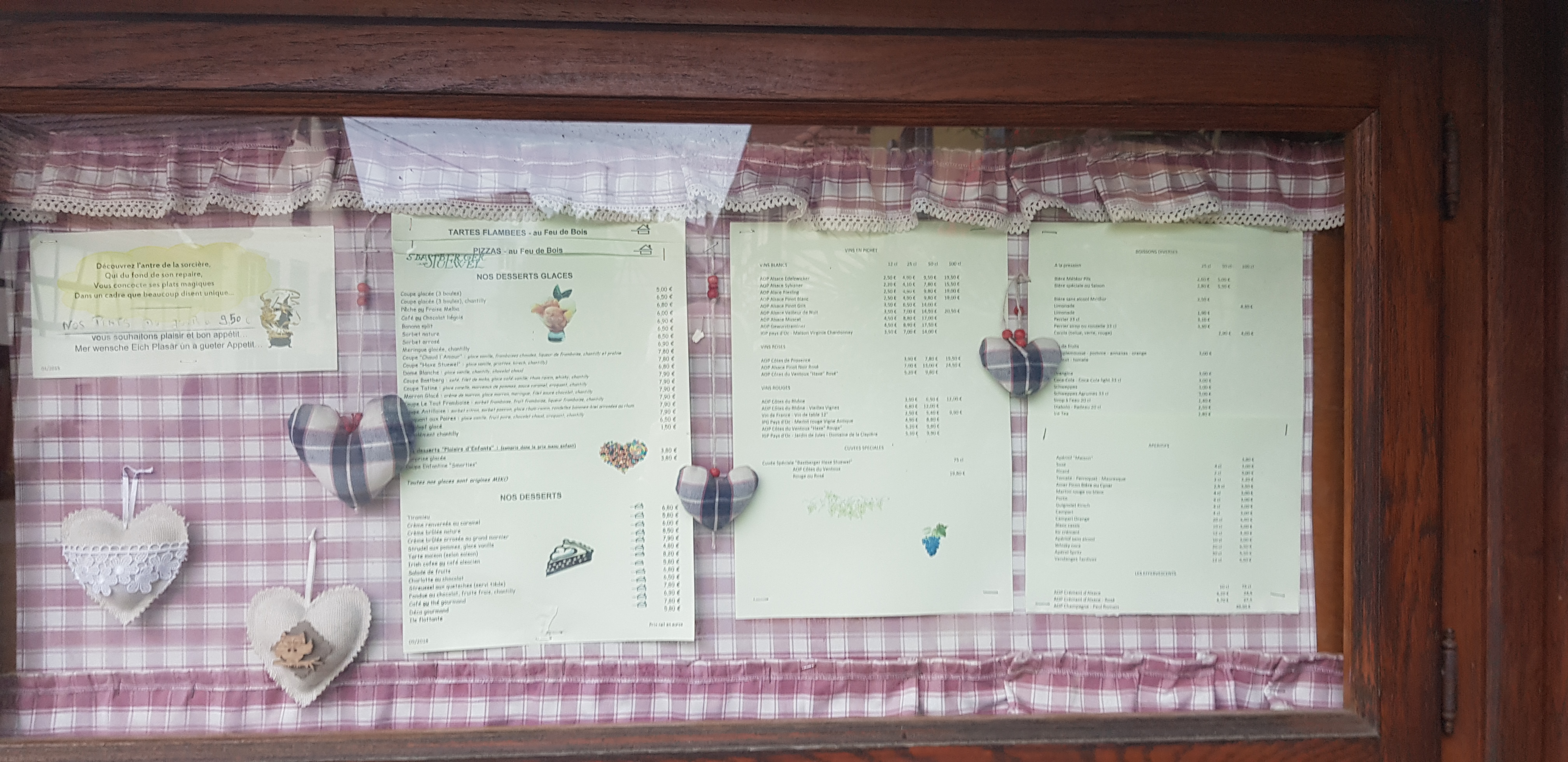 Autant à l'extérieur qu'à l'intérieur, le cadre est typiquement alsacien. Ce restaurant est le royaume des sorcières et la patronne elle-même revendique son appartenance à cette caste. Au niveau plats, c'est correct. Le rapport qualité-prix aussi. Le service est professionnel et sympa. La cuisine est typique. L'hygiène est au rendez-vous.
