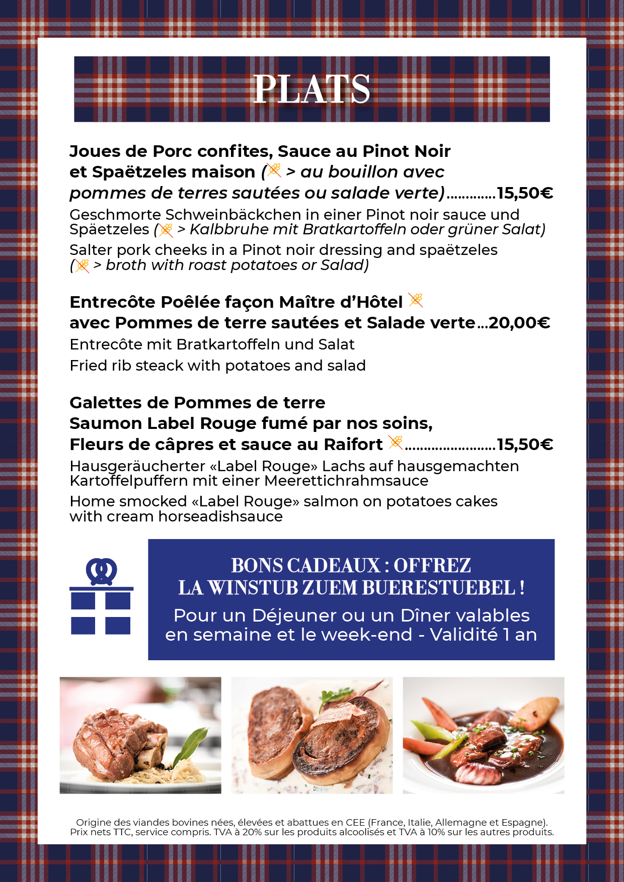 Alors là, on frôle la perfection. C' est la winstub dans le sens éthymologique du mot. Le cadre, les menus, les saveurs et surtout l'ambiance, tout est comme ça devrait être. Je ne m'étale pas sur la carte, tout à l'air appétissant et nous n'avons pas été déçus. Un méga bonus pour l'ambiance, entretenue de main de maître par la patronne et le serveur et finalement les conversations inter-tables qui se créent. Merci et on reviendra, c'est sûr