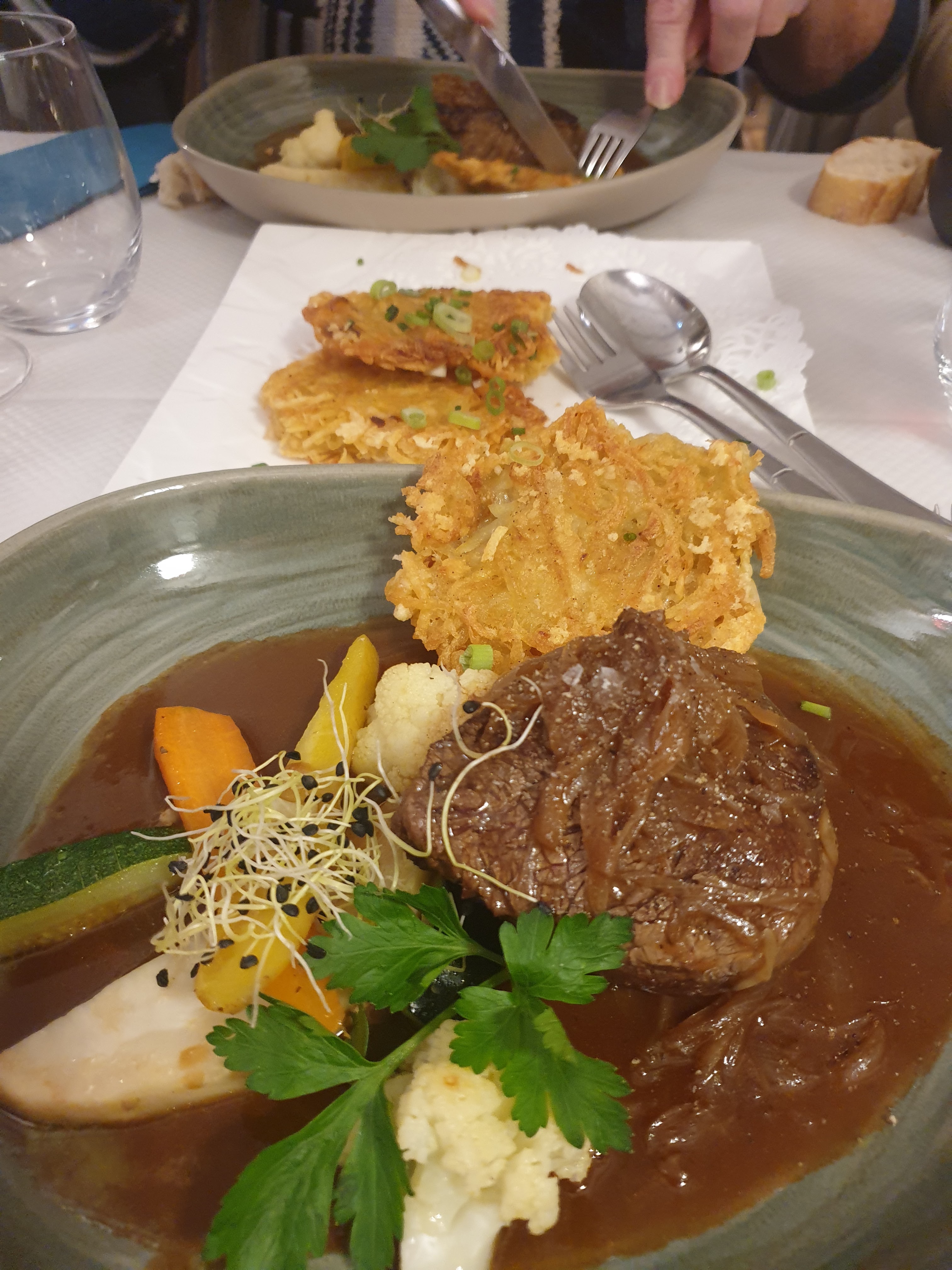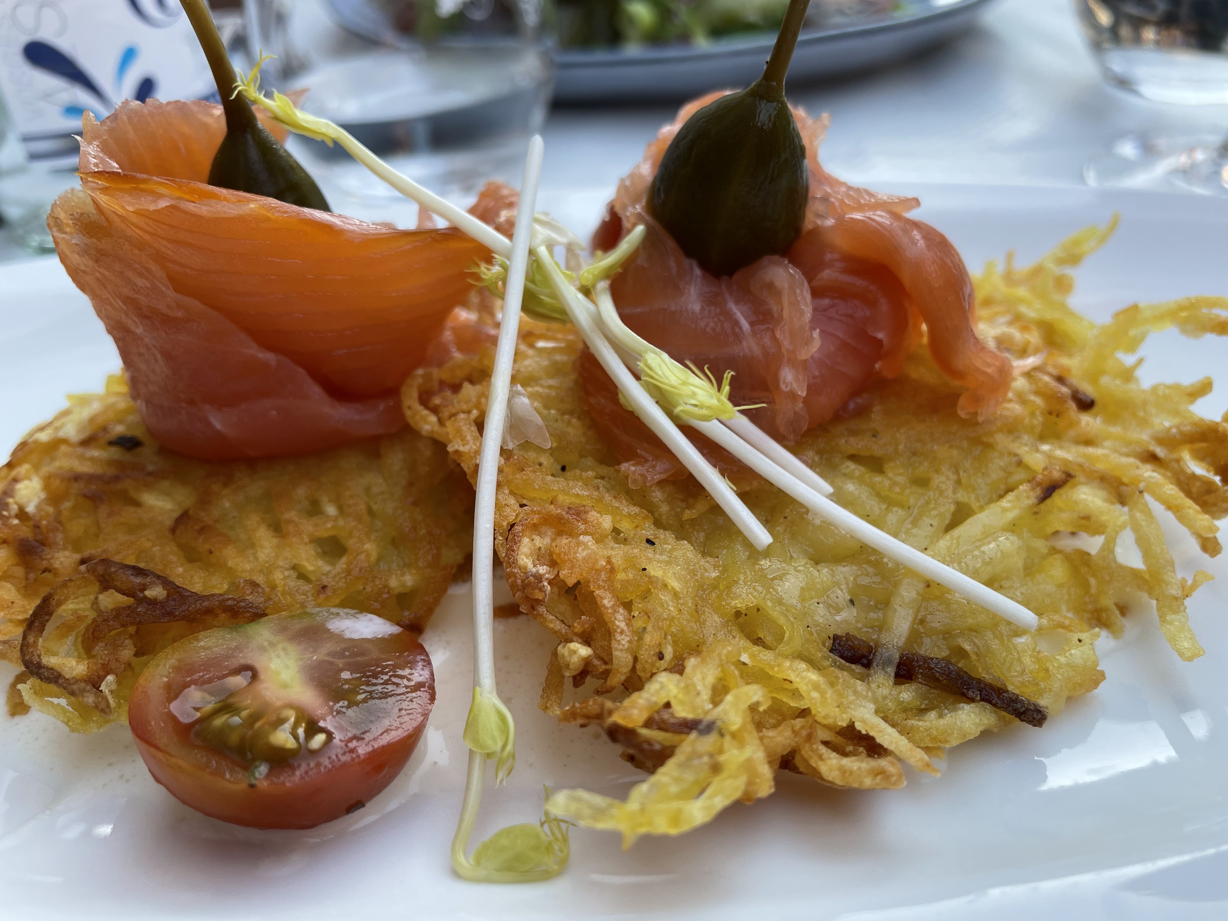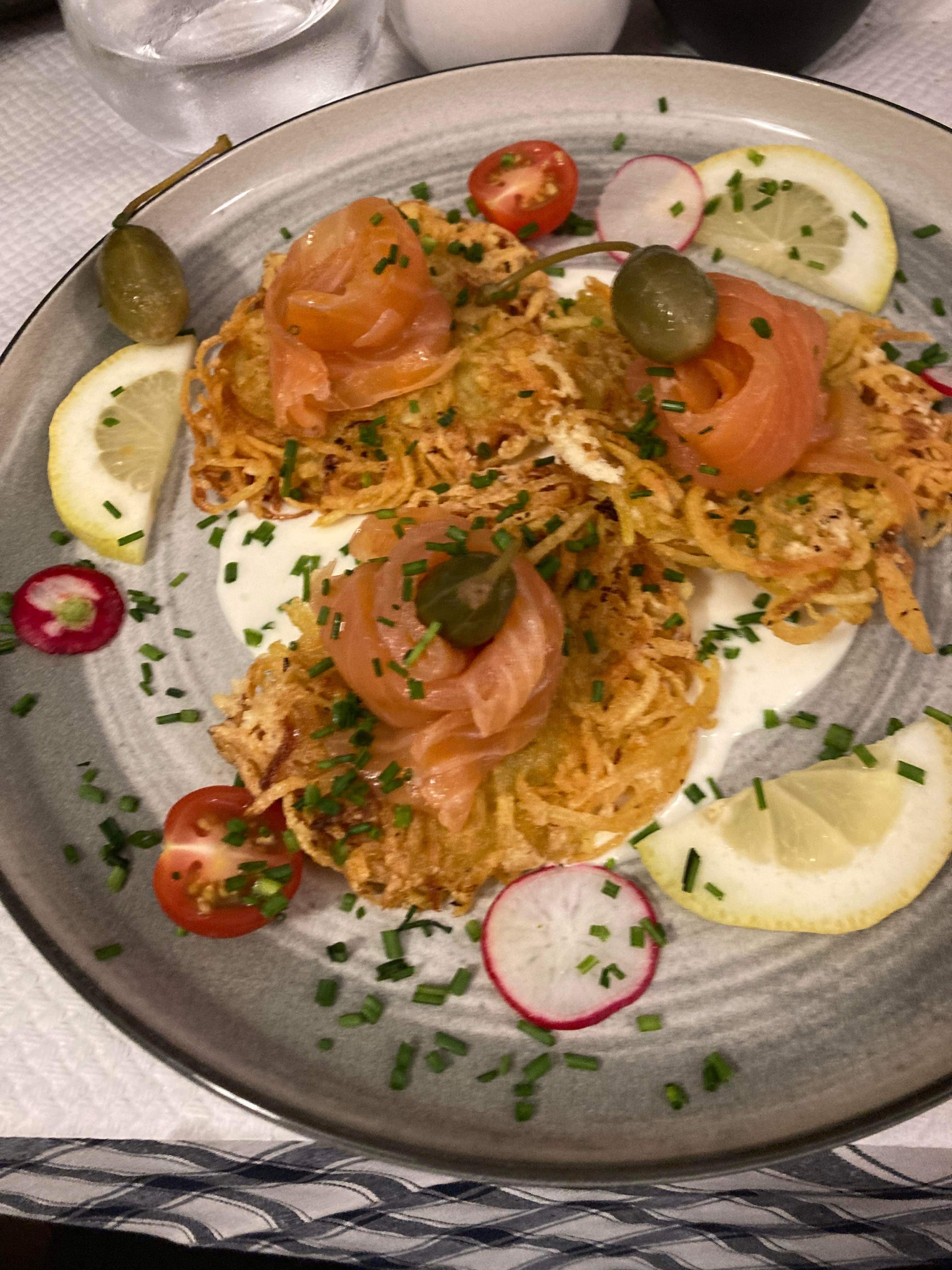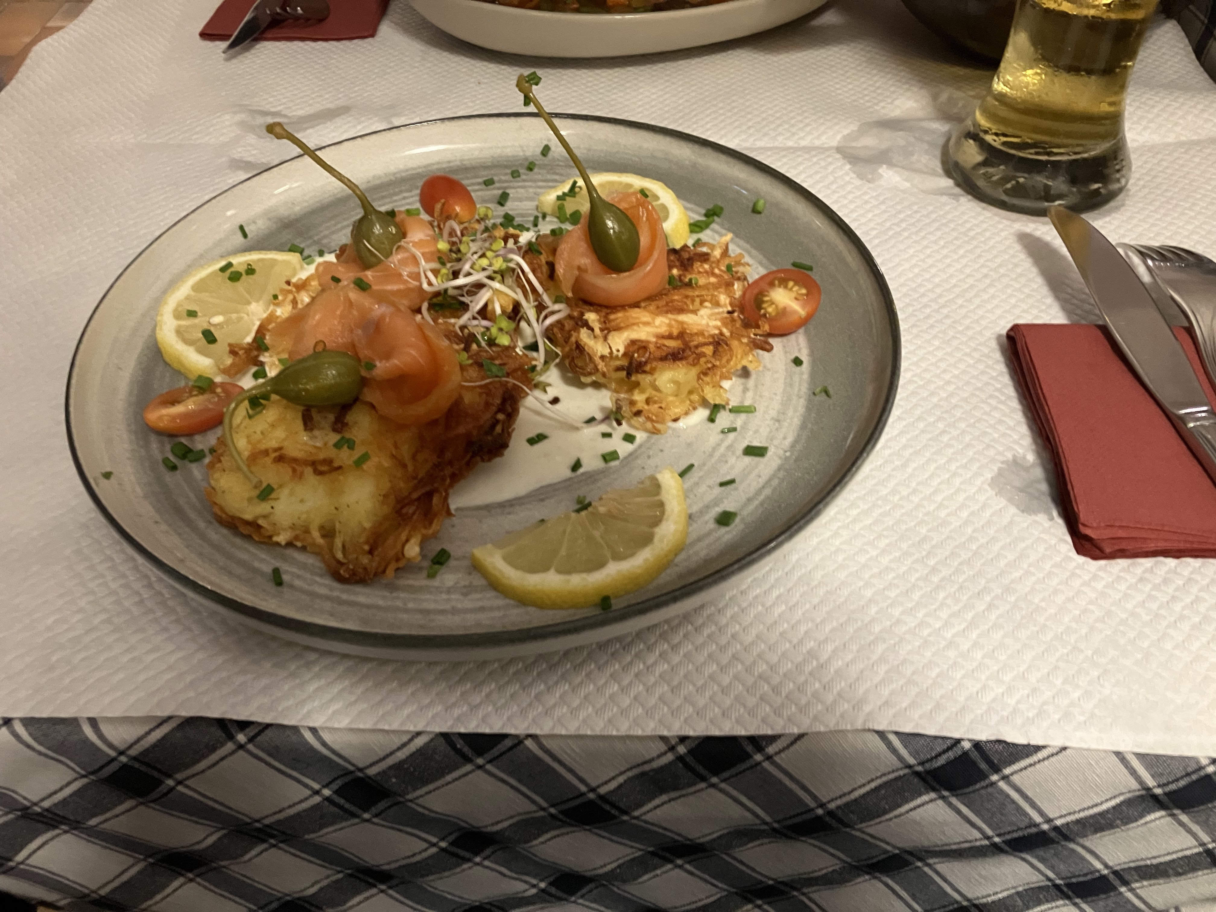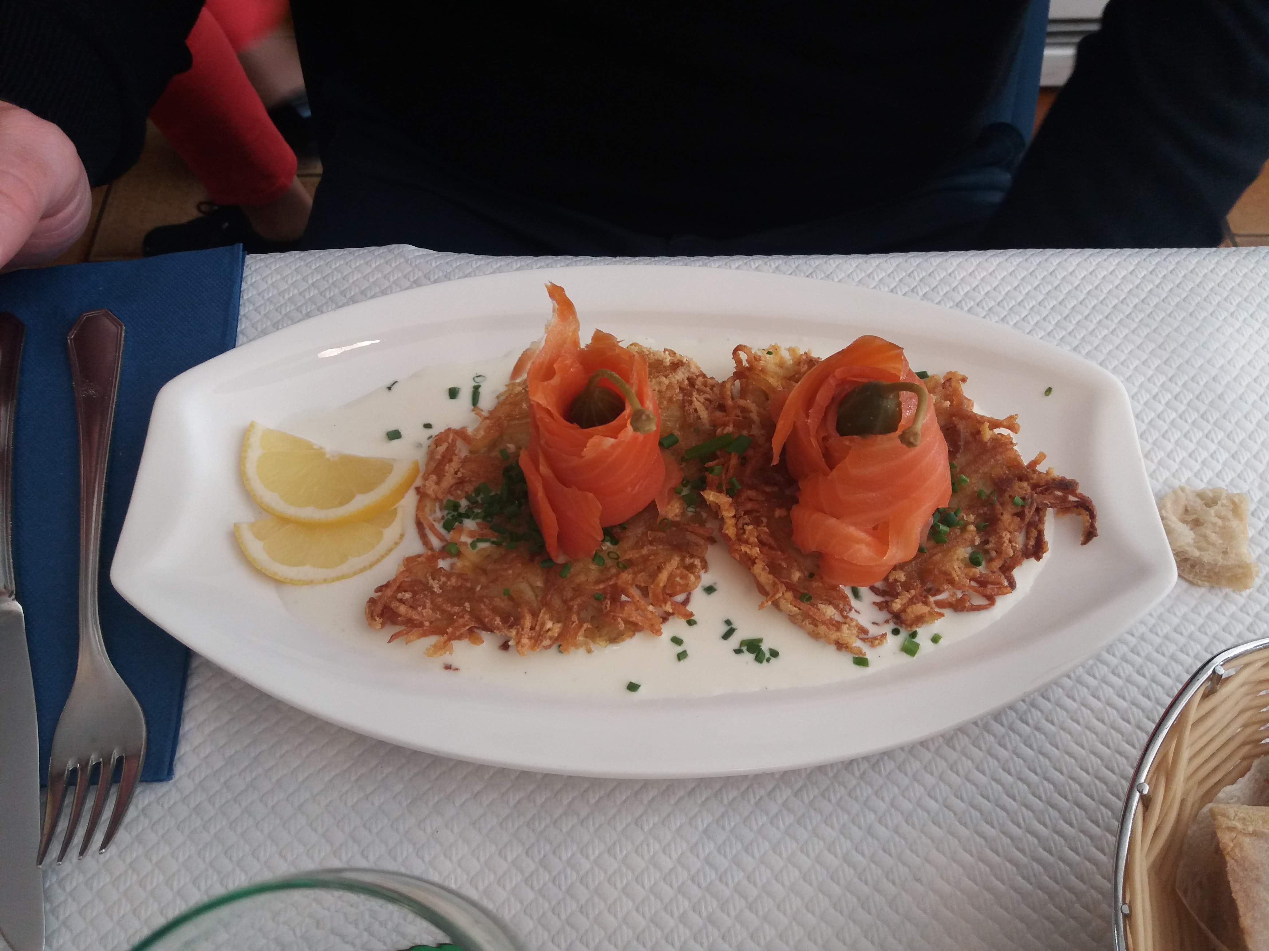 Restaurant gastronomique de spécialité locales. J ai pris un fleshneke pour tester c est très bon. Ils fument leur saumon sur place ca vaut le coup.