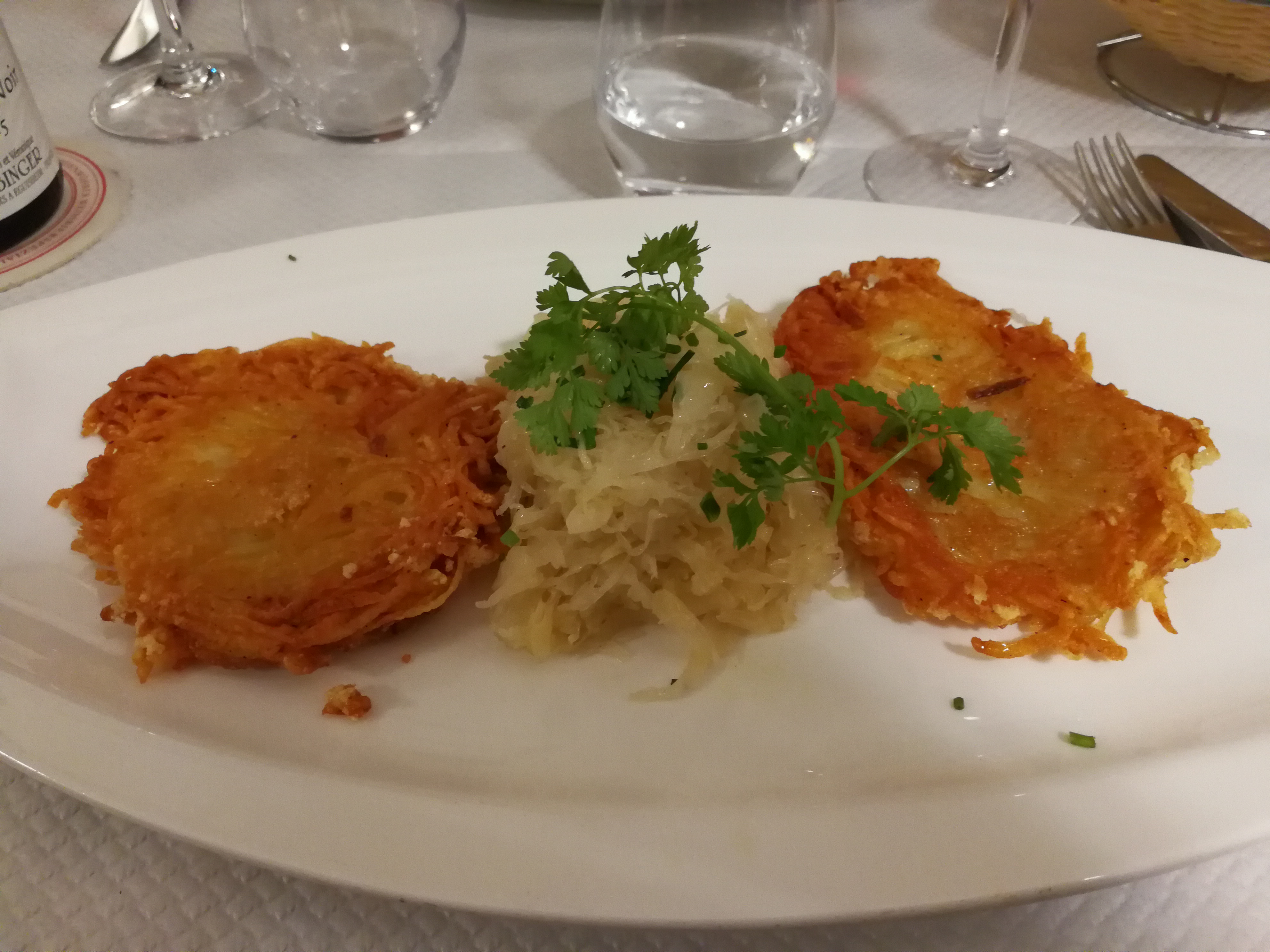 Nous recommandons vivement ce restaurant pour sa très bonne cuisine servie dans un cadre agréable avec un personnel souriant et aux petits soins. Les Grumbeerekerle sont délicieux, accompagnés d'une sauce raifort et de truite saumonée, avec, en prime, des fleurs de câpres ! Les quenelles de foie maison avec oignons frits sur lit de choucroute sont présentées avec des pommes de terre sautées et sont savoureuses ! Mettez vos papilles gustatives en exergue et délectez-vous ! Martine & Aloyse de Haguenau