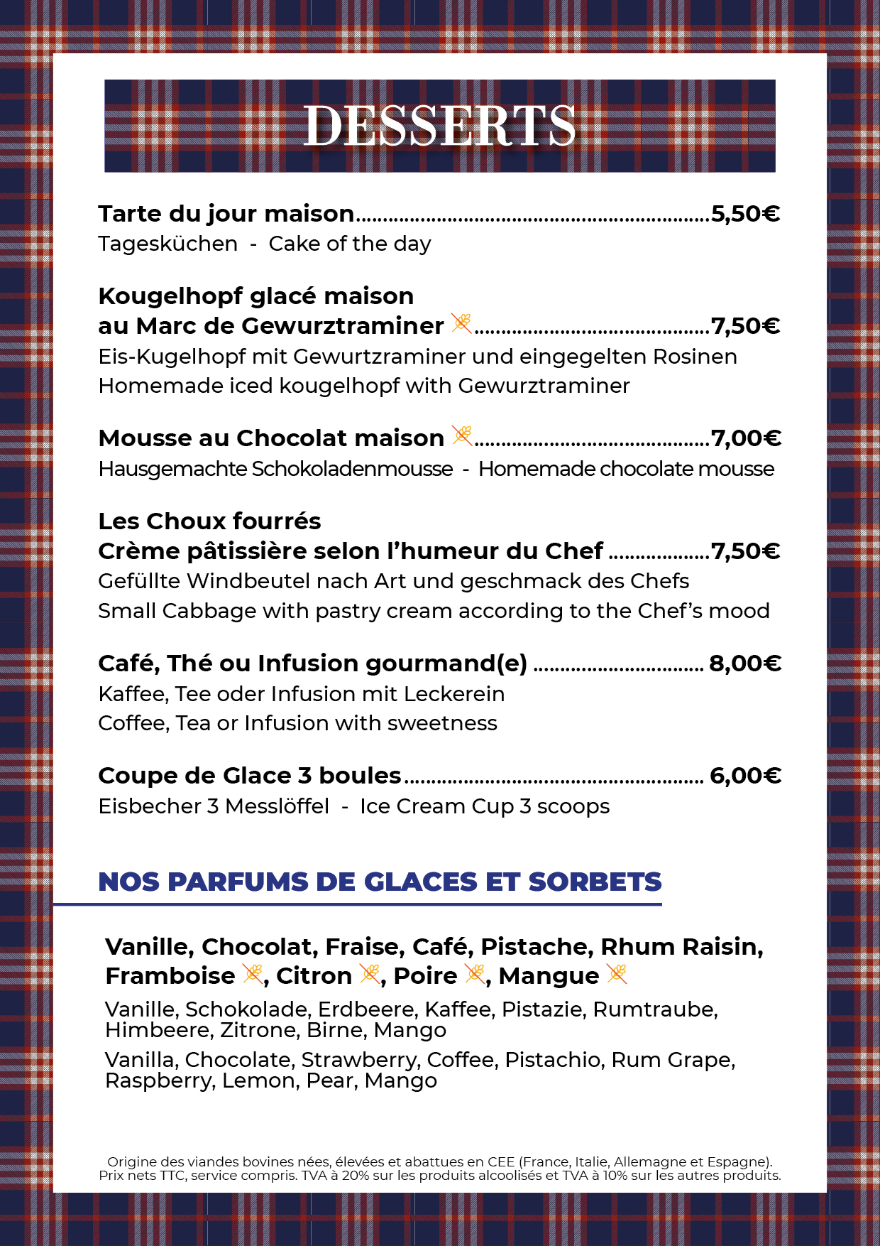 Typique Alsacien, cuisine traditionnelle avec des produits frais et accueil chaleureux et souriant Je recommande