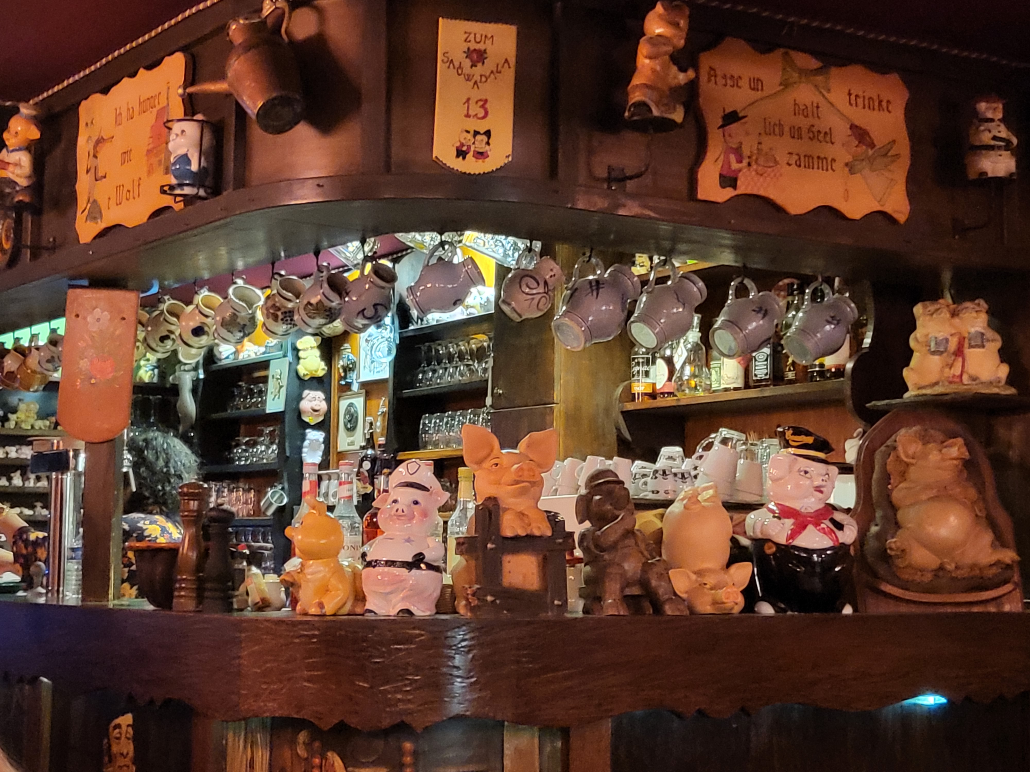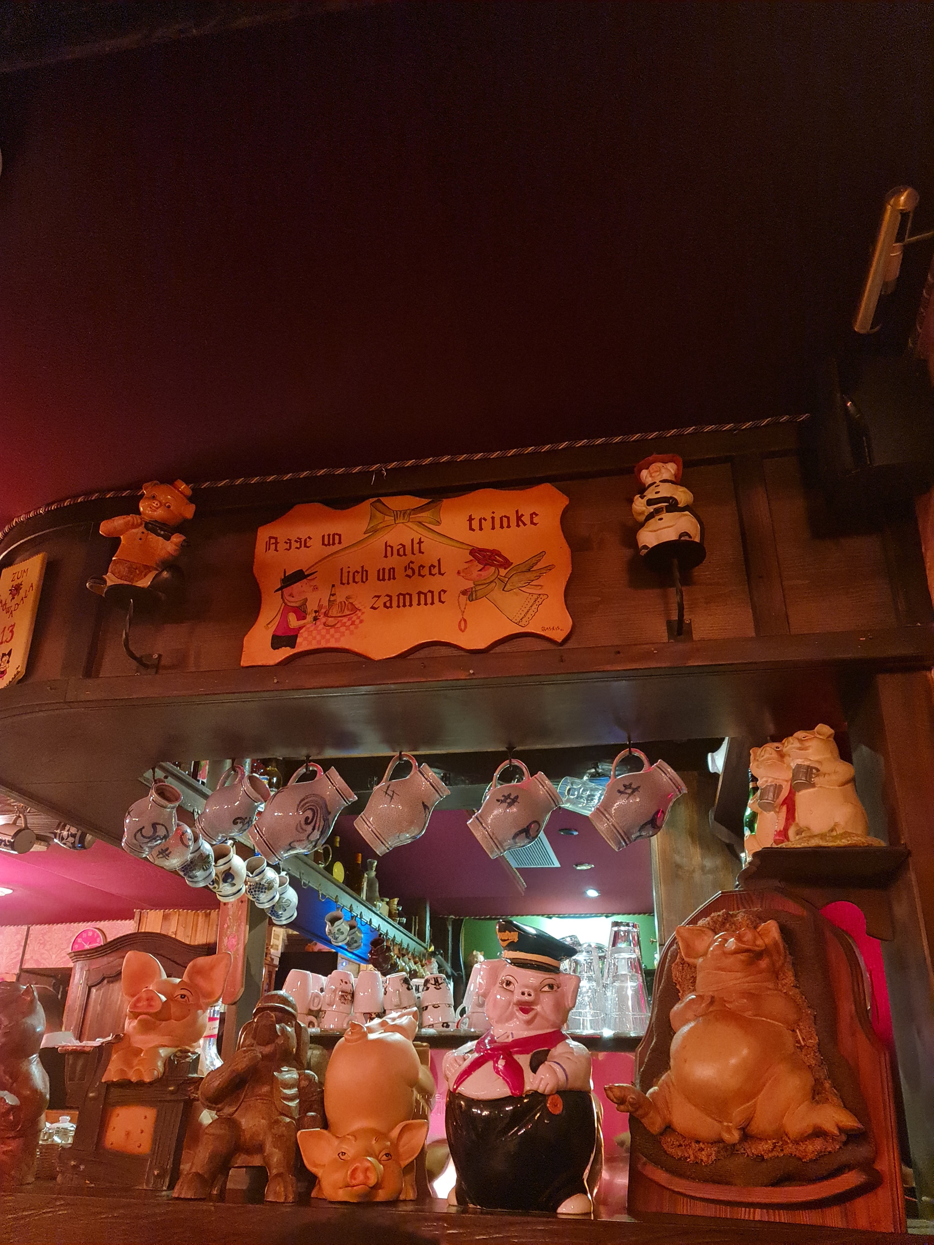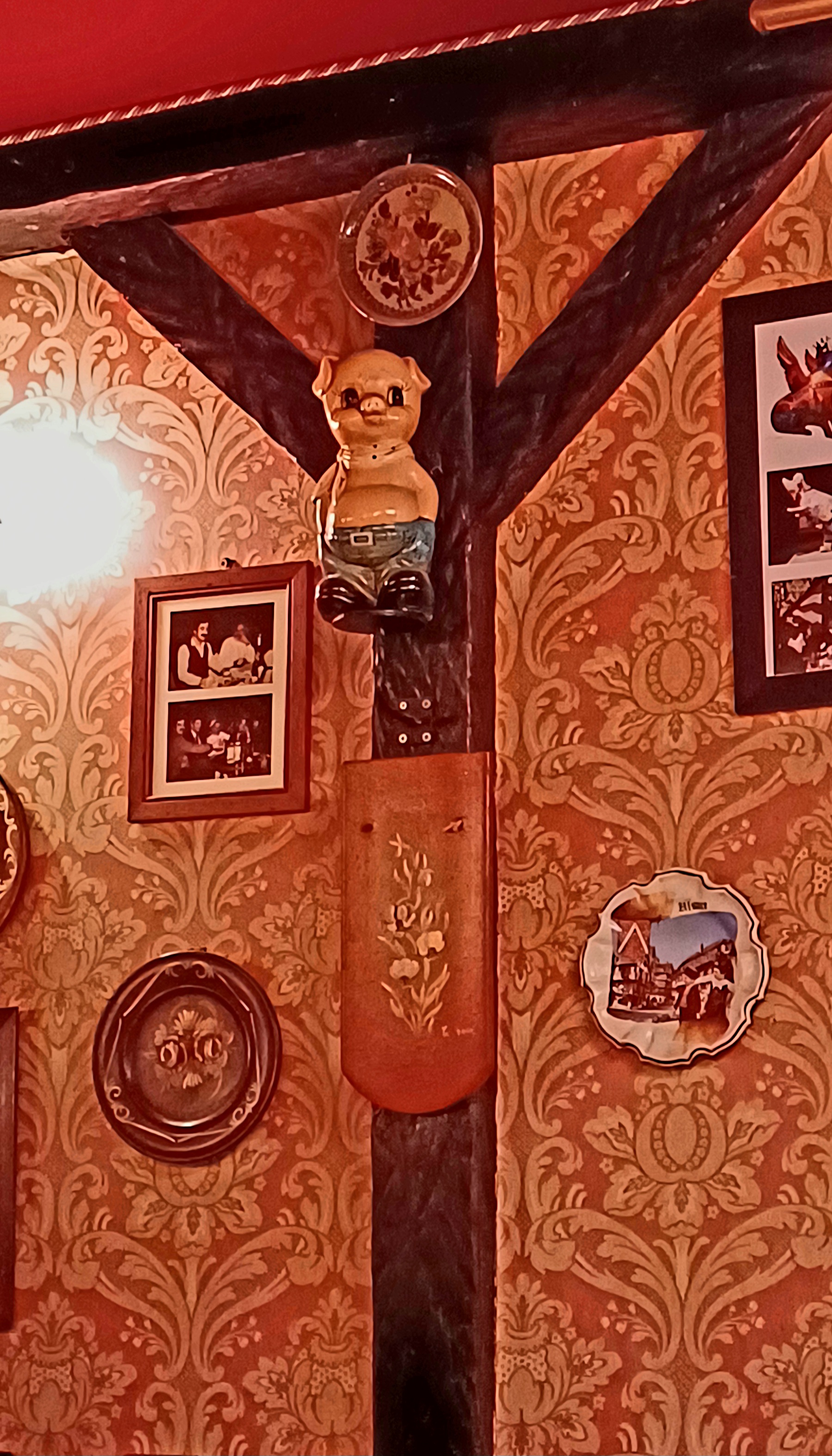 Taverne authentique décorée de petits cochons et de chopes, nous sommes accueillis par une serveuse en tenue d' alsacienne. Tout le personnel est au petit soin du client. Cuisine typique Alsacienne, très généreuse et excellente. Pensez à réserver pour être sûr. Restaurant à faire absolument