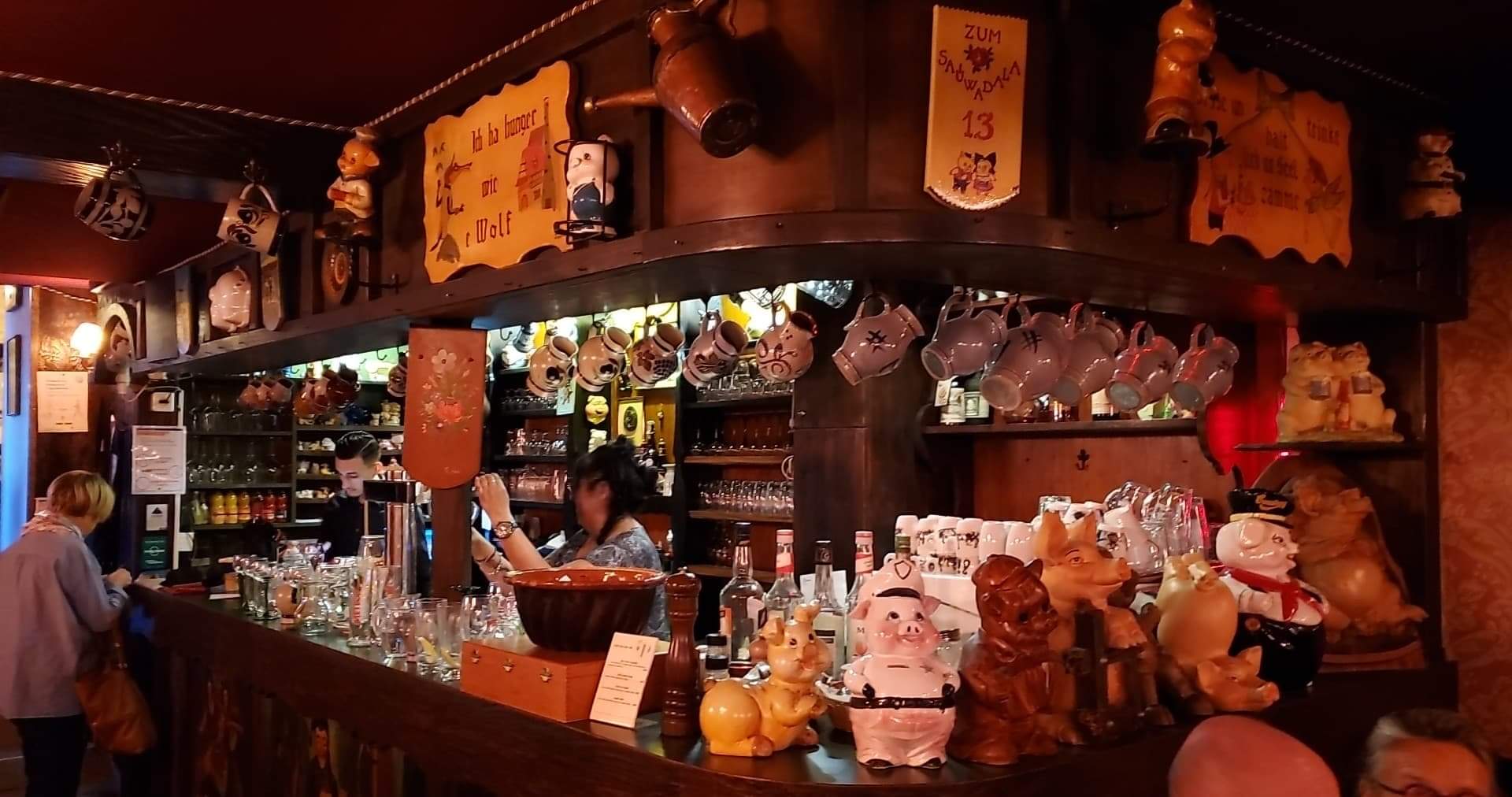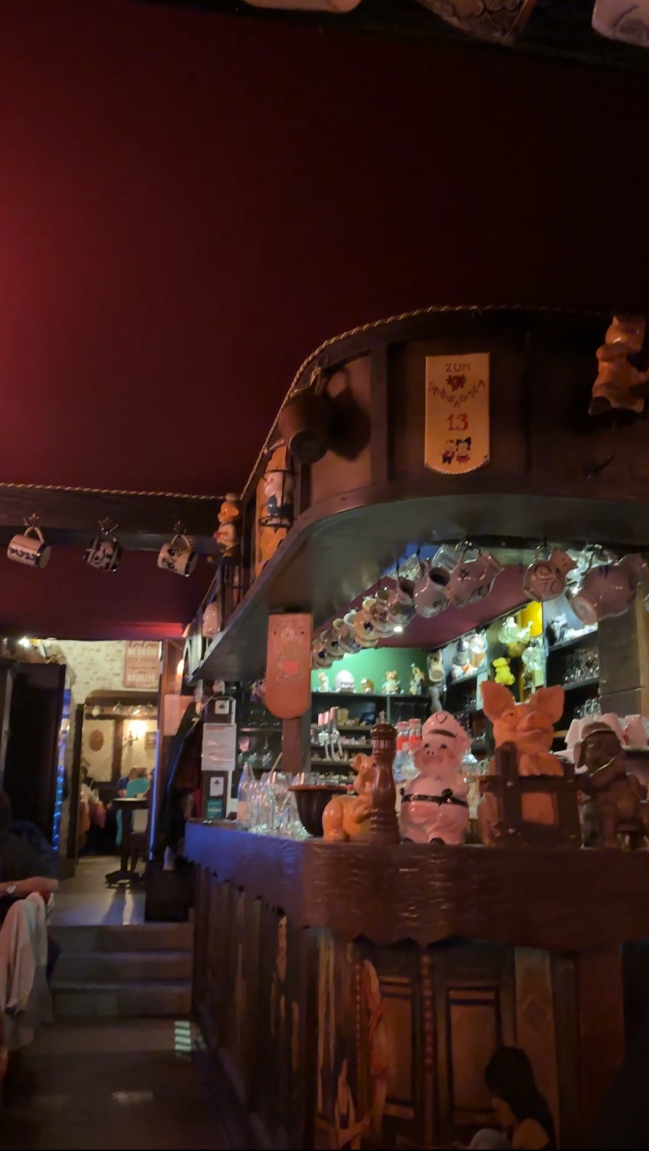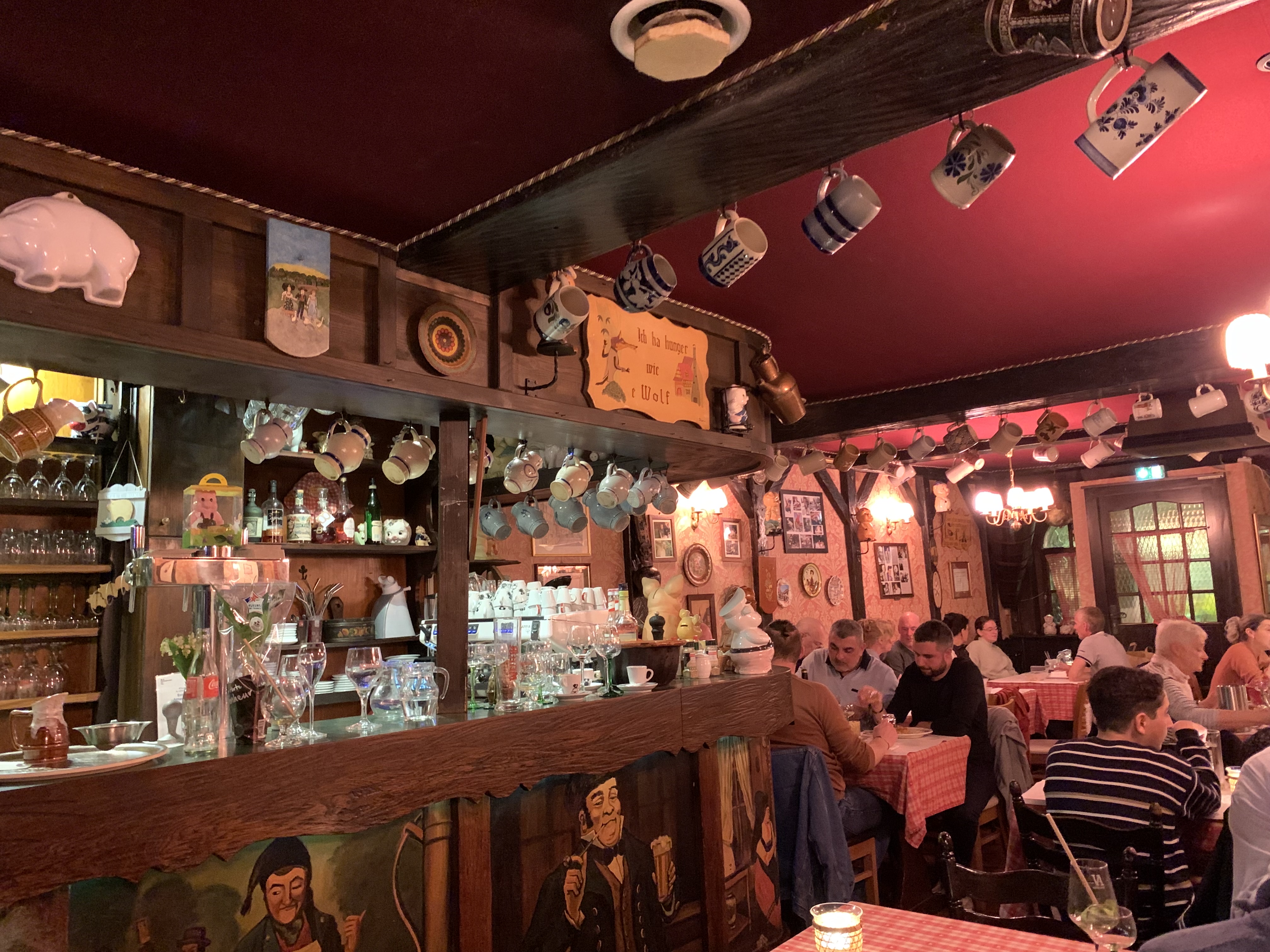 Taverne authentique décorée de petits cochons et de chopes, nous sommes accueillis par une serveuse en tenue d' alsacienne. Tout le personnel est au petit soin du client. Cuisine typique Alsacienne, très généreuse et excellente. Pensez à réserver pour être sûr. Restaurant à faire absolument