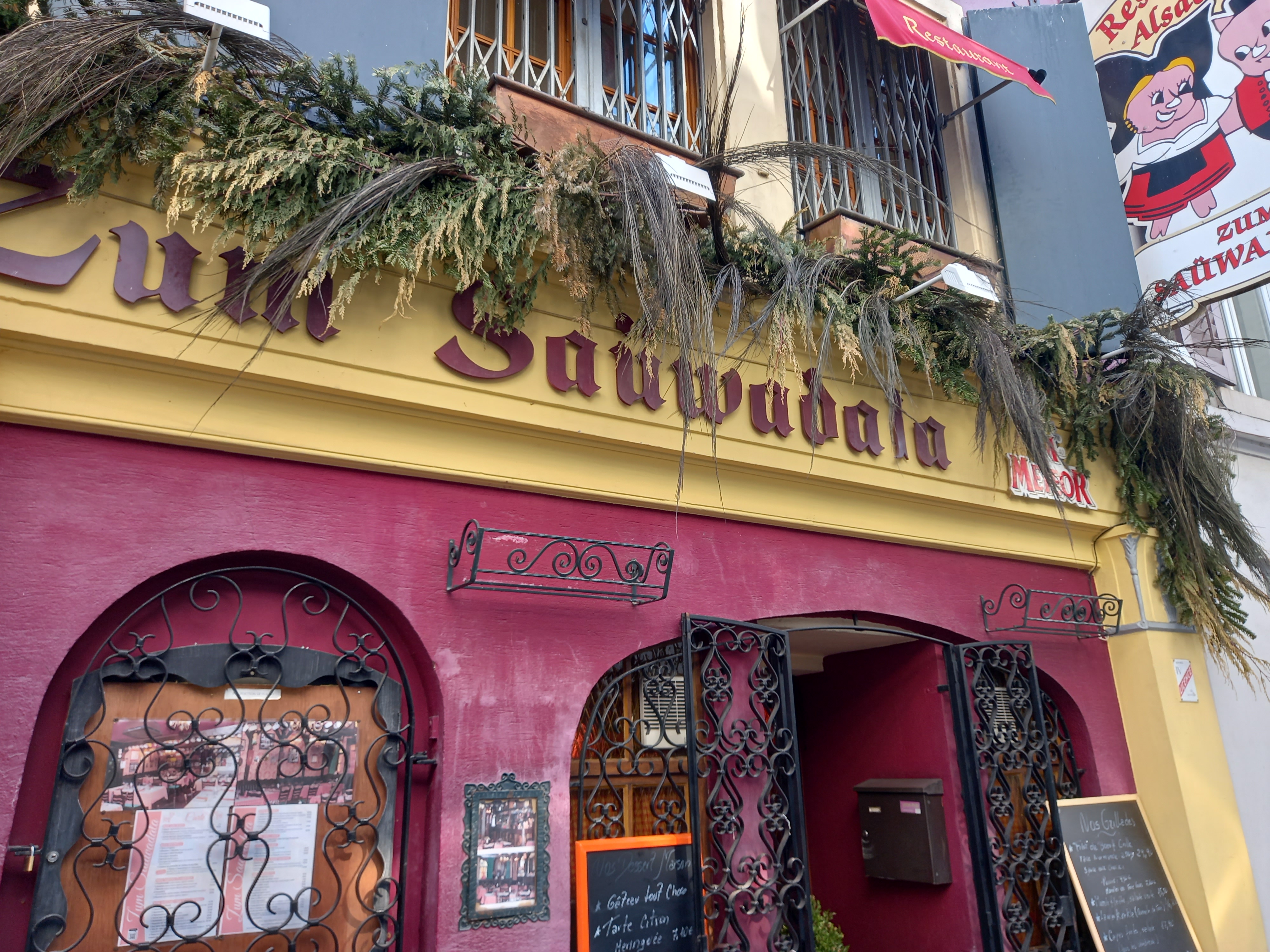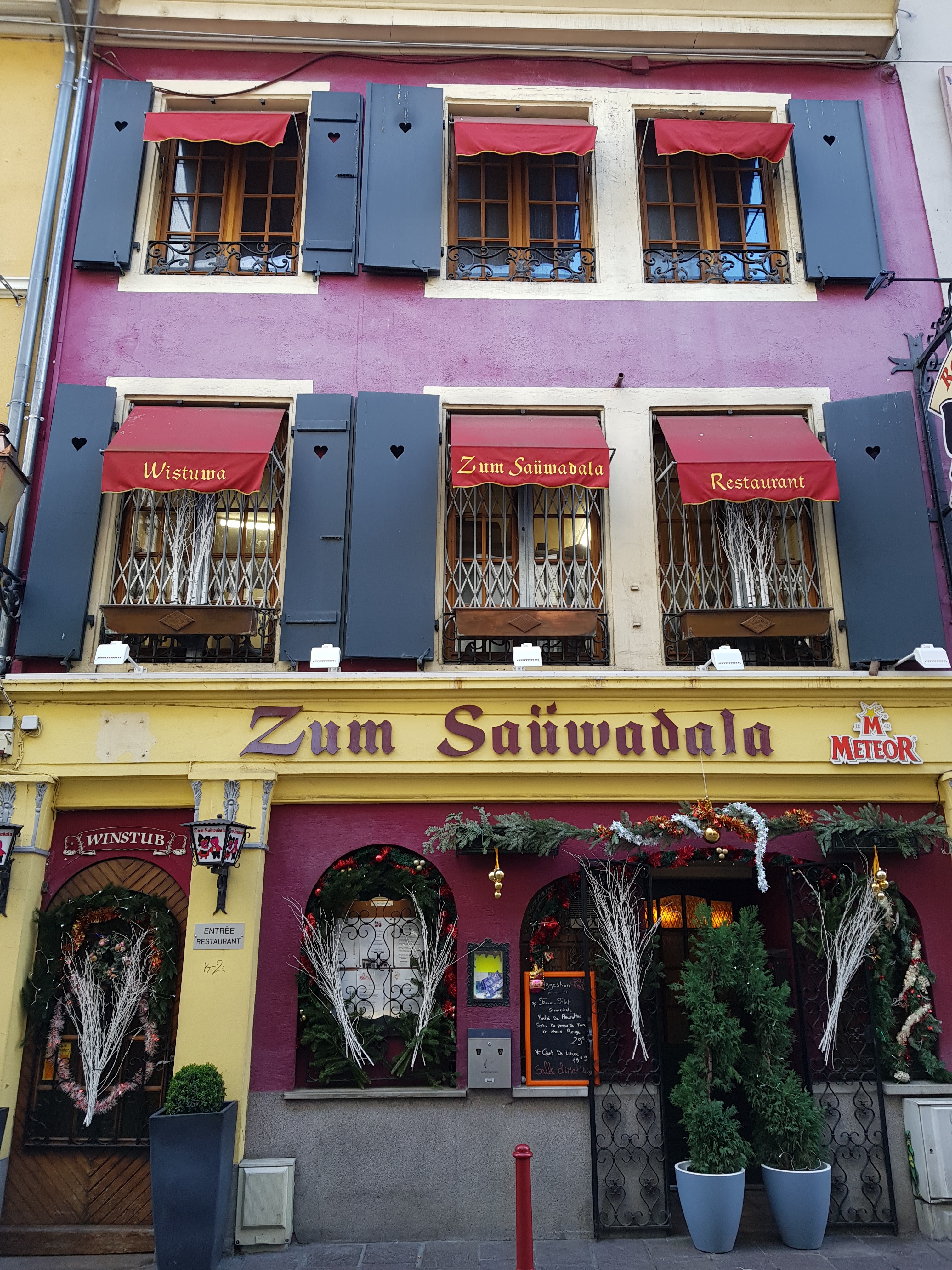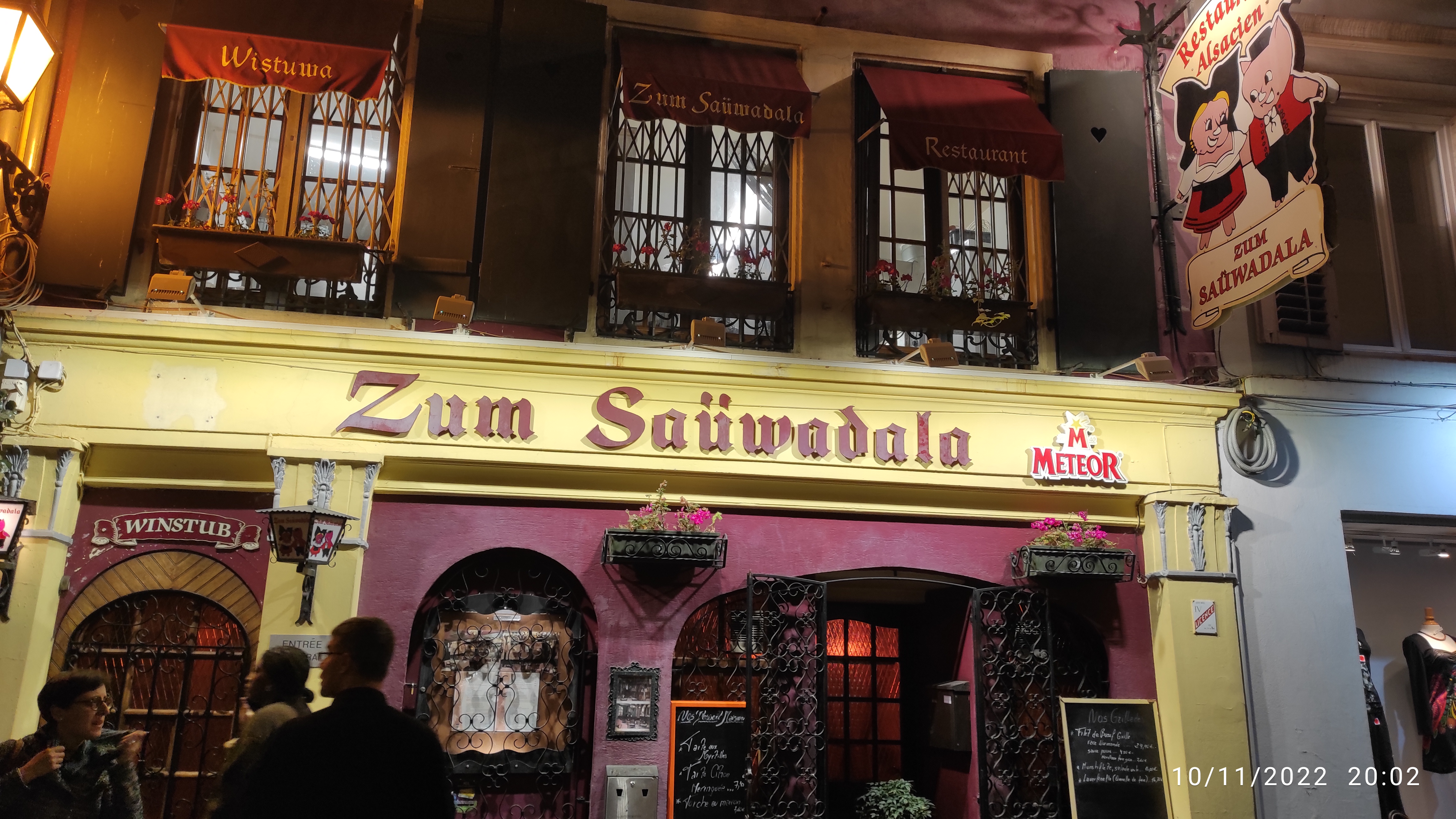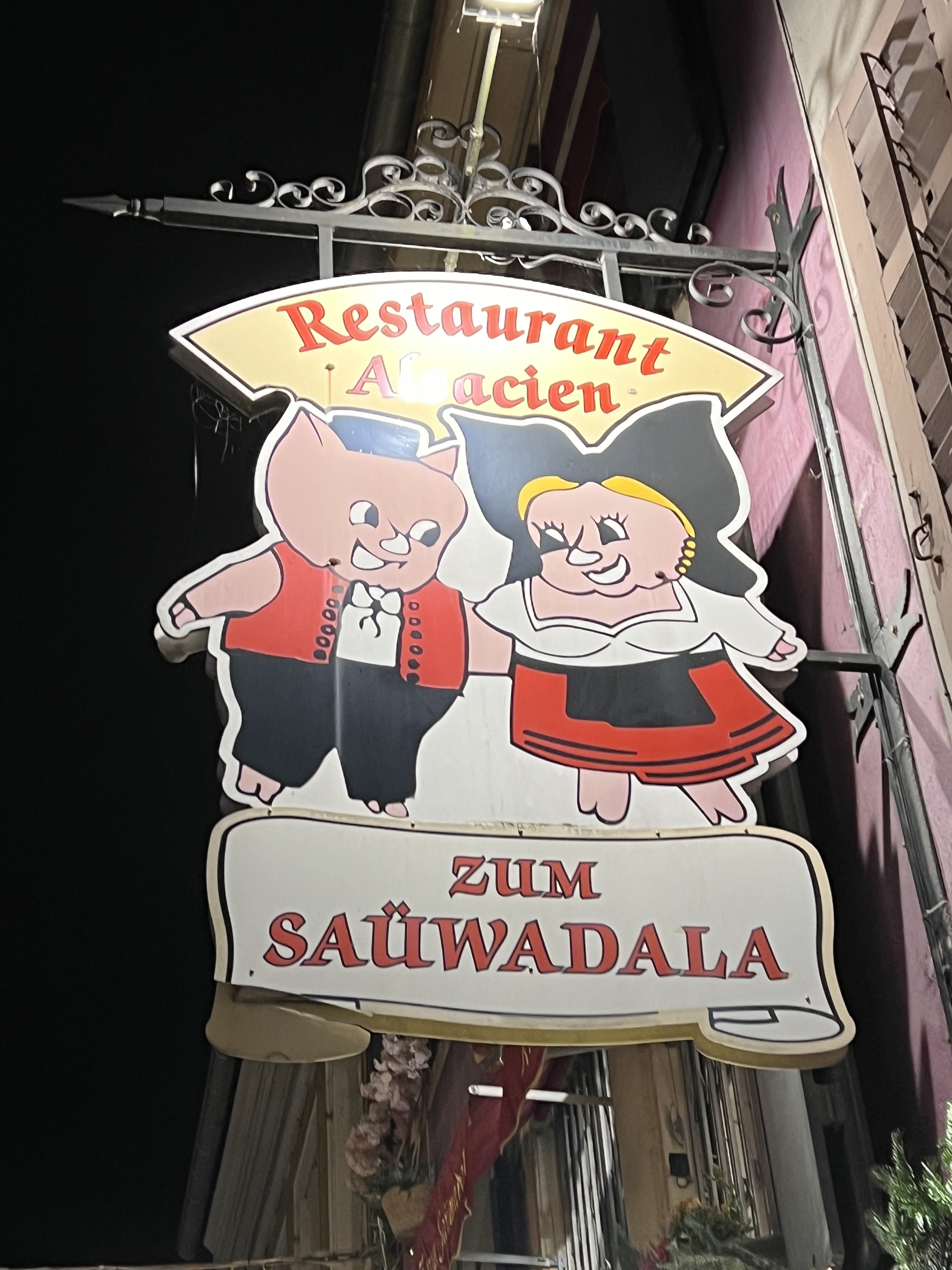 Mais quel plaisir à venir au restaurant Zum sauwadala pour y découvrir l'ambiance chaleureuse de notre belle région ! Une vraie stuwa, avec ses babioles alsaciennes, les poutres apparentes, les plafonds bas et le cadre typiquement alsacien ! Côté cuisine, rien à redire, la carte est à la hauteur de sa réputation : alsacienne, copieuse et délicieusement chaleureuse ! Quels que que soient les plats commandés (choucroute traditionnelle ou aux 3 poissons, cuisses de grenouille, fleischnacka, surlawerla ou autres spécialités alsaciennes), les assiettes sont belles, généreuses et savoureuses. C'est évident, les produits travaillés sont parfaitement frais ! Le personnel est sympathique, serviable et efficace. À la petite queue de cochon est une valeur sûre dans le paysage des restaurants locaux ! Une bonne adresse à recommander !