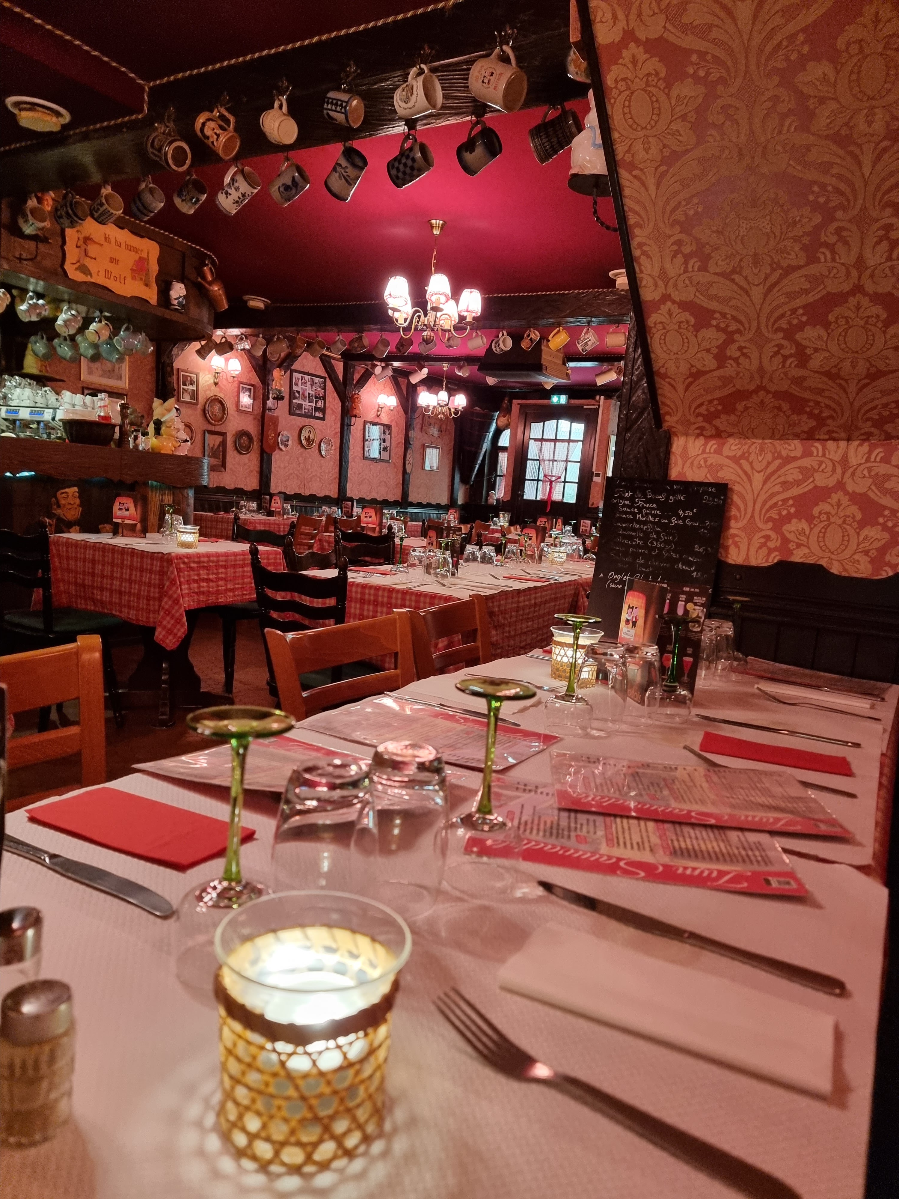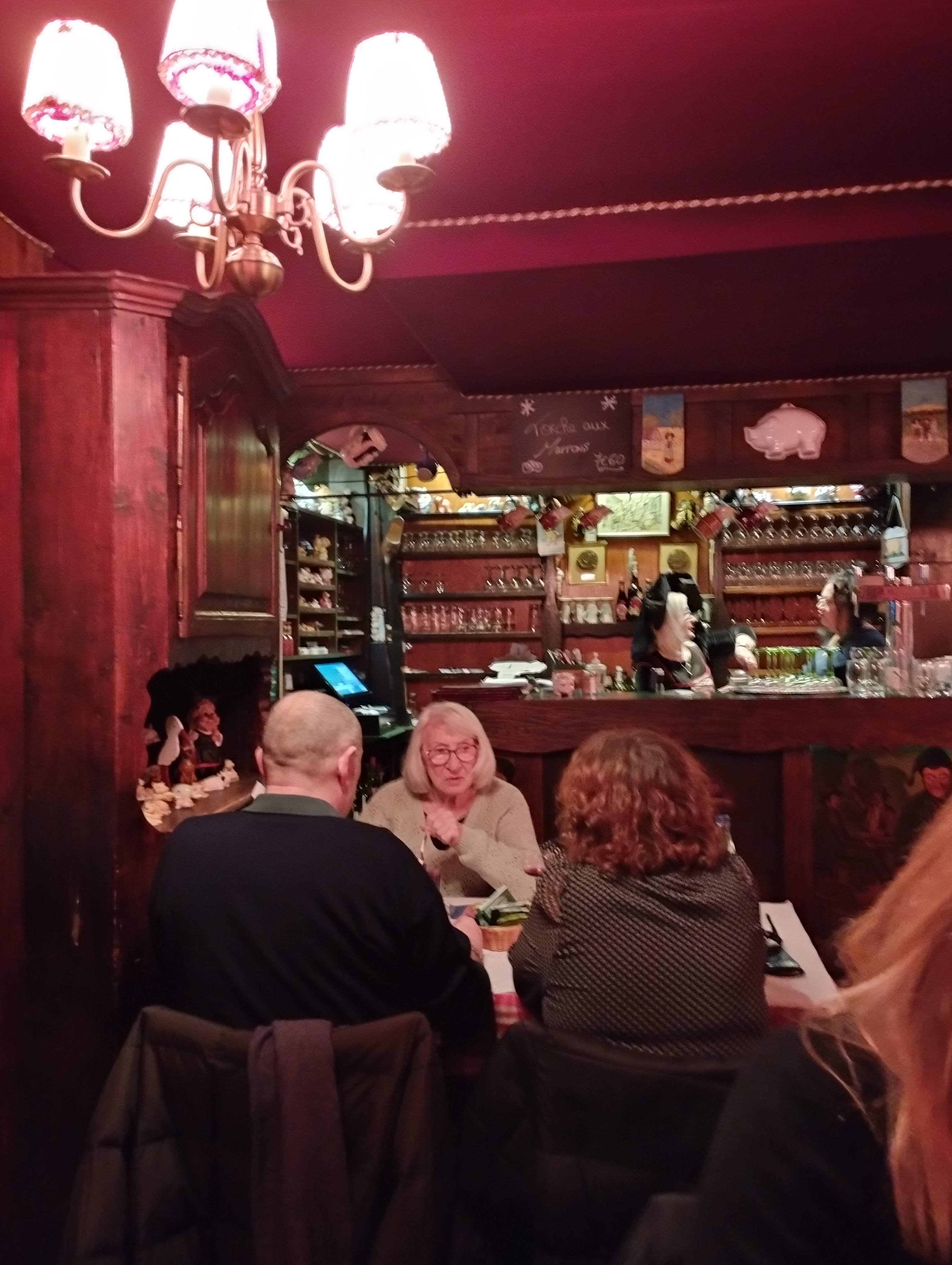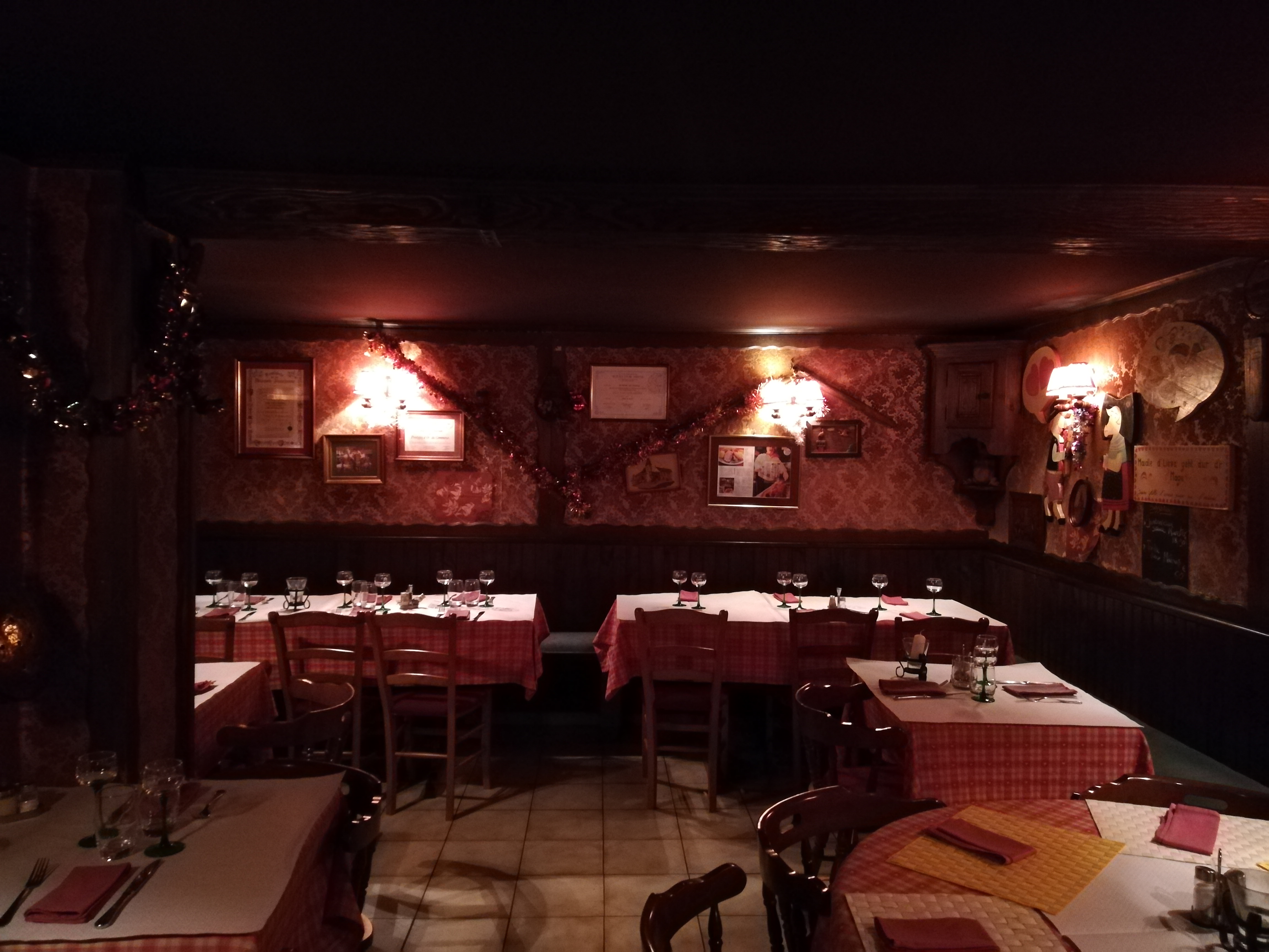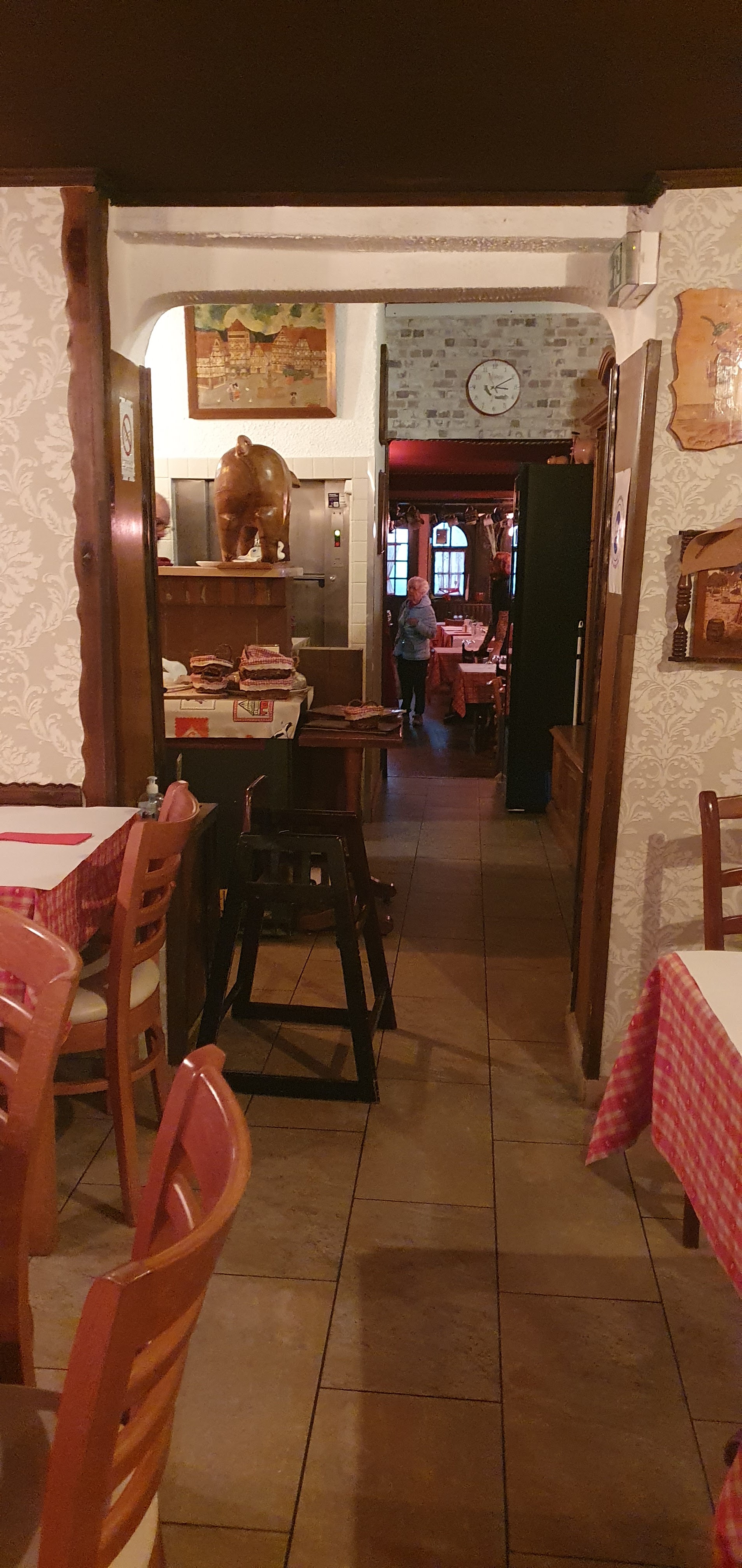 Bonjour, nous avons mangés un samedi soir pendant le marché de Noël, 2 services proposés car énormément de monde. Restaurant beau et belle décoration 🐷, un peu vieillot avec le temps... Éclairage quasi nul, on ne voit pas grand chose, bruyant, petit espace entre les tables. Par contre personnels au top, gentillesse, serviable, à l'écoute ,rigolo. Et repas top du top. Merci pour l'accueil !!!