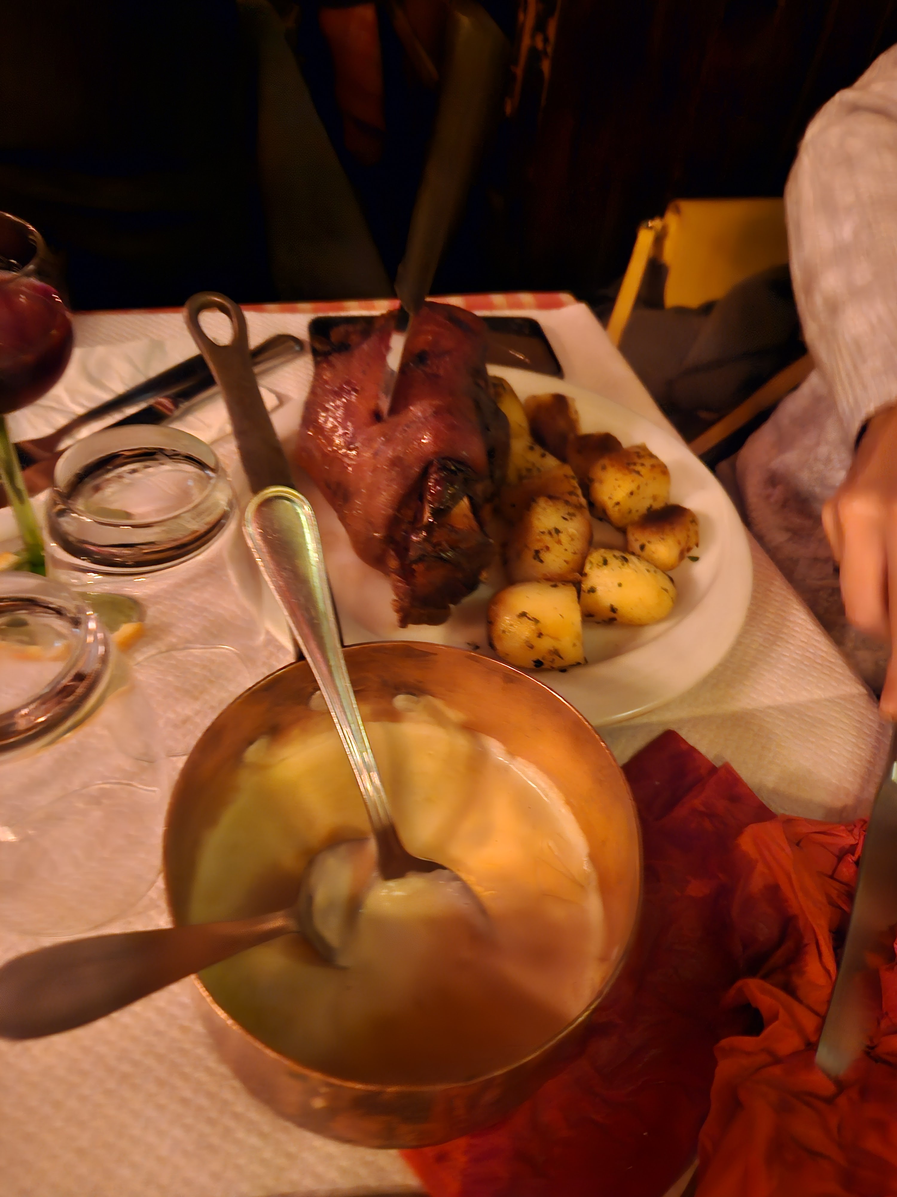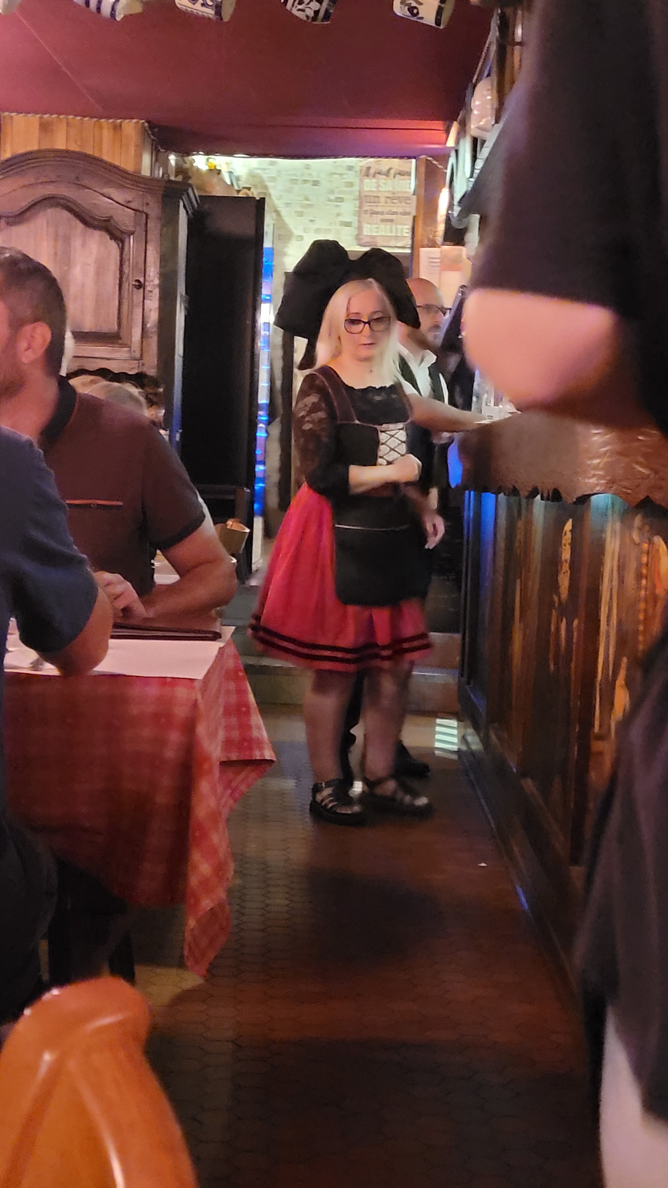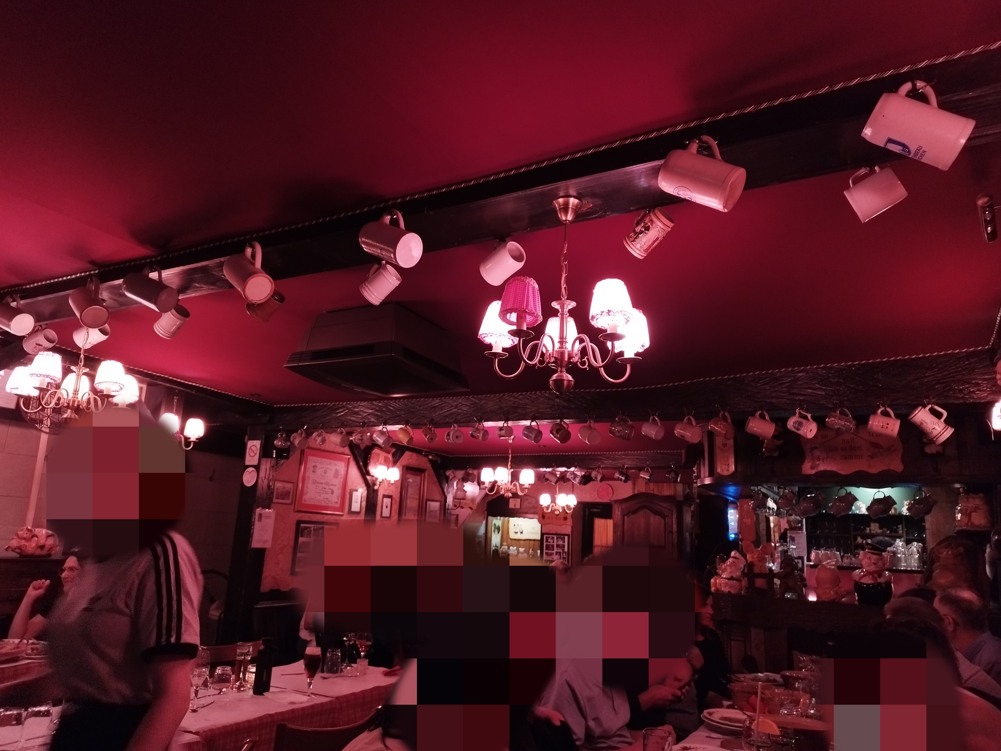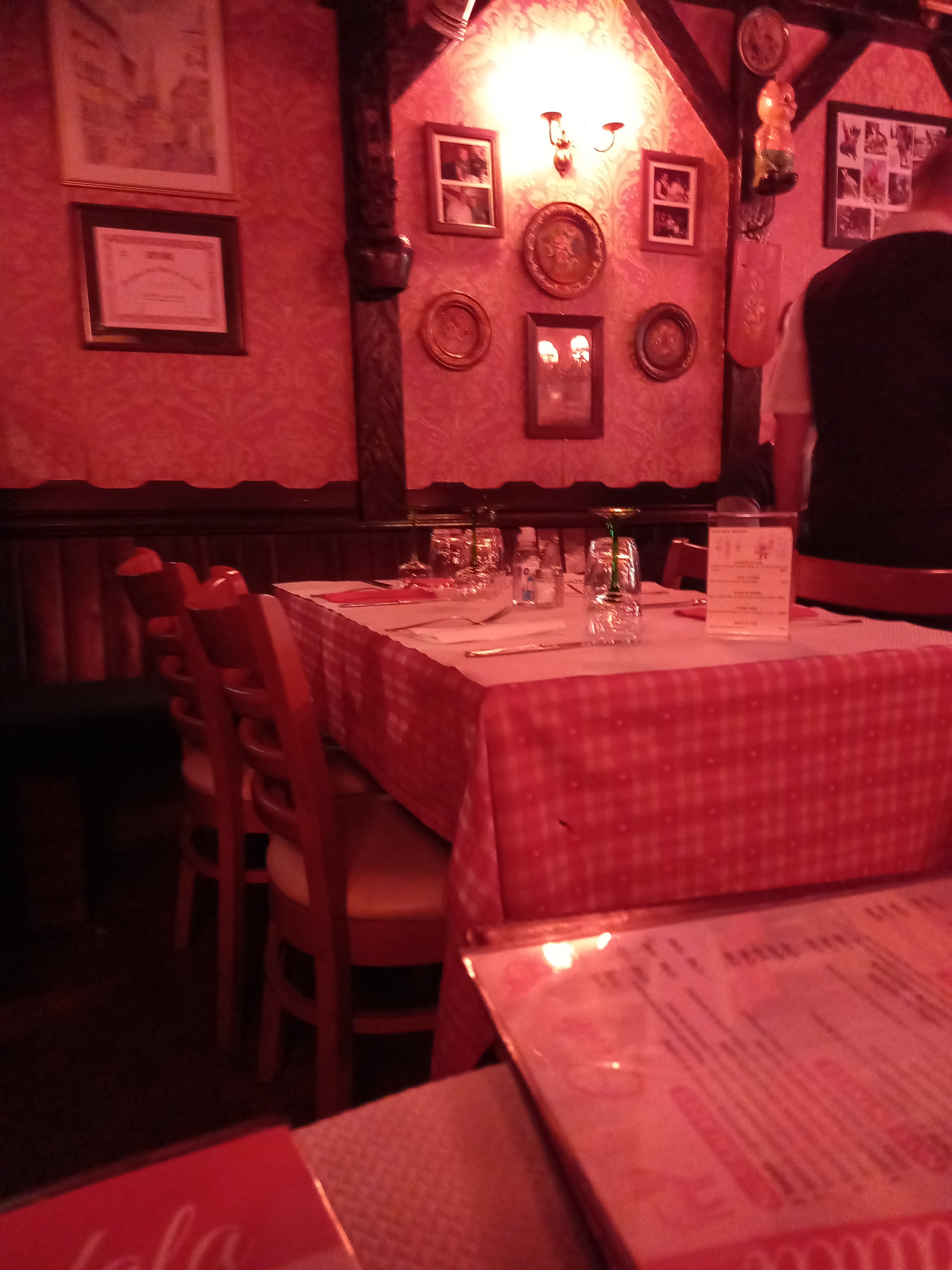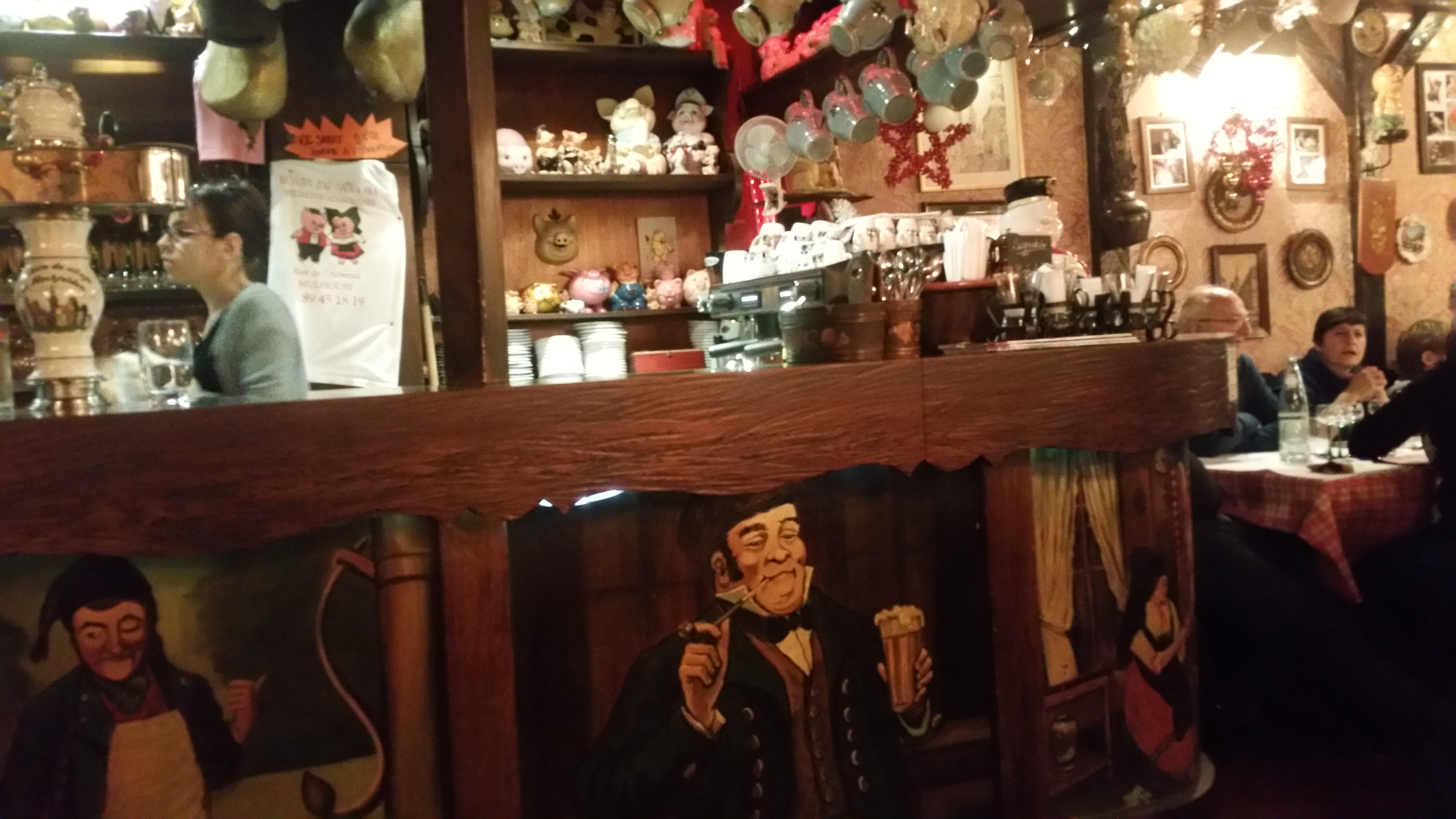 Bonjour, nous avons mangés un samedi soir pendant le marché de Noël, 2 services proposés car énormément de monde. Restaurant beau et belle décoration 🐷, un peu vieillot avec le temps... Éclairage quasi nul, on ne voit pas grand chose, bruyant, petit espace entre les tables. Par contre personnels au top, gentillesse, serviable, à l'écoute ,rigolo. Et repas top du top. Merci pour l'accueil !!!