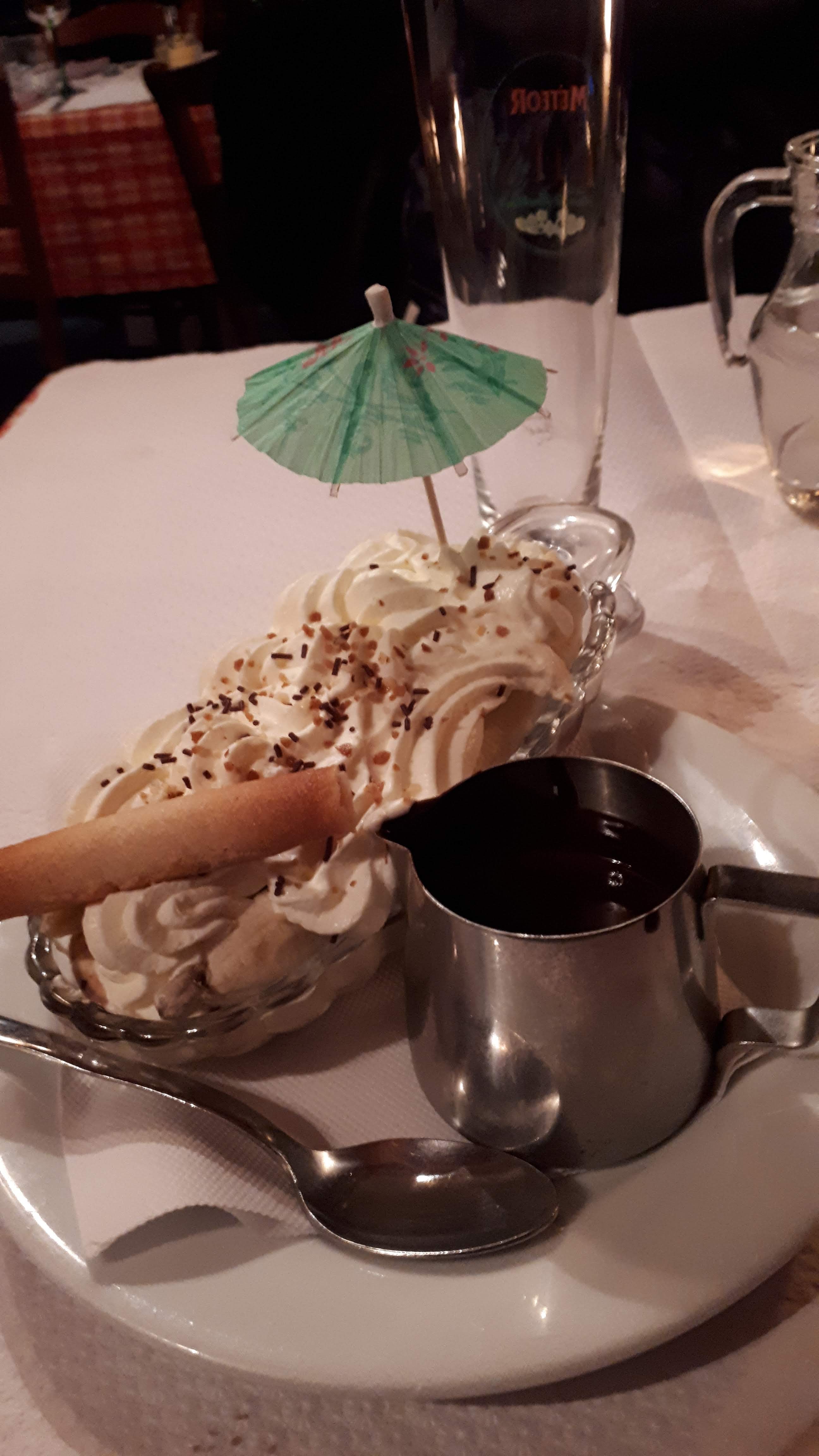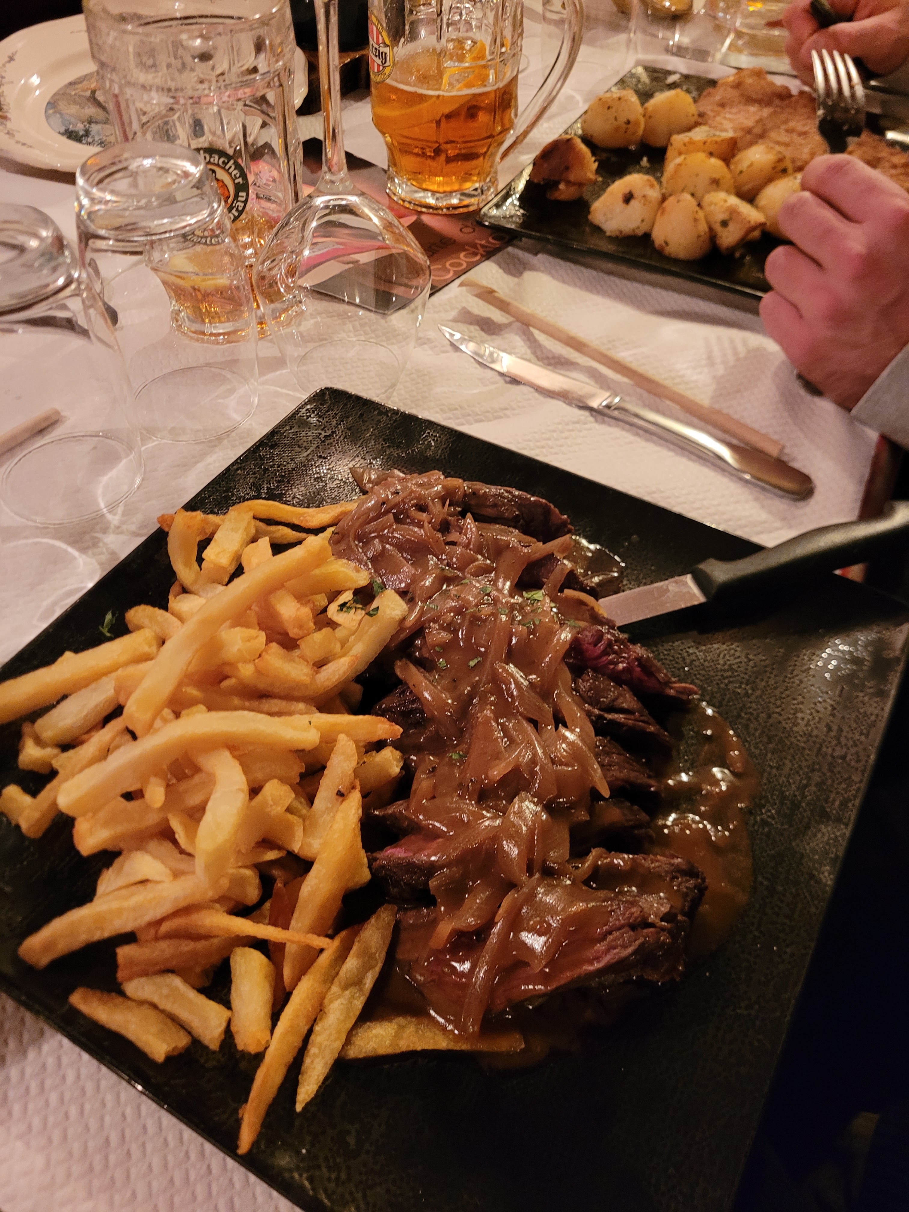 Nous y étions en famille . Bon accueil,bonne ambiance, service et serveur nickel tous dans le bonne humeur. Commencé avec tarte flambée pour l'apéro et Pina colada,kir, mojito amer bière ricard pour l'accompagnement .Que ce soit : Cordon bleu ,jarret , entrecôte bio, fleischnaka ,Chacun a aimé son plat .Dessert idem Irish cofee idem bon . A faire ou refaire . Comme nous pensez a réserver