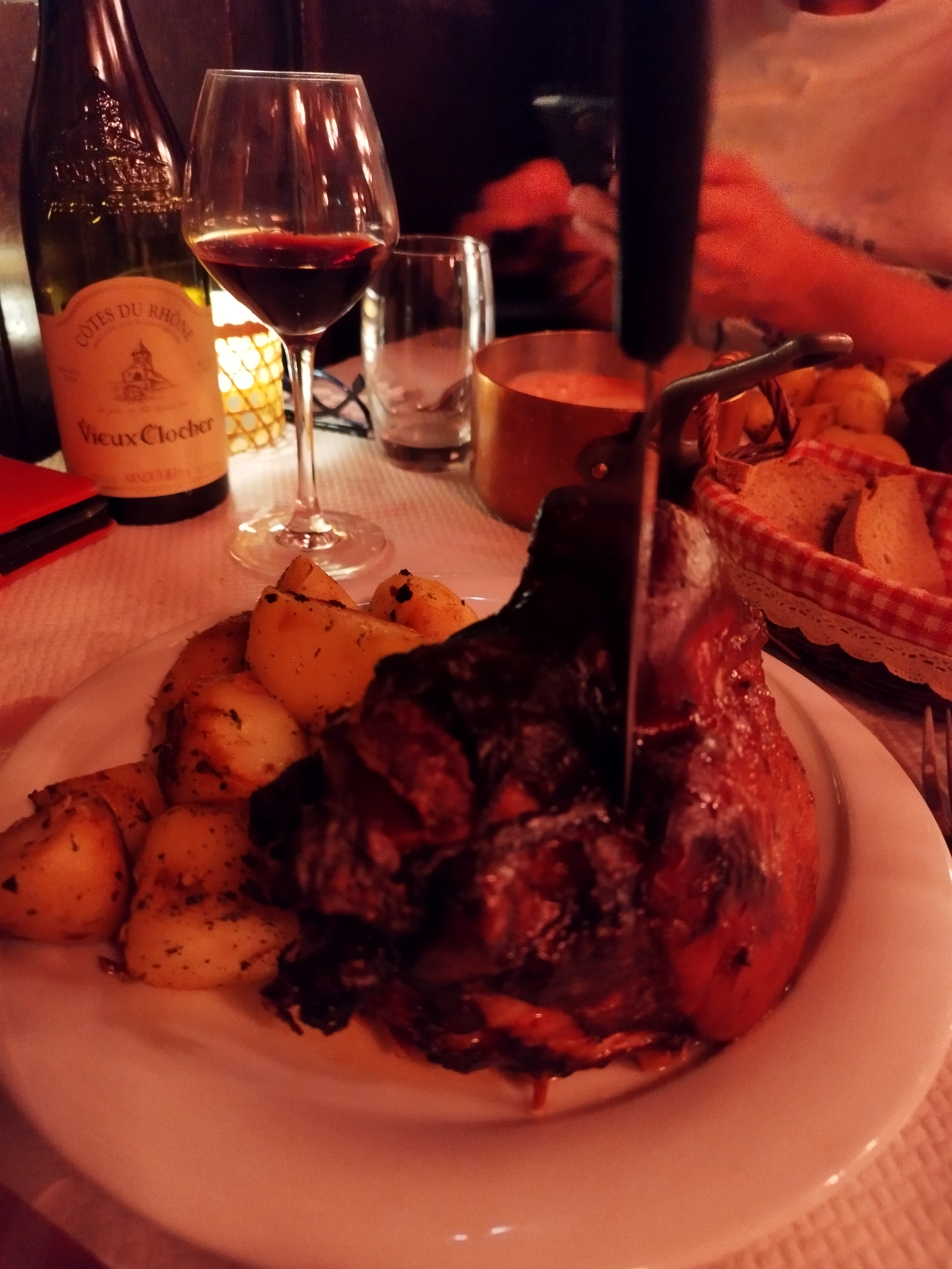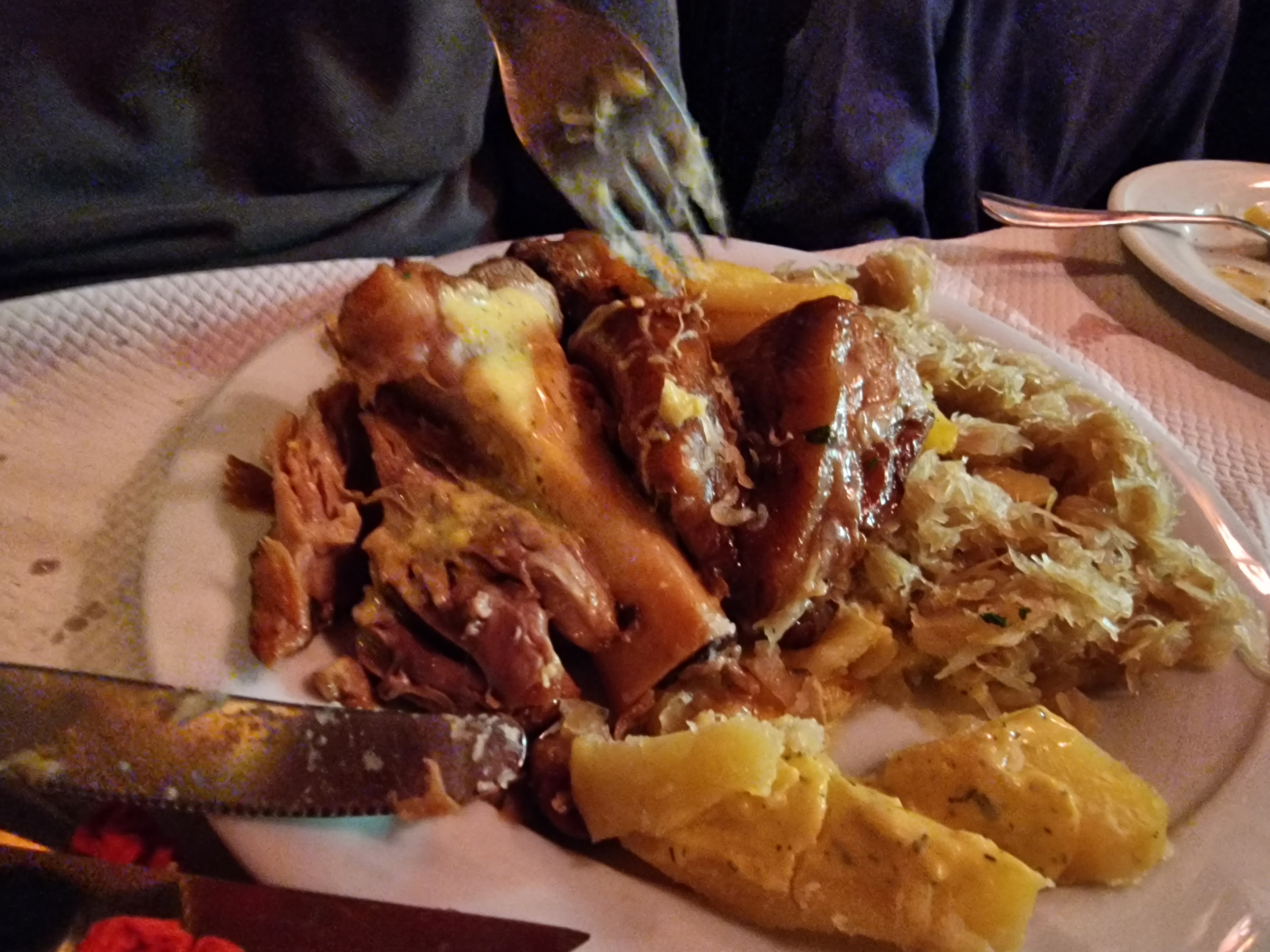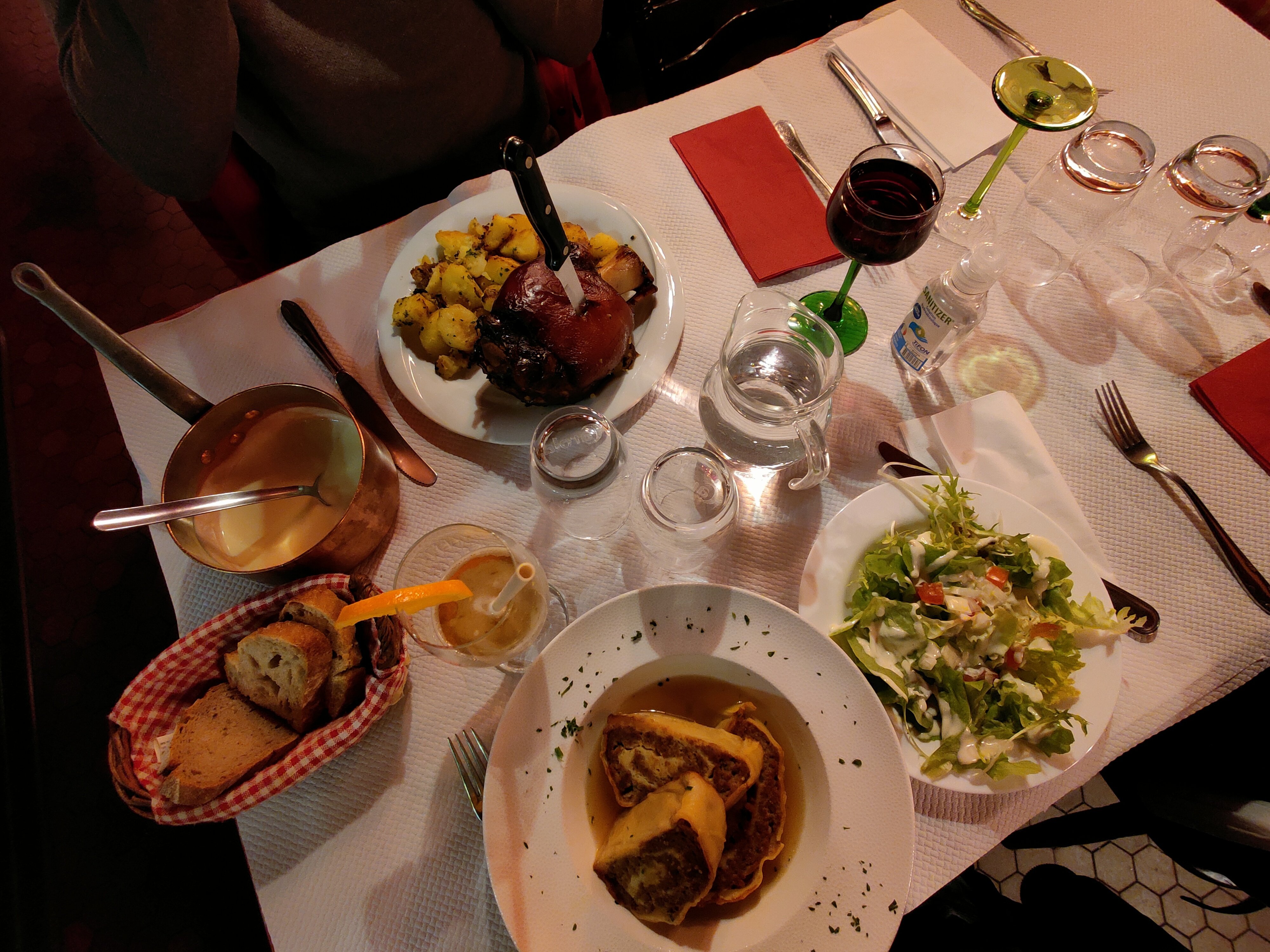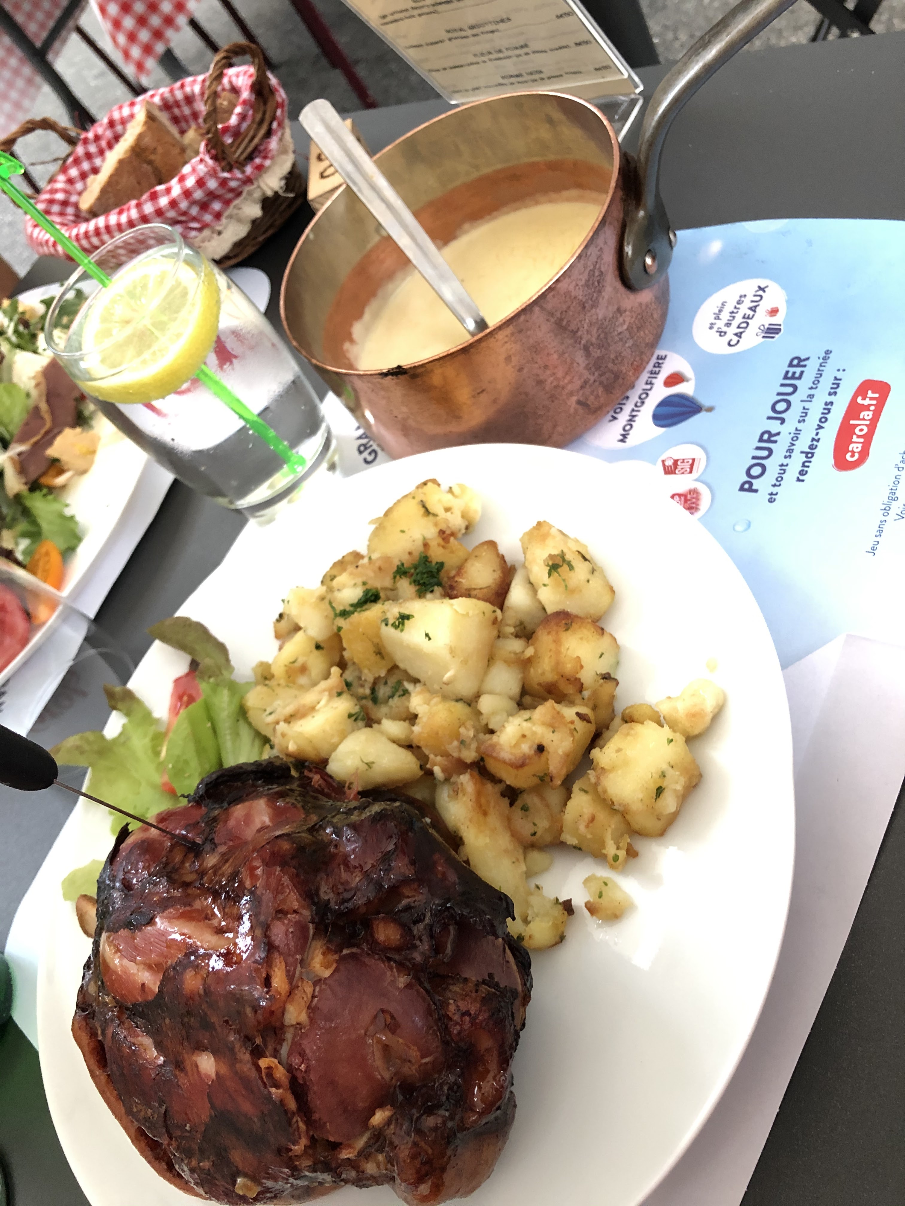 C est la premiere fois que j ai mange un jarret de porc en France. Et c etait super bon. Le jarret etait super tendre. La salade de pommes de terre est tres bonne aussi. Bonne qualite prix pour ce plat!