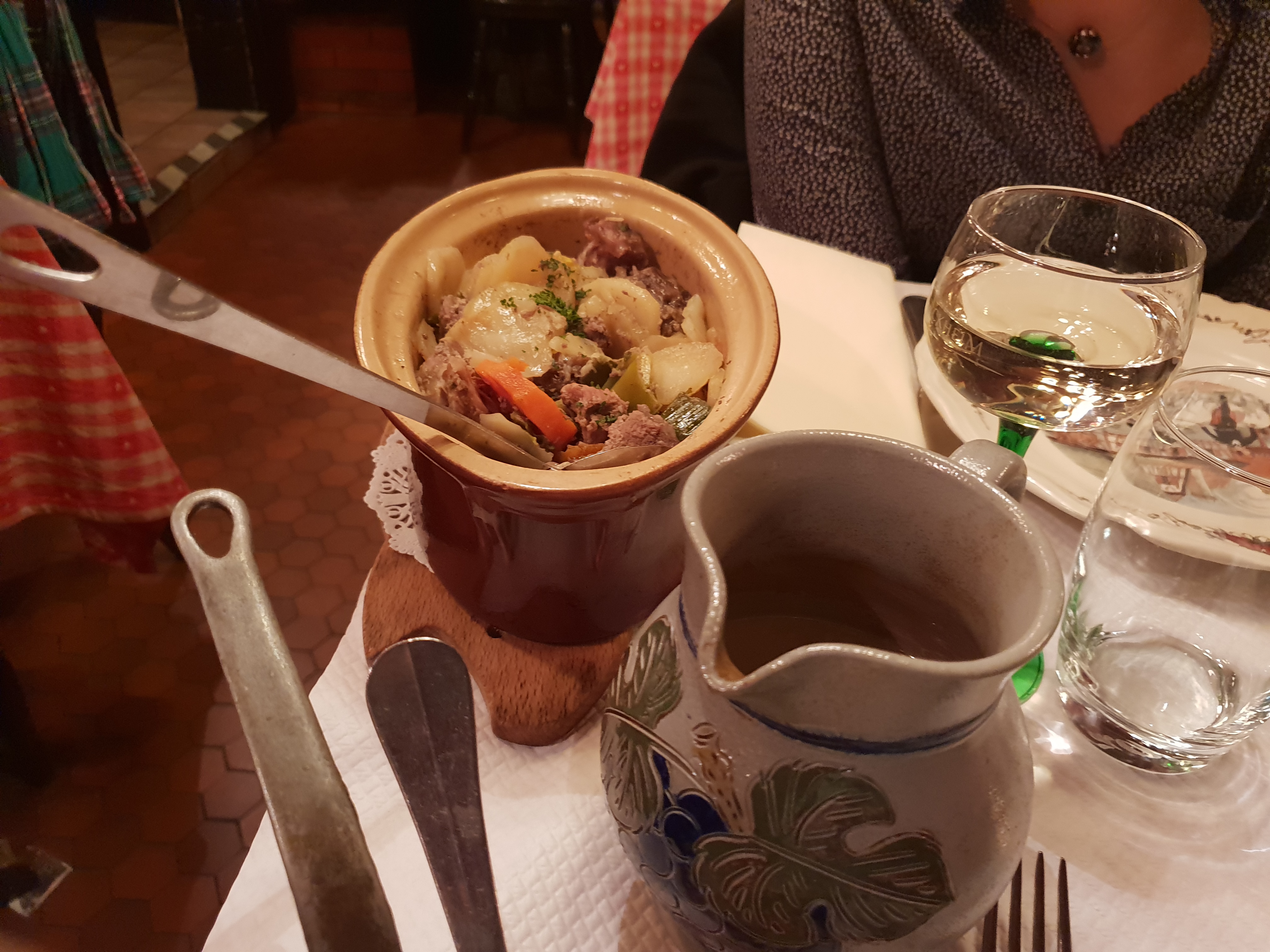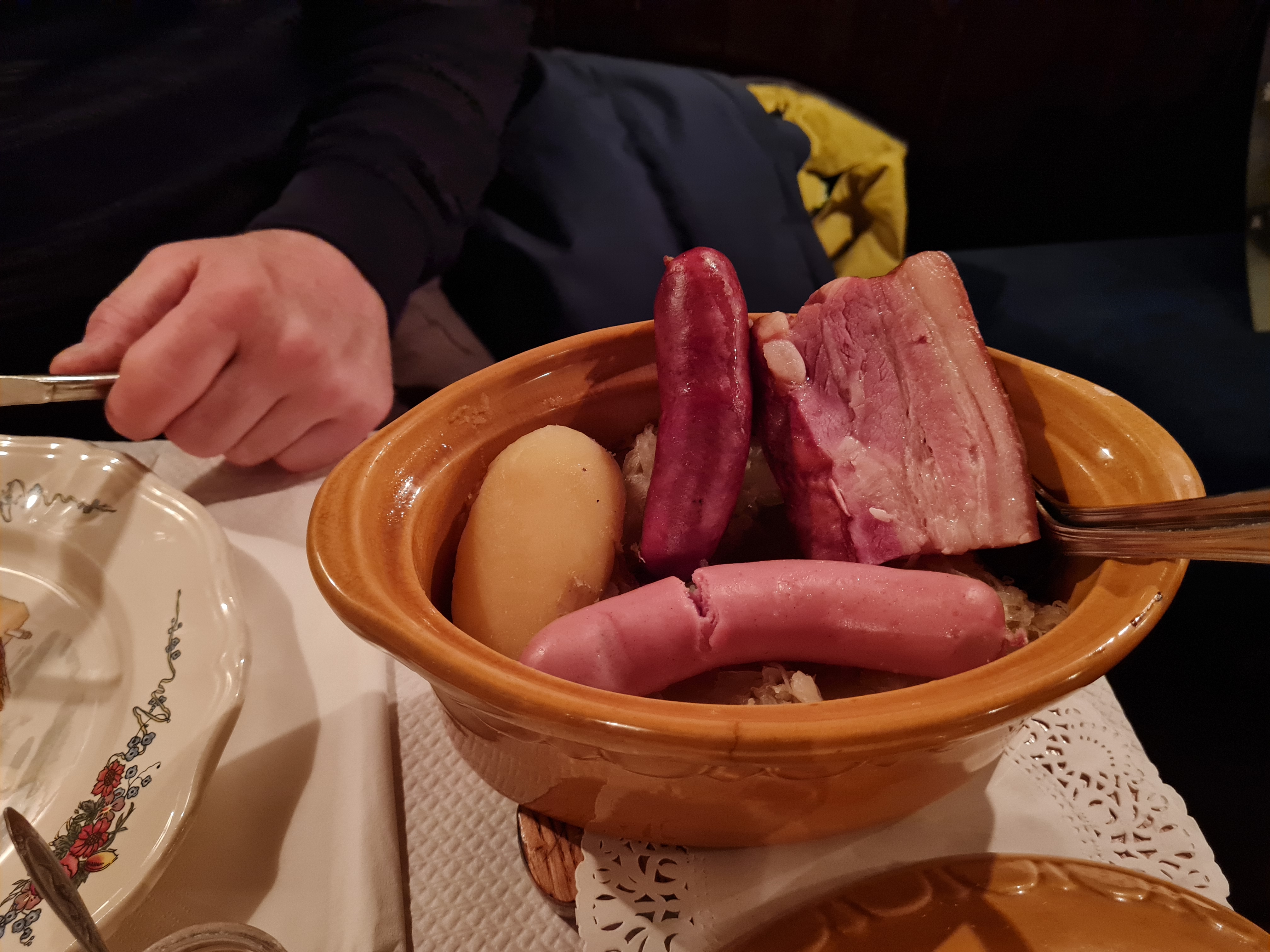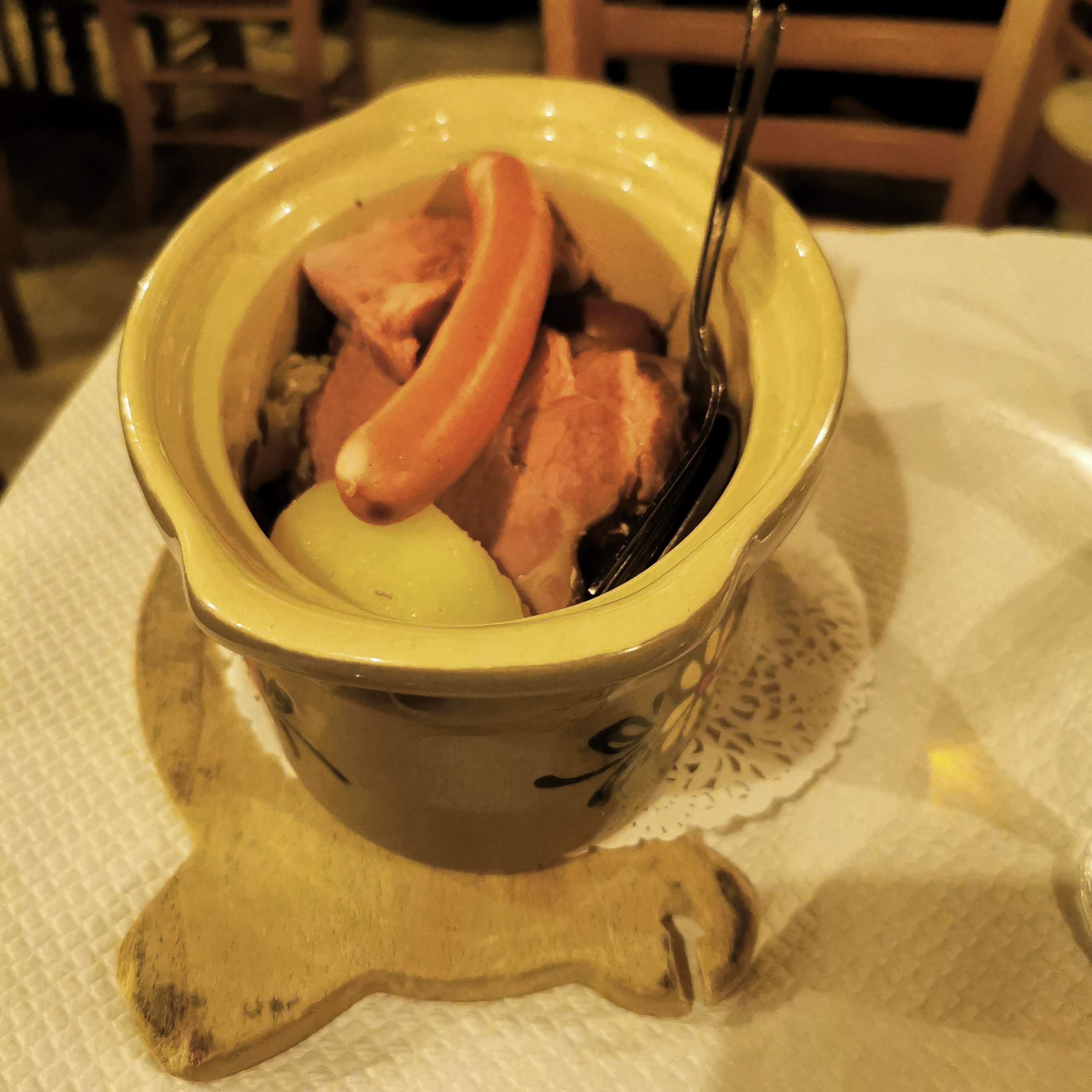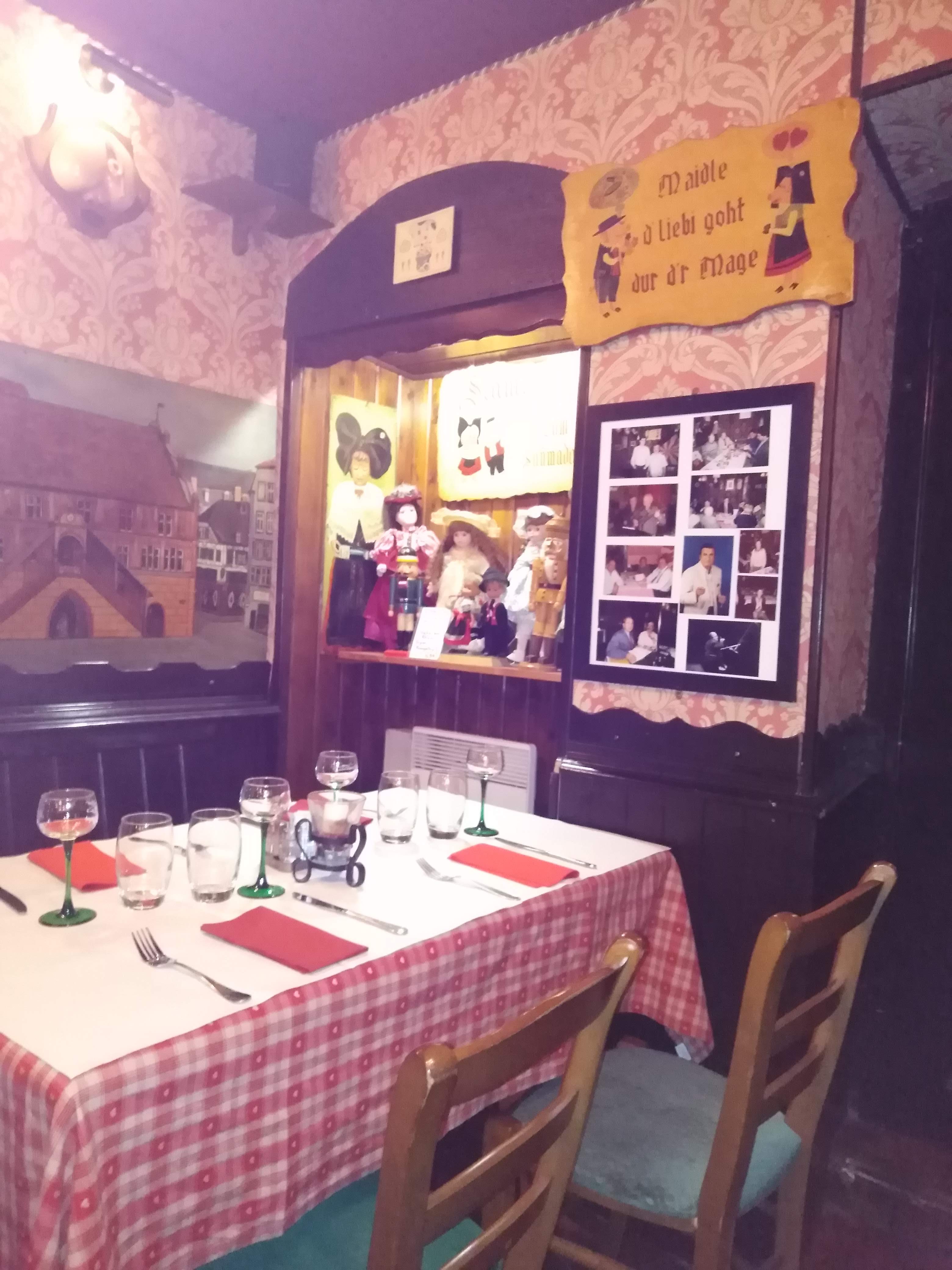 Typique Restaurant Alsacien avec toutes ces spécialités dont une que nous avons découvert mais non dégusté la choucroute en croûte apparemment à commander à l'avance. Le cadre est simple mais décoré l'alsacienne ,le personnel est sympa,souriant et avenant, même la serveuse est en costume Alsacien ce qui ajoute une touche de folklore en plus. Un peu caché dans une petite rue faut vraiment tomber dessus, le Restaurant est petit on a eût beaucoup de chance d'avoir une place...... La carte est simple avec des produits régionaux, côté prix abordable, les plats sont bien servis niveau portions. Belle découverte que je ne connaissais pas alors que je suis de la région 🙂