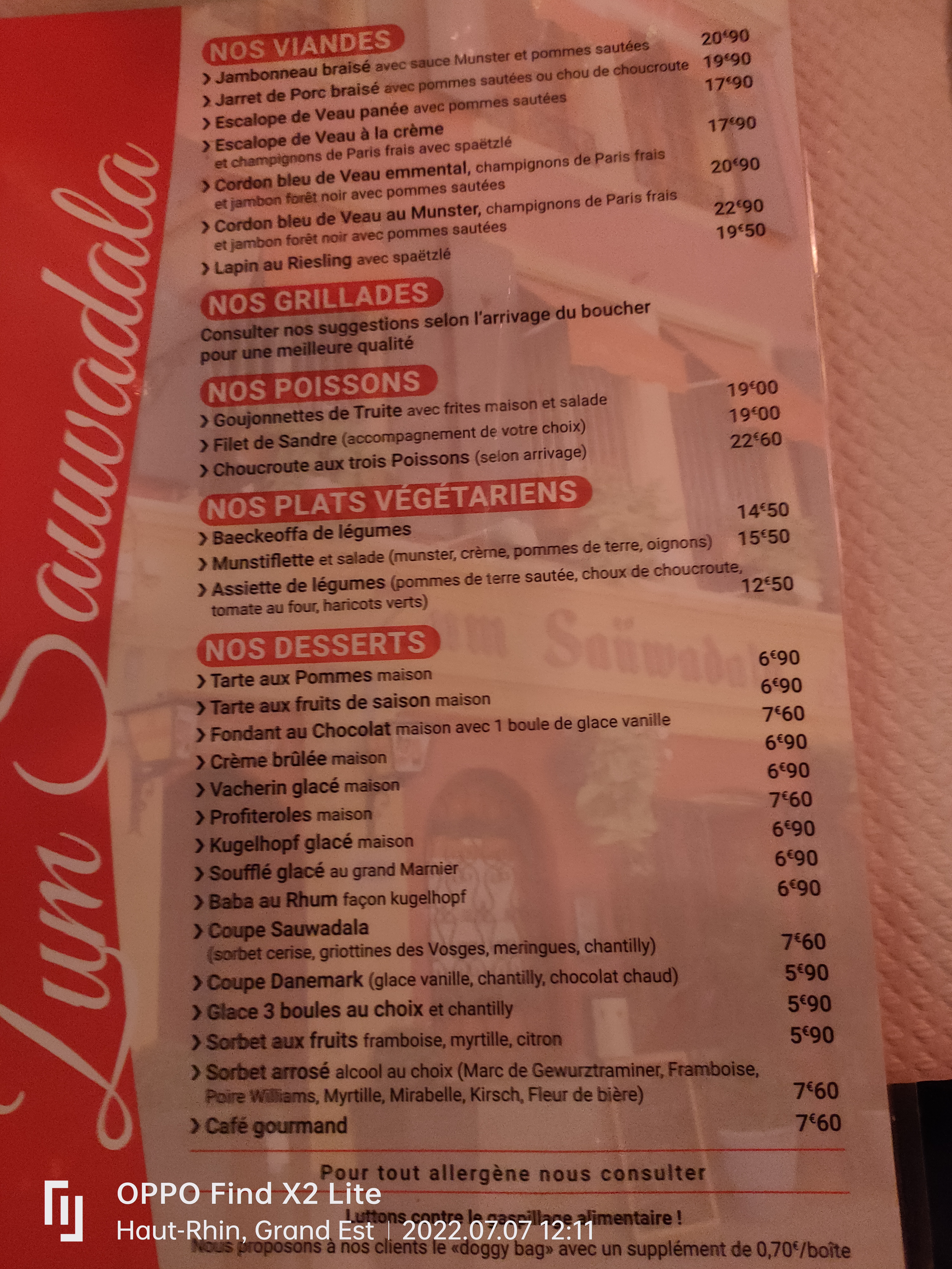 Bon, Comment dire pour une première fois !!!!!???? Cuisine BOF , vole-au -vent avec croute inexistante toute mole, Fleischschnacka brulé servis avec une micro salade ! service inexistant ???!!!! vraiment !!!! SUR.. je ne reviendrais pas ...y a beaucoup mieux comme resto Alsacien. Parole d'alsacien !!!!!
