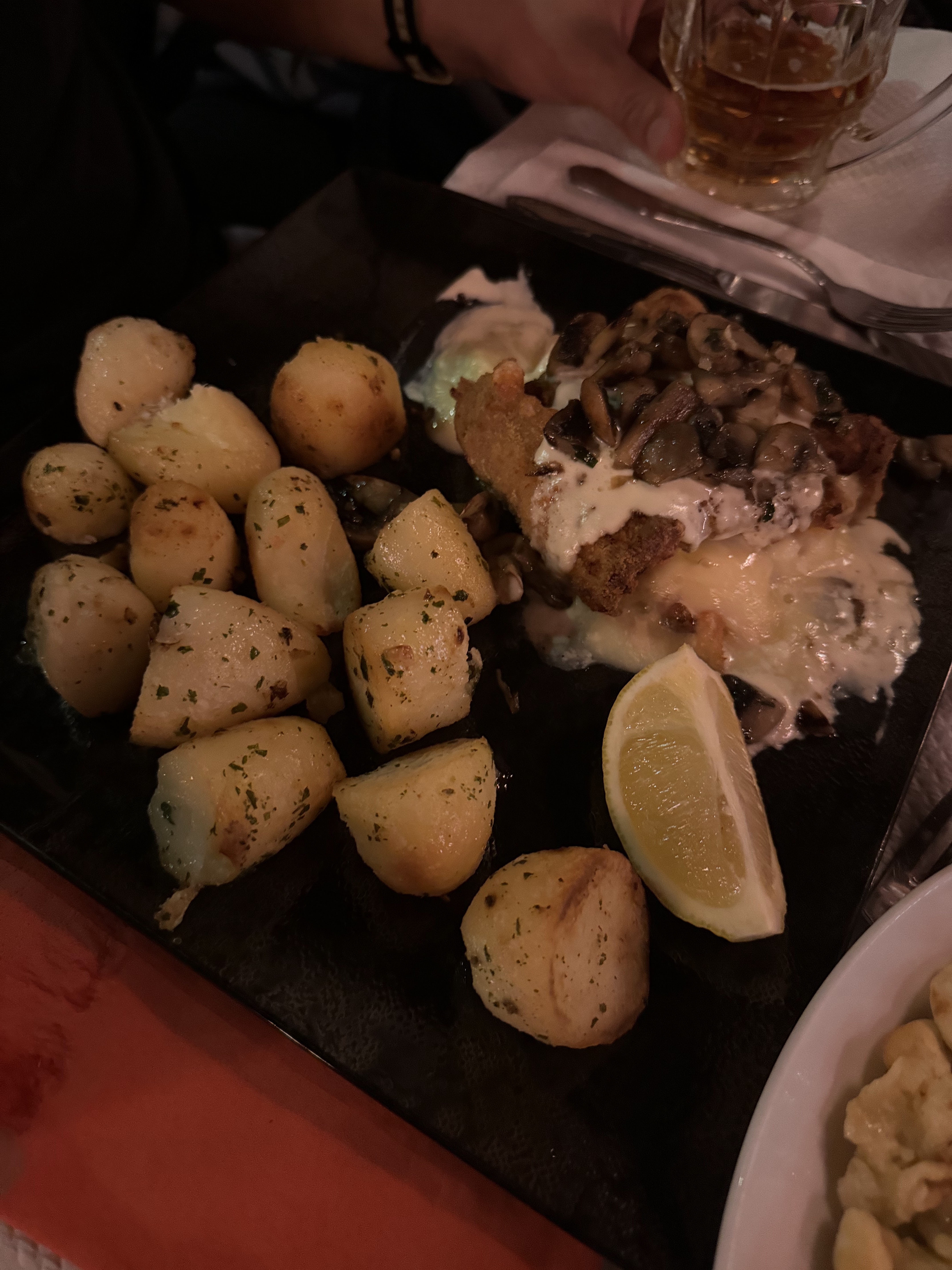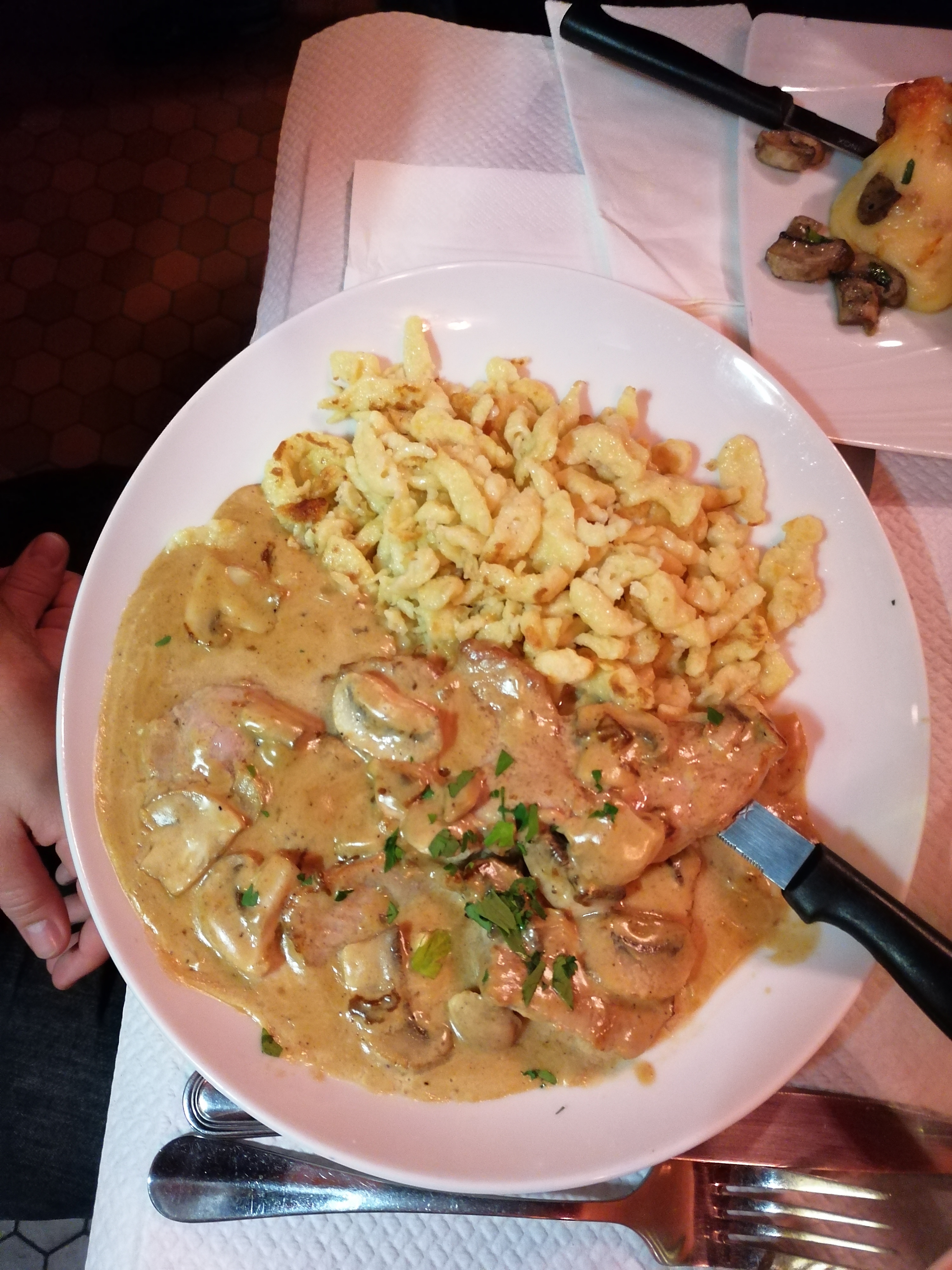 Lieu emblématique de Mulhouse, l'ensemble du personnel fait le show, la gentillesse est de rigueur, l'humour aussi. Cuisine alsacienne oblige, nous avons mangé du jarret de porc, des surlawalas, cordon bleu, choucroute de la mer, vol au vent, escalope à la crème, lawerknepfle et... Tout est bon et bien servi 😋😉 Petit bémol, un peu serré et donc il fait très vite chaud. Une bonne adresse à découvrir