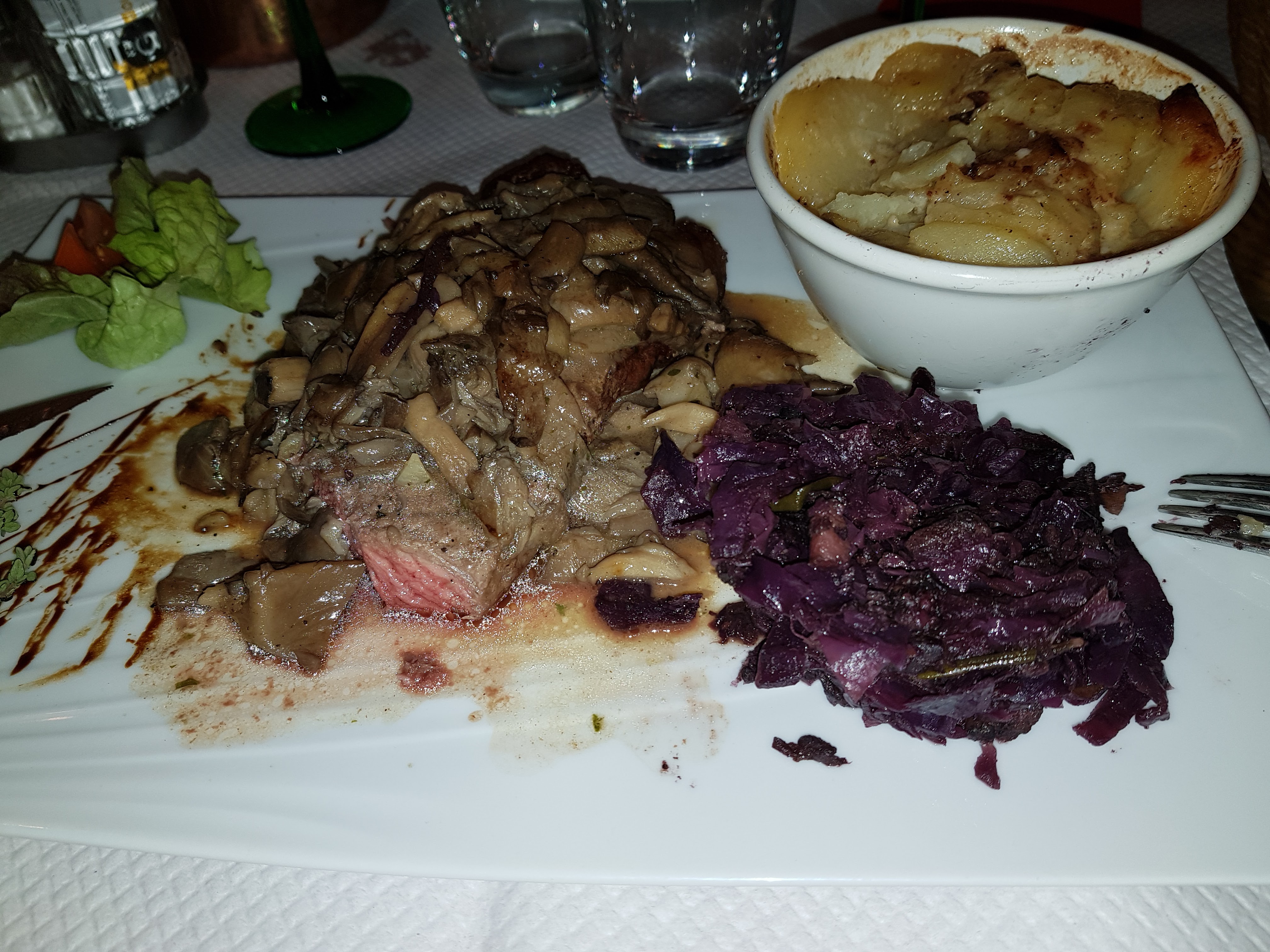 Excellent! On nous avait conseillé de commander la choucroute en croûte...et c était à tomber par terre (attention c'est sur commande). Nous en avons commandé pour 2 personnes mais c était juste énorme...(c'est au moins pour 4 bon mangeur). Les desserts sont aussi Pantagruellesque ! Très jolie cadre. On y reviendra avec Plaisir.