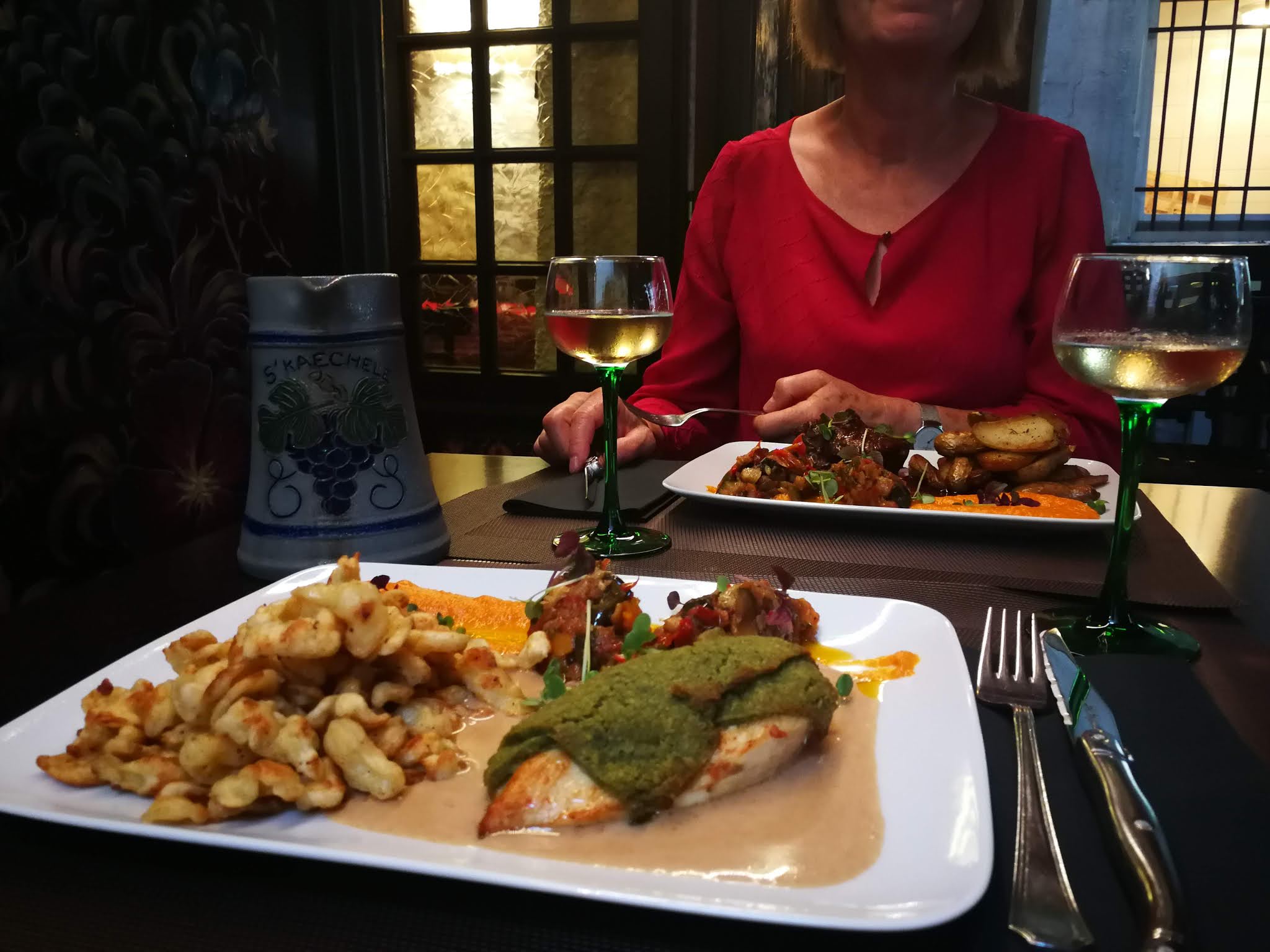 Emplacement absolument excellent, la nourriture et le vin sont de la meilleure qualité et le service est également très bon. L'ambiance au Skaechele est merveilleuse, d'autant plus que le patron et la serveuse donnent l'impression qu'ils se connaissent depuis toujours. Si vous ne parlez pas français, l'anglais et l'allemand sont également compris. Une réservation de table est avantageuse, sinon il faut beaucoup de chance pour obtenir une table.