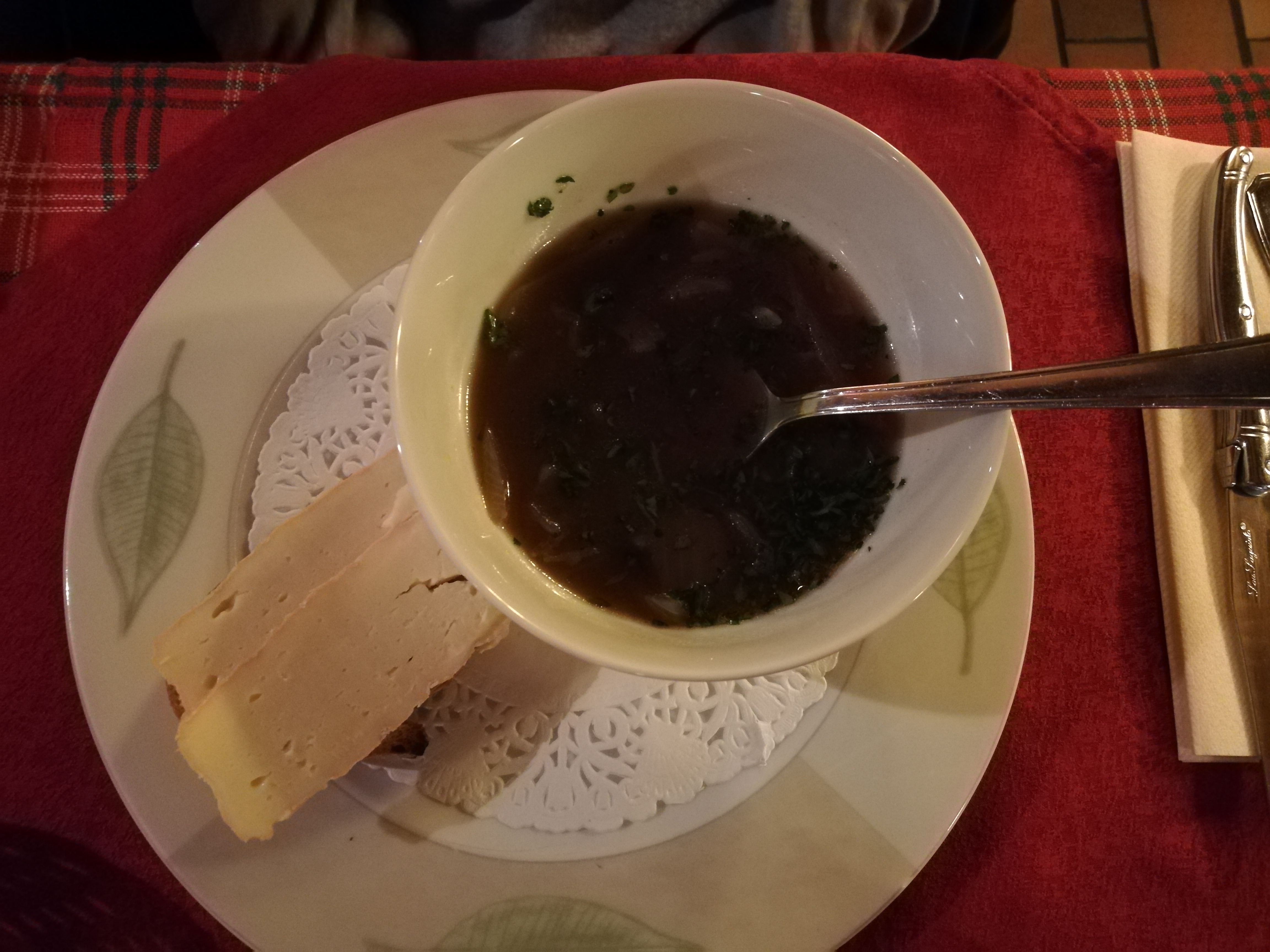 En arrivant devant le restaurant avec sa façade en bois, on cherche deux secondes la porte puis on accède à une petite salle de 8 tables (26 couverts), mais l'on s'y sent bien, pas serré, le décor du lieu est chaleureux et sobre. Une fois installés la patronne, très sympathique, propose une bière (une blonde artisanale locale fort honorable) et le menu. En plus des plats à la carte, quelques suggestions à l'ardoise. Après une très bonne soupe à l'oignon, j'ai cédé à un grand classique, la Choucroute, vraiment très bonne et copieuse. Nous n'avons pas pu profiter des desserts qui avaient l'air fort appétissants. Au niveau tarifs, ils sont abordables, avec moins de 36€ pour une bière, entrée-plat et un pichet de pinot blanc 50 cl + café. Nous étions un mercredi soir, la salle était pleine sur un 2e/3e service. Un conseil, réservez.