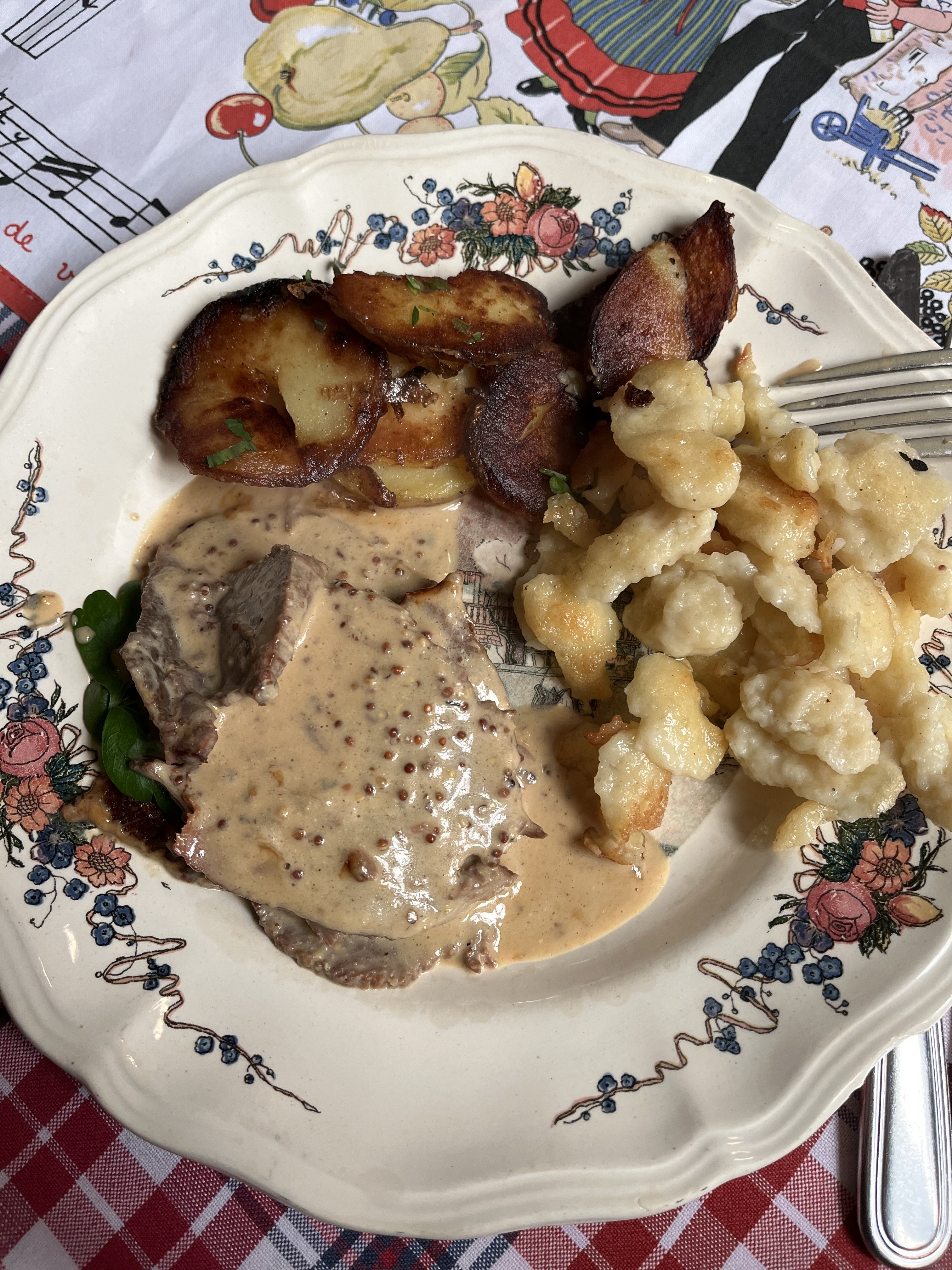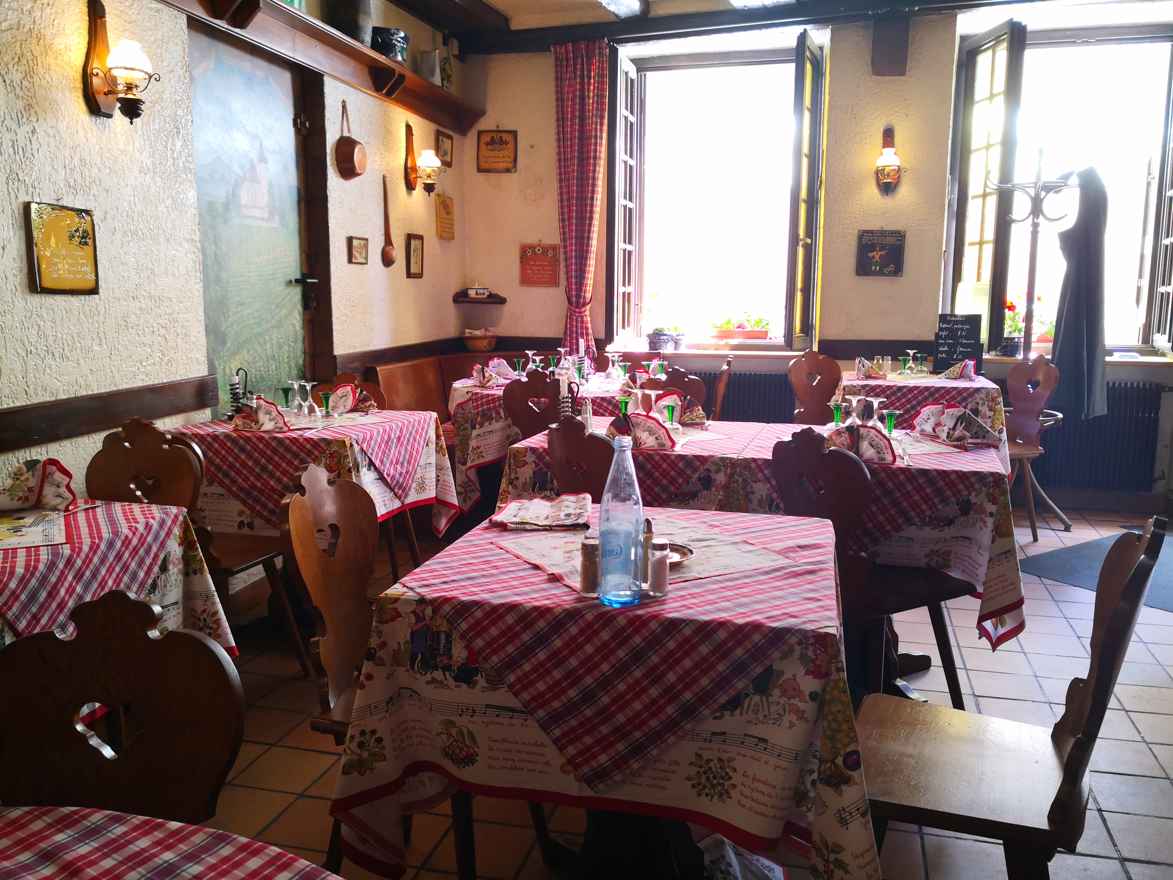 Excellent restaurant. Petite salle très typique avec des nappes à carreaux et des assiettes anciennes. Manque peut être un petit coup de rafraîchissement au niveau de la peinture mais vu le niveau du service et du repas on leur pardonnera. Service souriant aimable et professionnel. Cuisine excellente, des vrais plats de « grand mère » comme on les aime. Nous avons goûté le Surbroten et la salade de pissenlit et les 2 plats ont ravis nos papilles. Il est rare d’avoir un restaurant avec un super service et des plats aussi bons jusqu’au dessert.