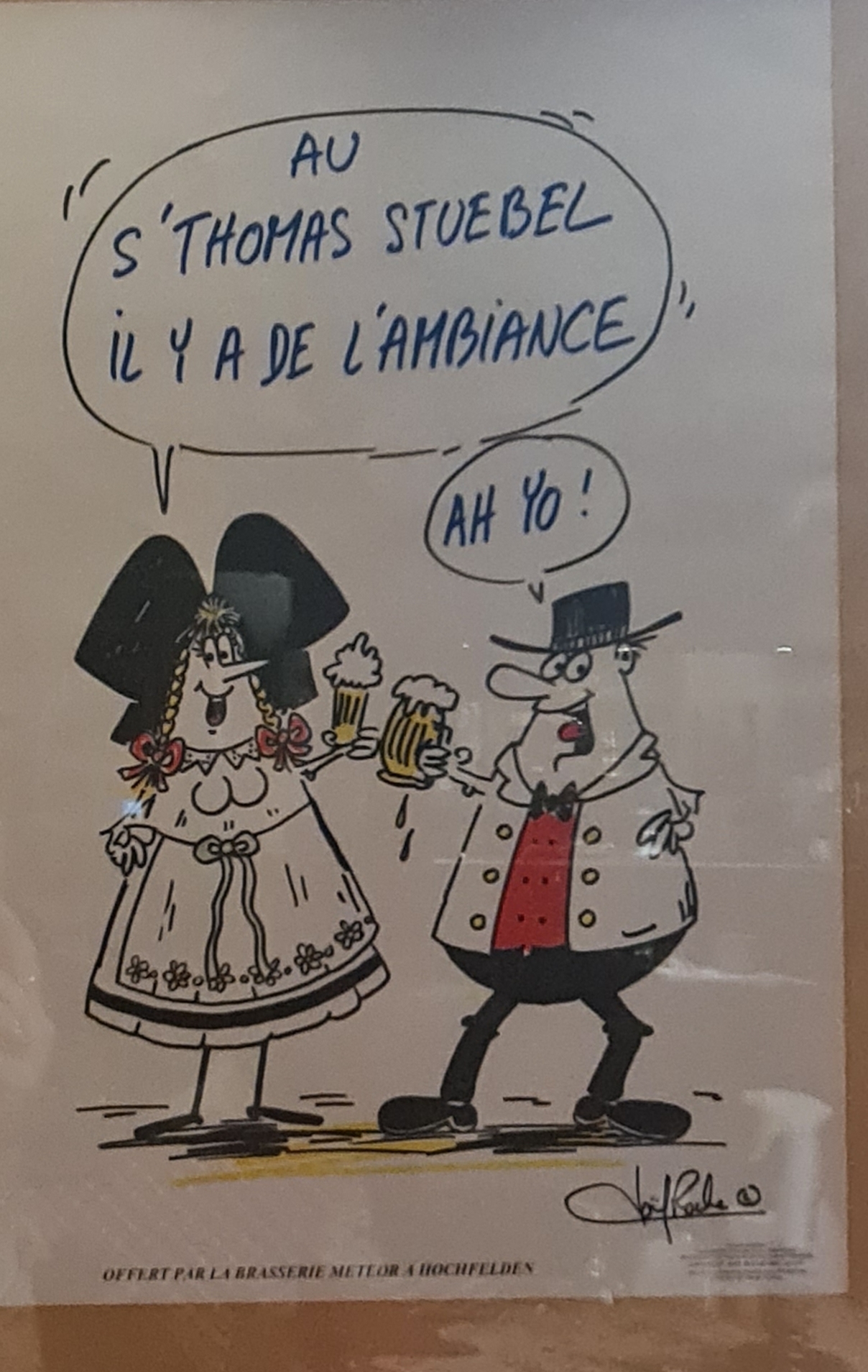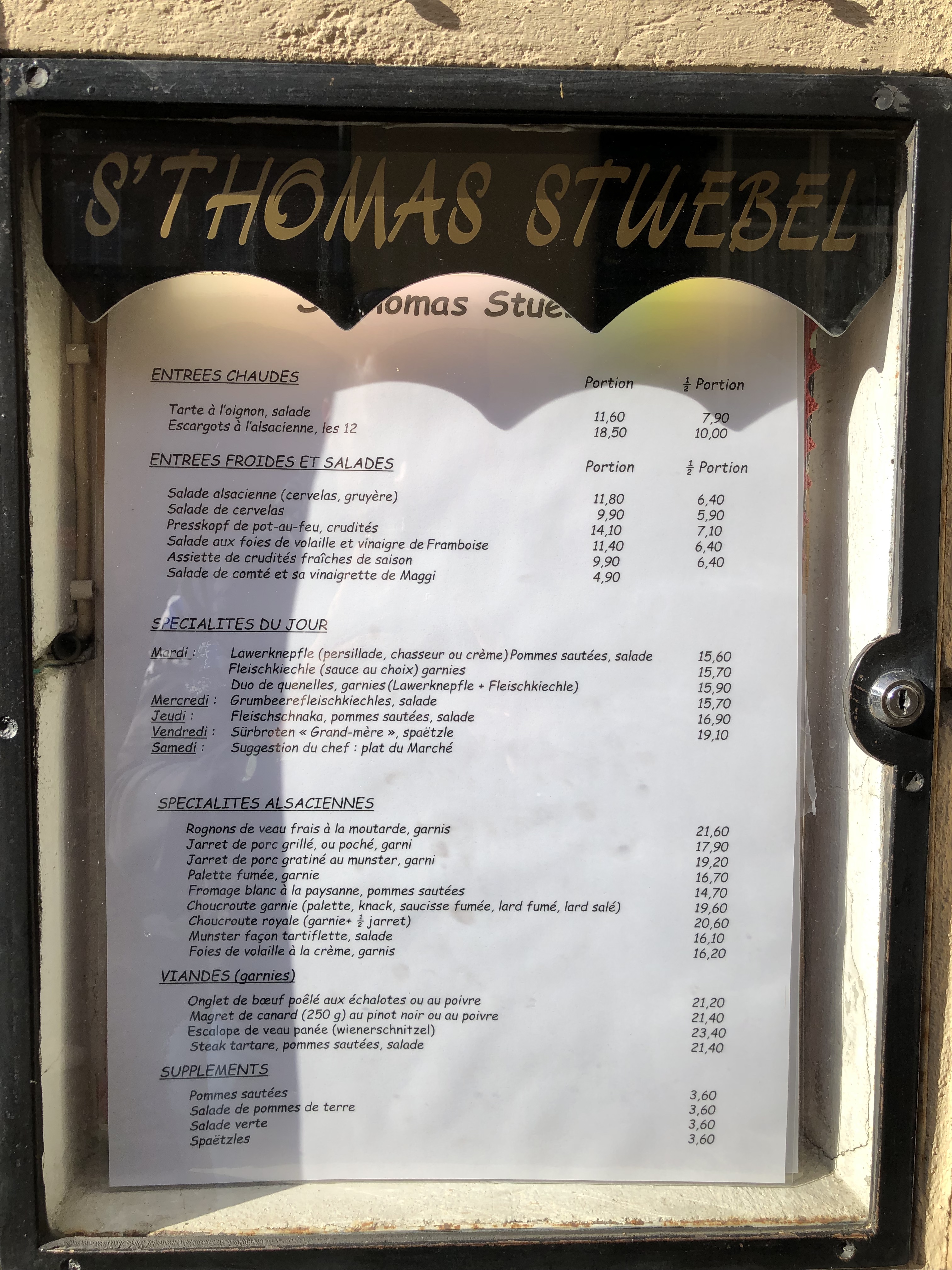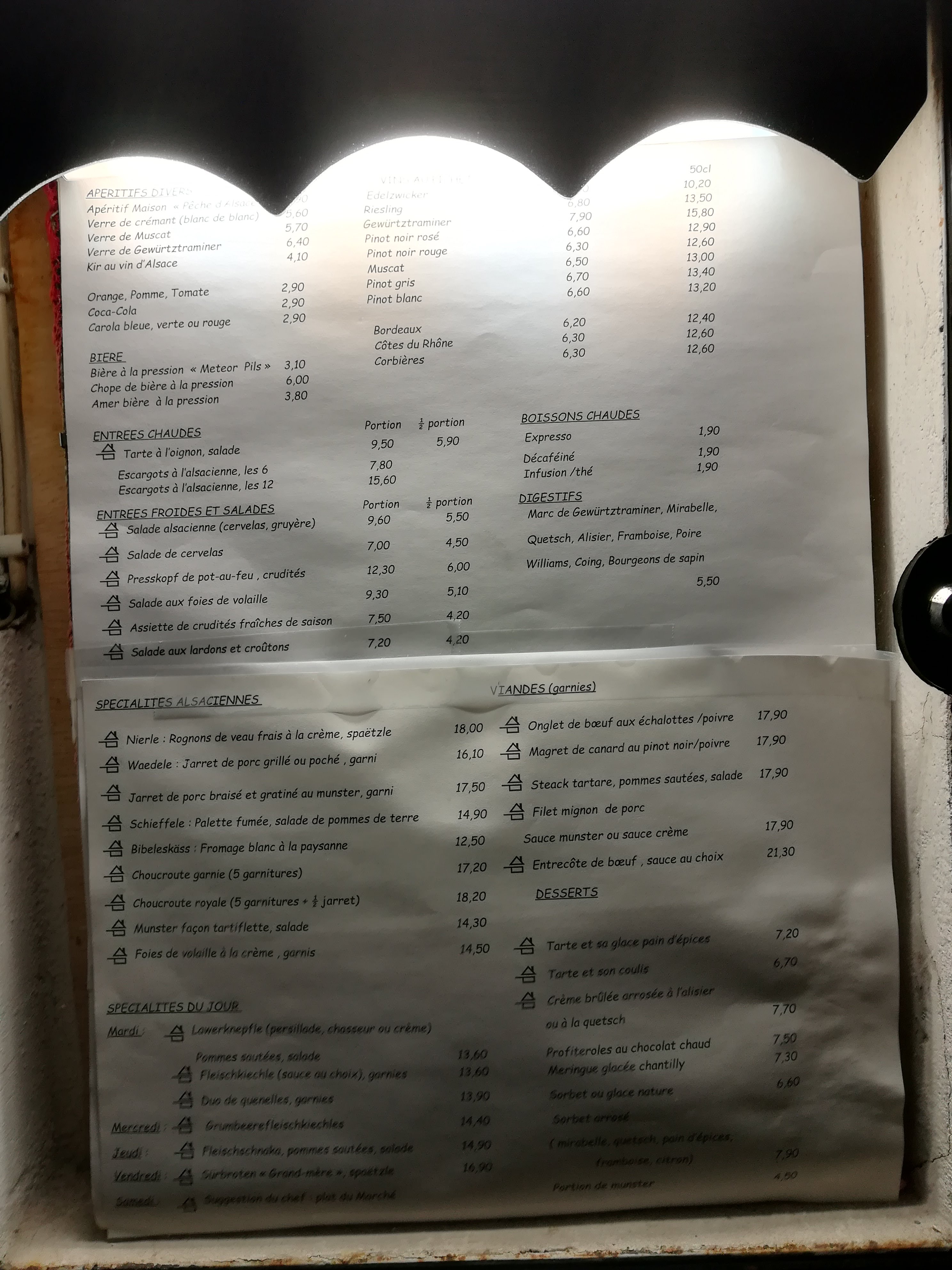 En entrant une odeur de Munster vous accueil, pour les distraits cela indique que vous êtes en Alsace. Restaurant typique alsacien qui décline chaque jour une spécialité Alsacienne en plus d une carte de plats tous plus tentant les uns que les autres. Service avec l'accent pour ceux qui n'auraient compris avec l'odeur de Munster.