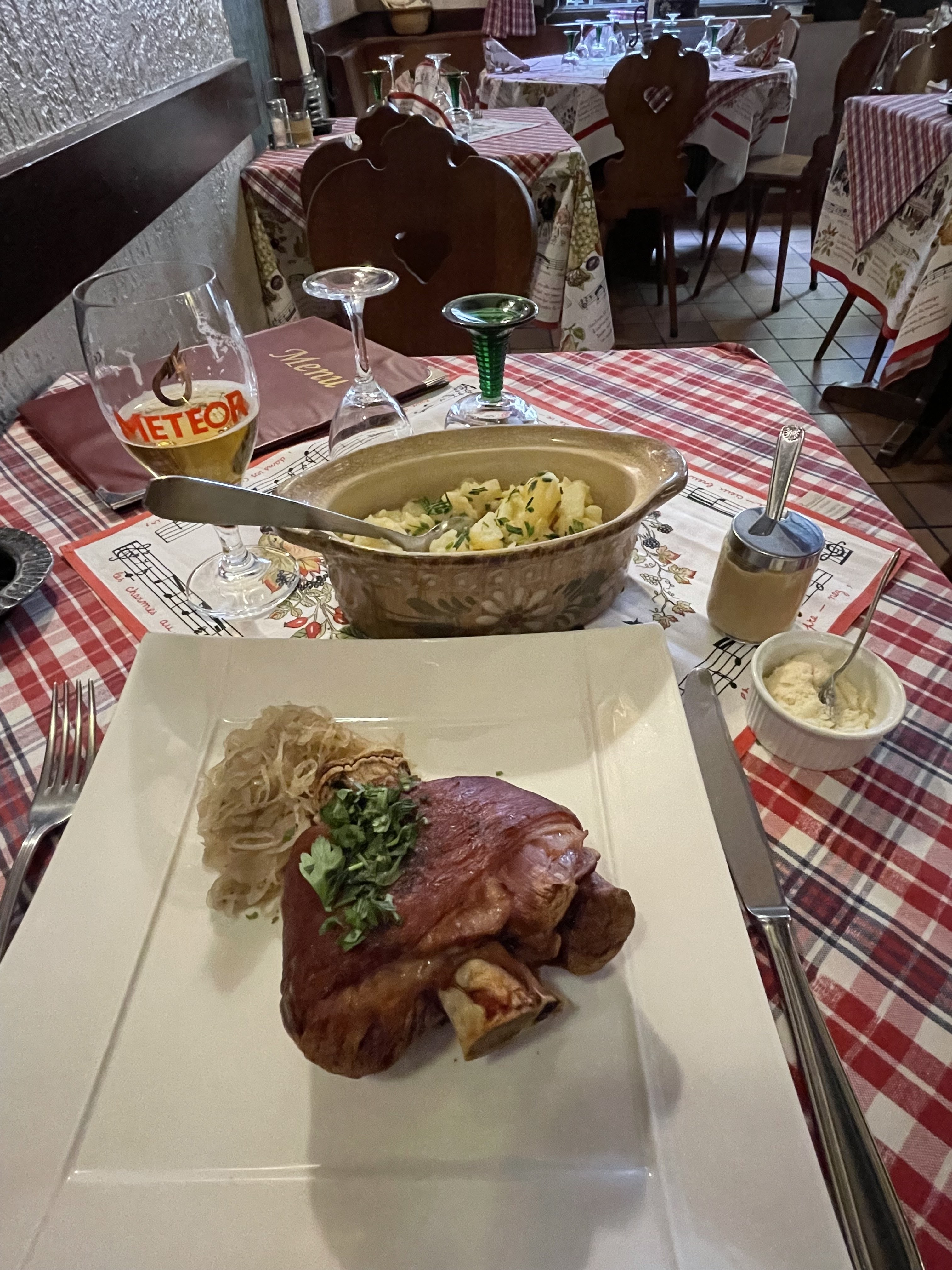 Mon jambonneau m'a été apporté froid, service désorganisé. Je ne suis pas difficile, mais je dois dire que je suis déçu par la prestation, ne reviendrai plus, et ne recommanderai pas.